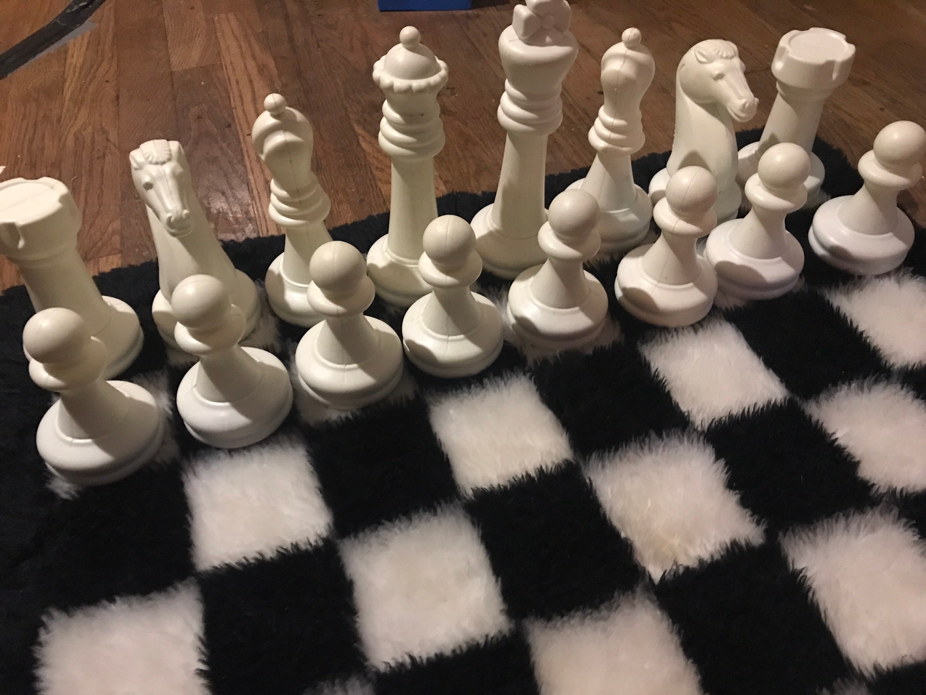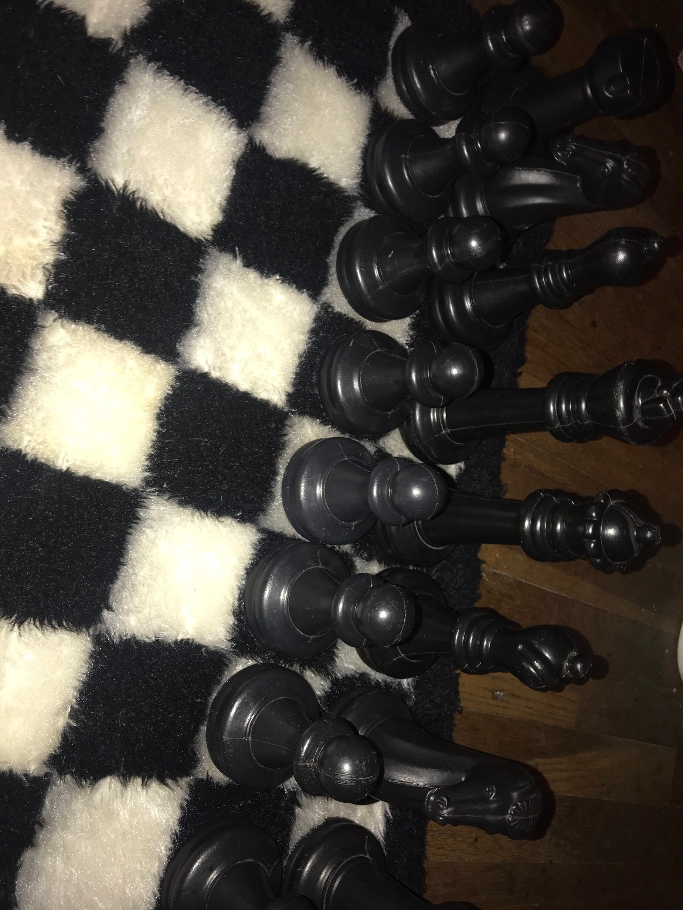 This is cool! I mean like so cool! It’s rare too, it’s a shag rug carpet chess board with big plastic pieces. it’s complete with all the pieces. There is one piece that doesn’t have any sand left in it but other than that it’s in good vintage condition!