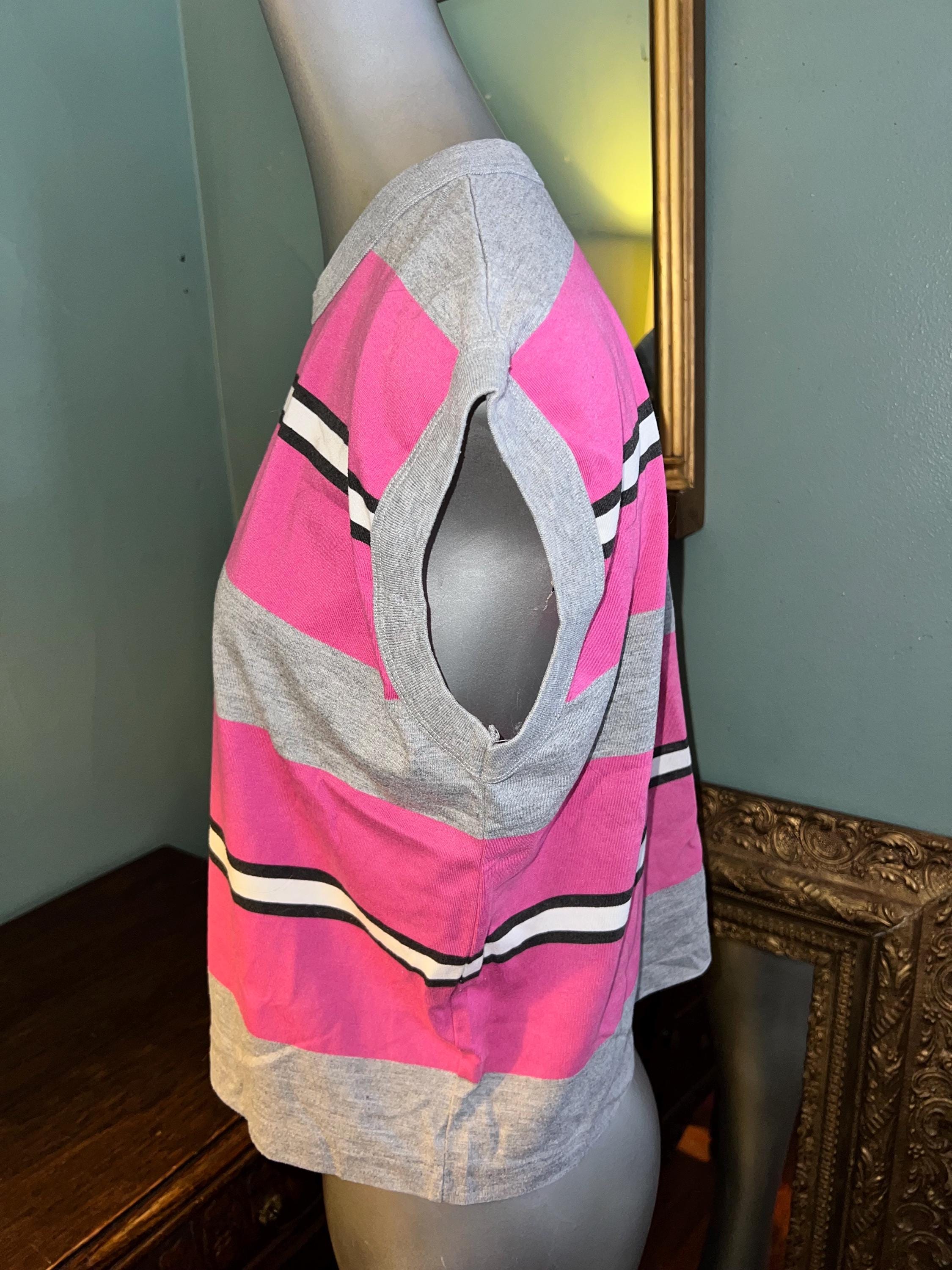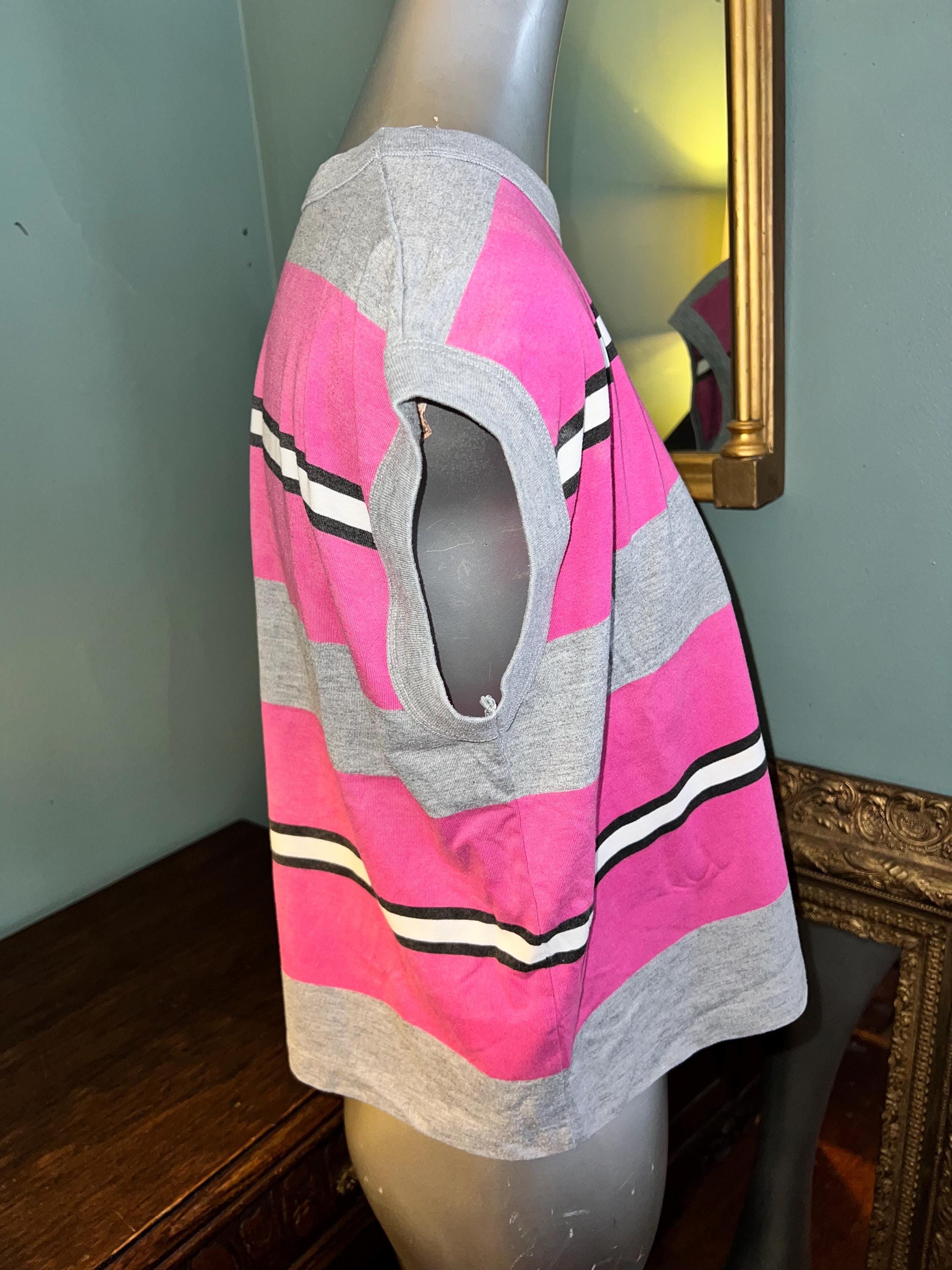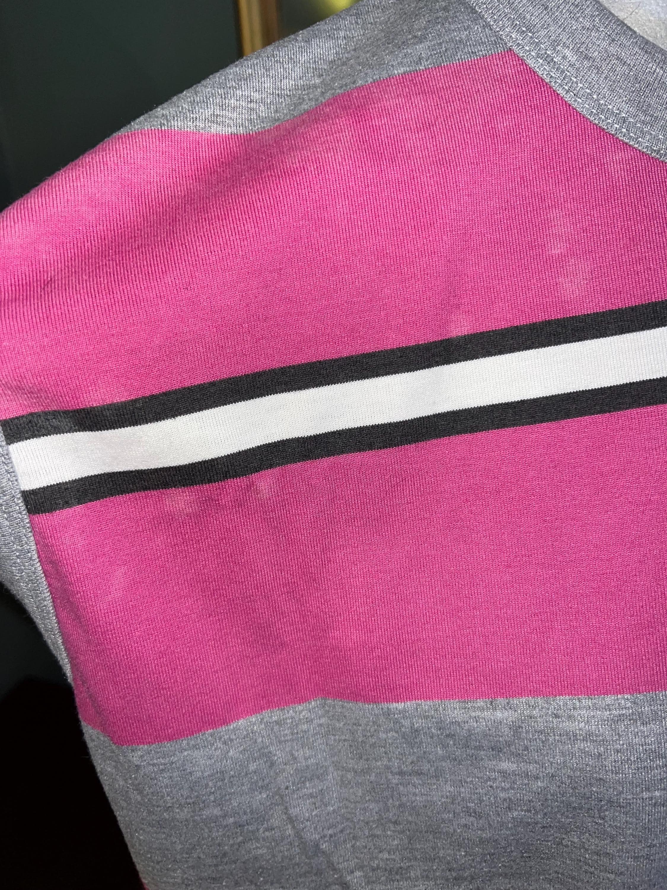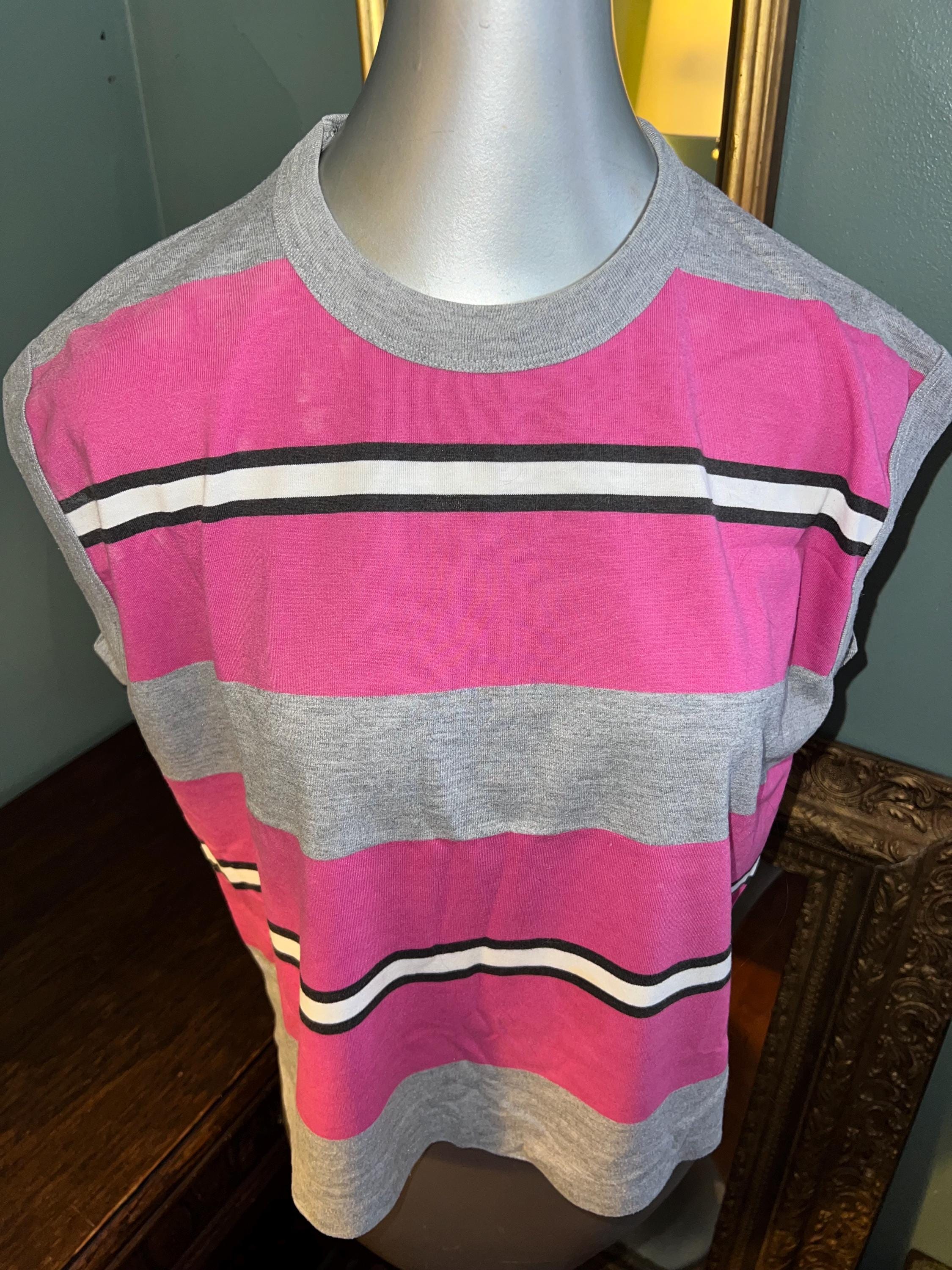 I love this great 80’s shirt! It is an Esprit Sport! I It has a simple design and it’s a half shirt and sleeveless. It’s a little worn and has a couple of white spots on it (see final photo ) but it’s still really great!