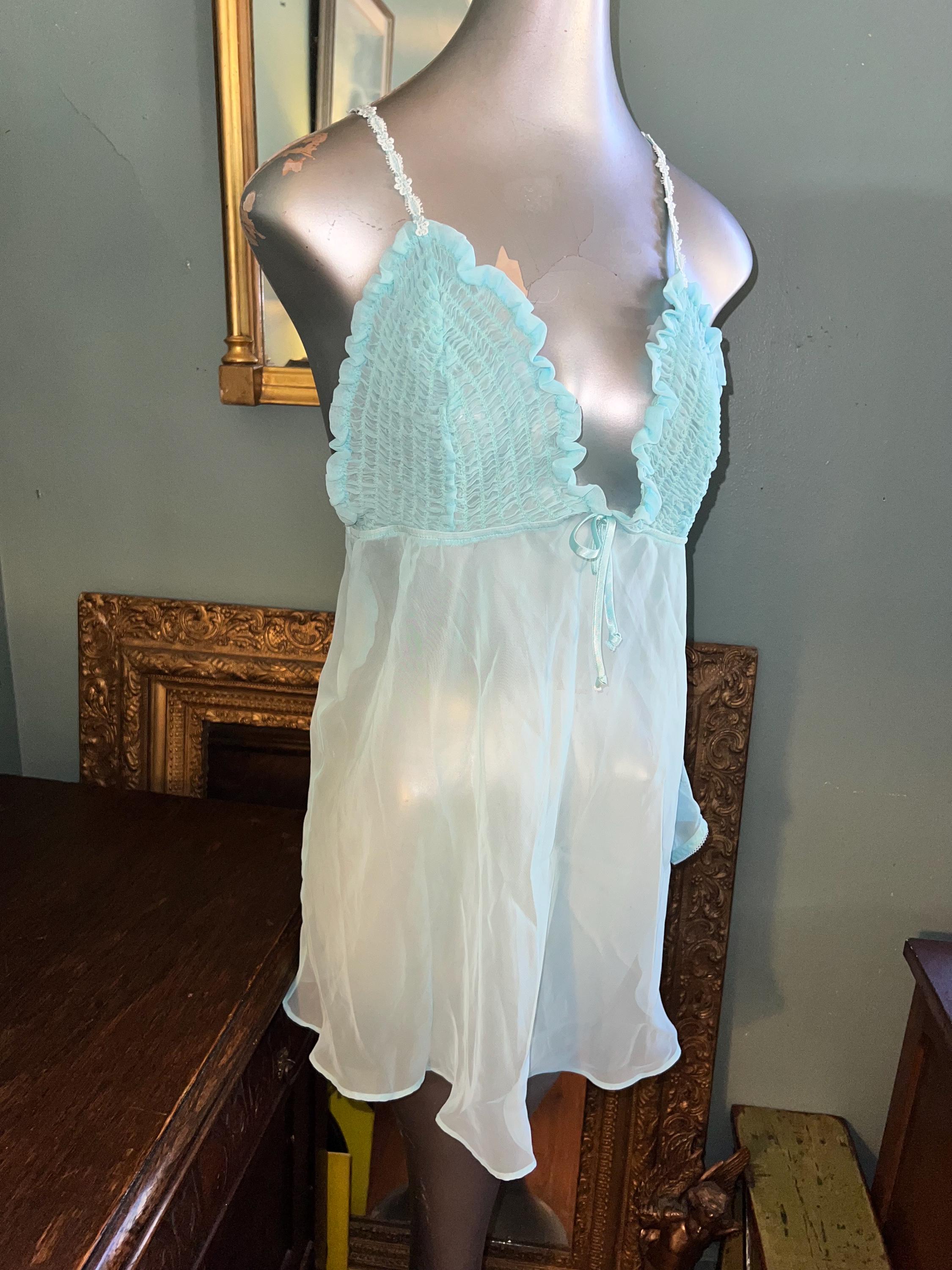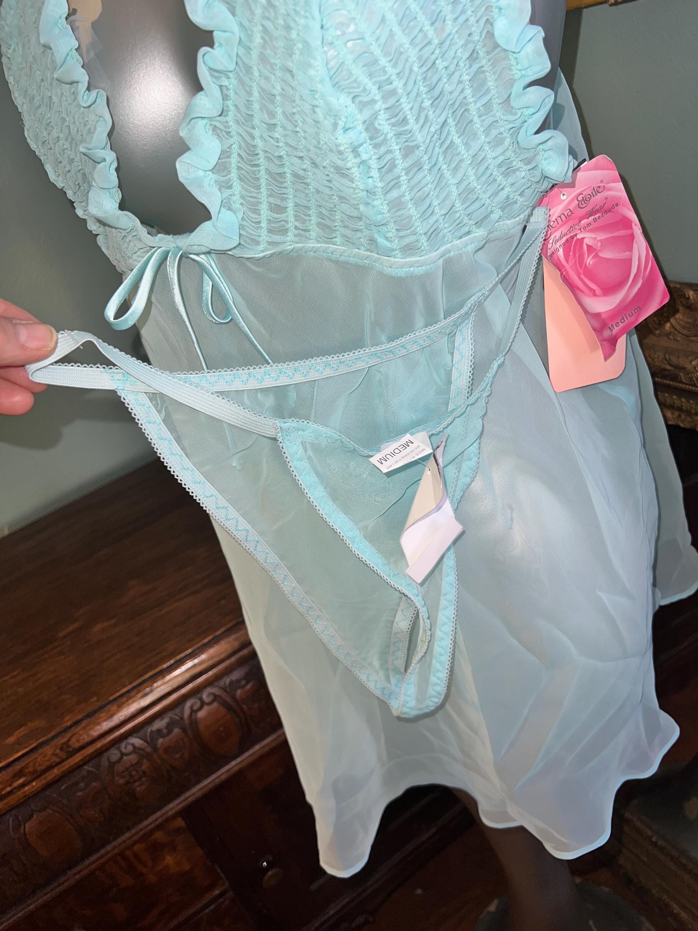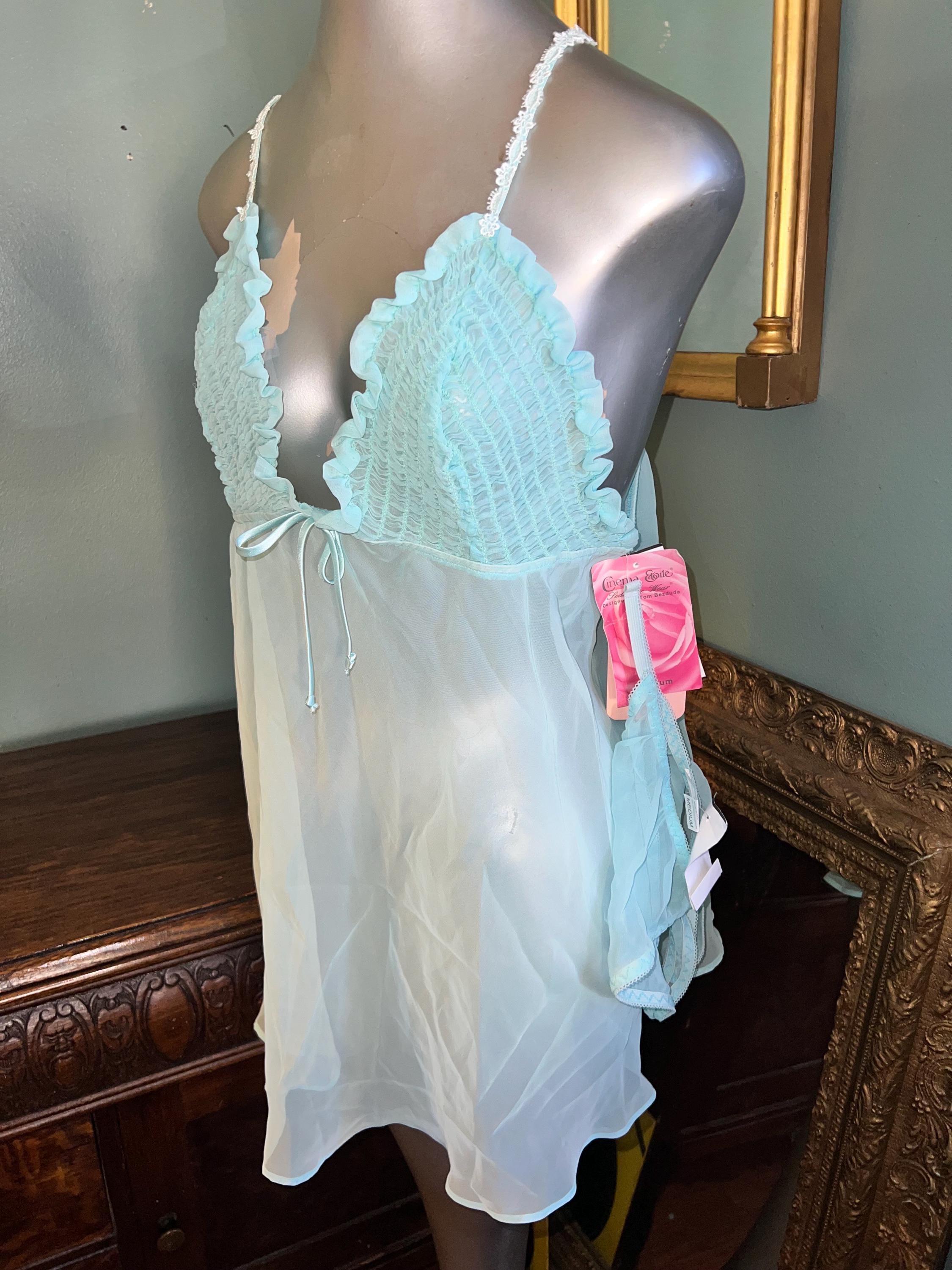 This is a cute little blue lingerie set NWT by Cinema Exoile in the 90’s. It has matching panties too! It's in great, new vintage condition.