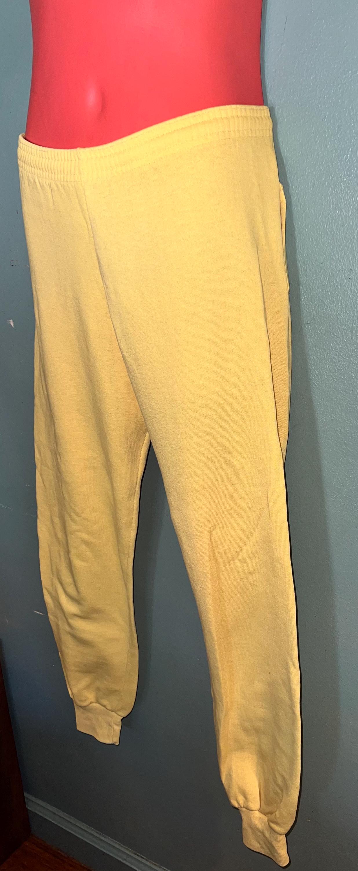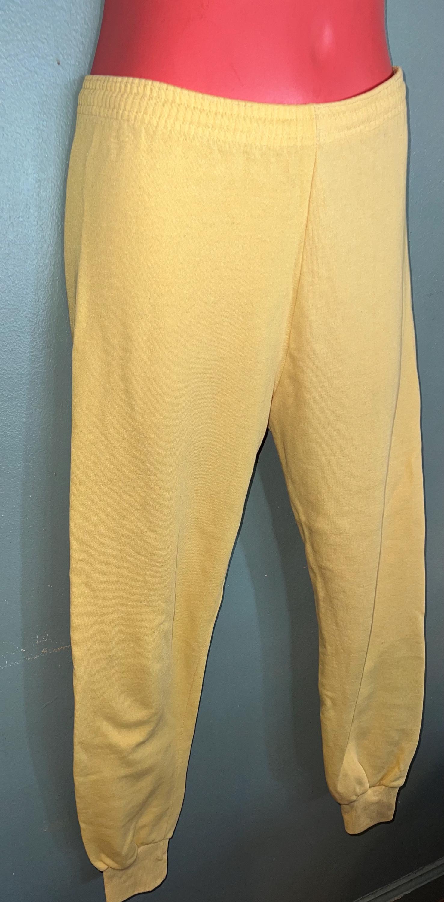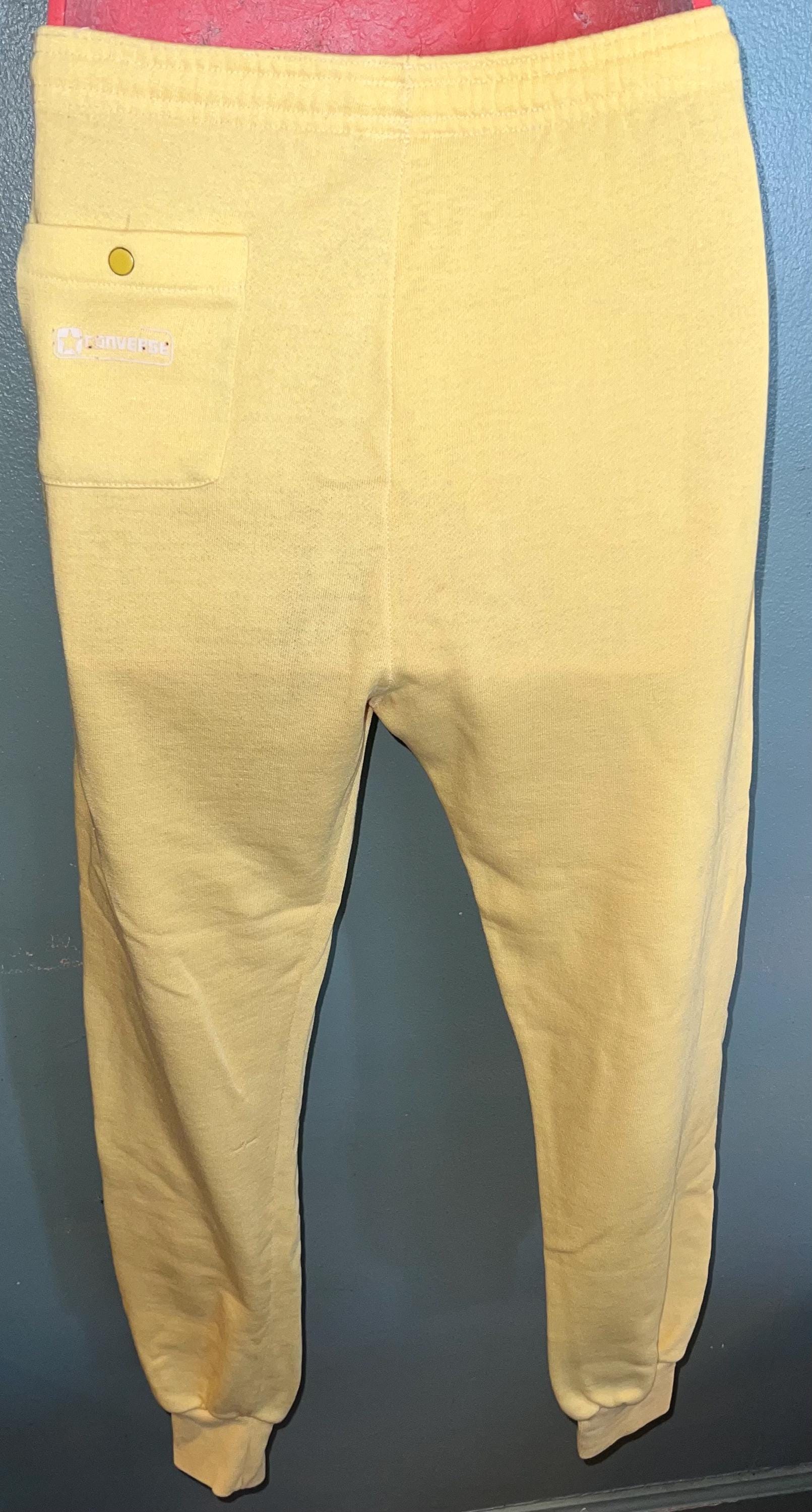 These are cute yellow Converse sweats from the 80's! These are perfectly broken in cute sweatpants. The only thing wrong with them is those tiny dark dots on the Converse emblem on the back, (see photo).