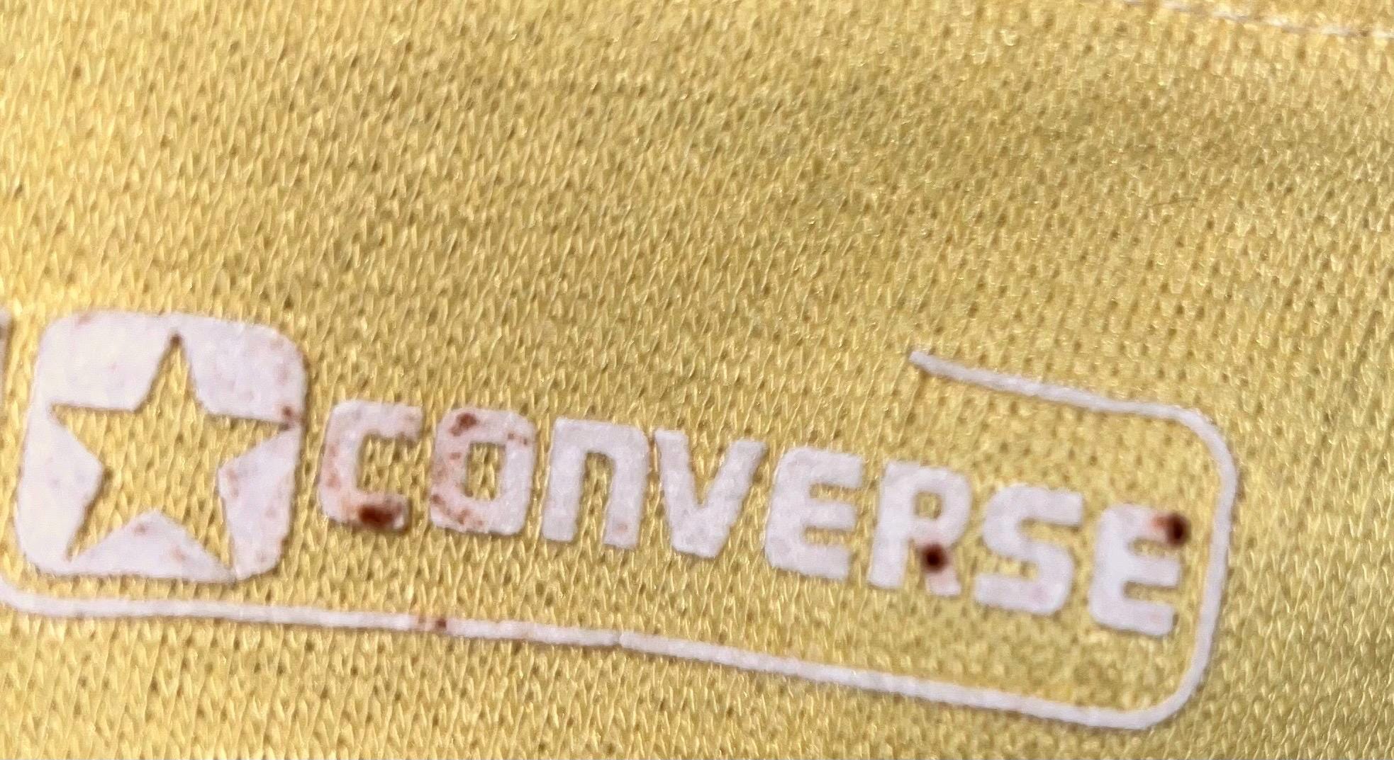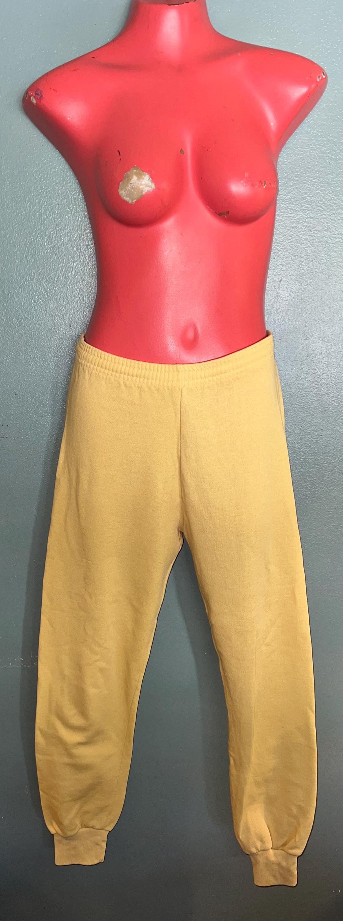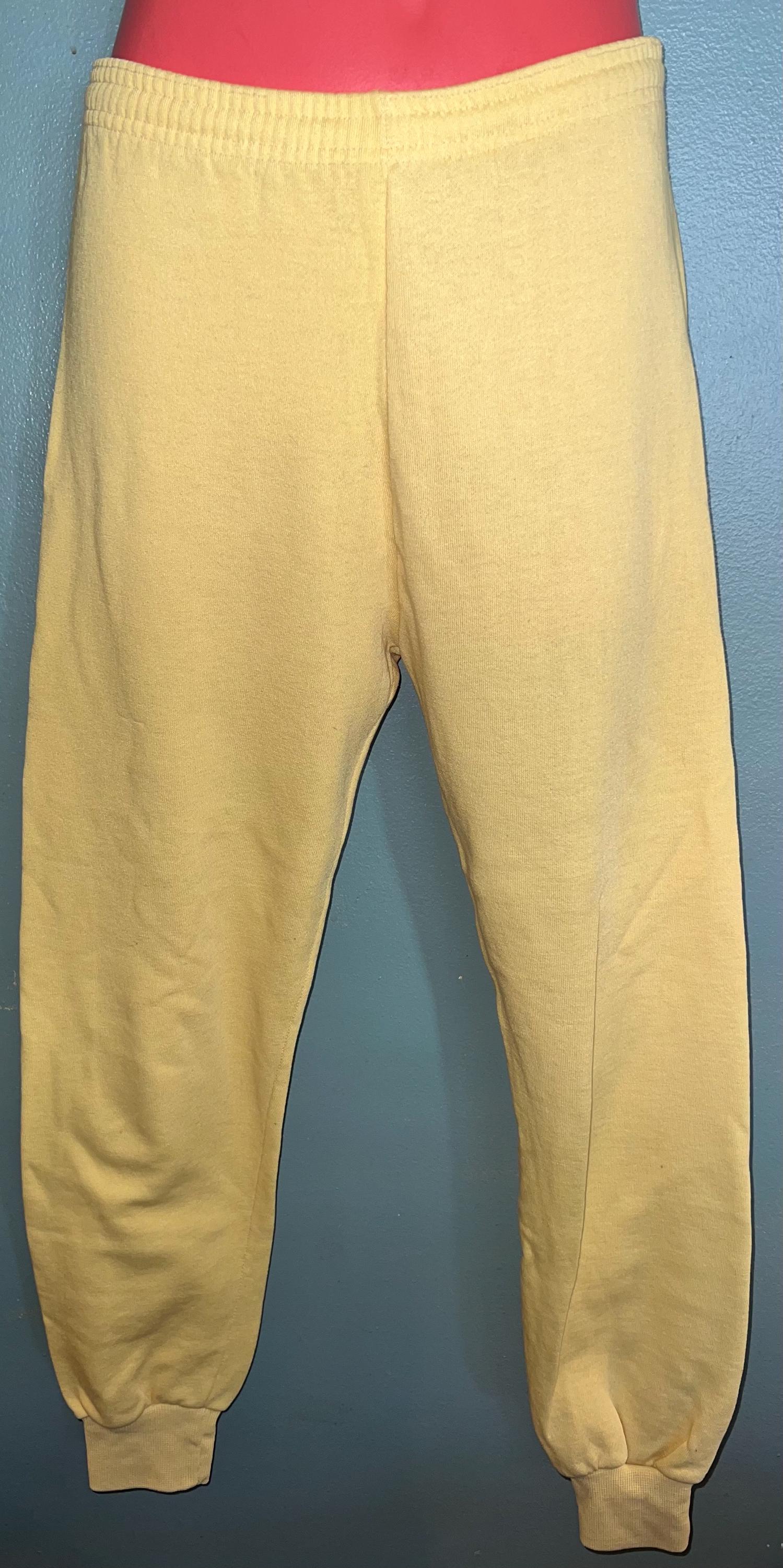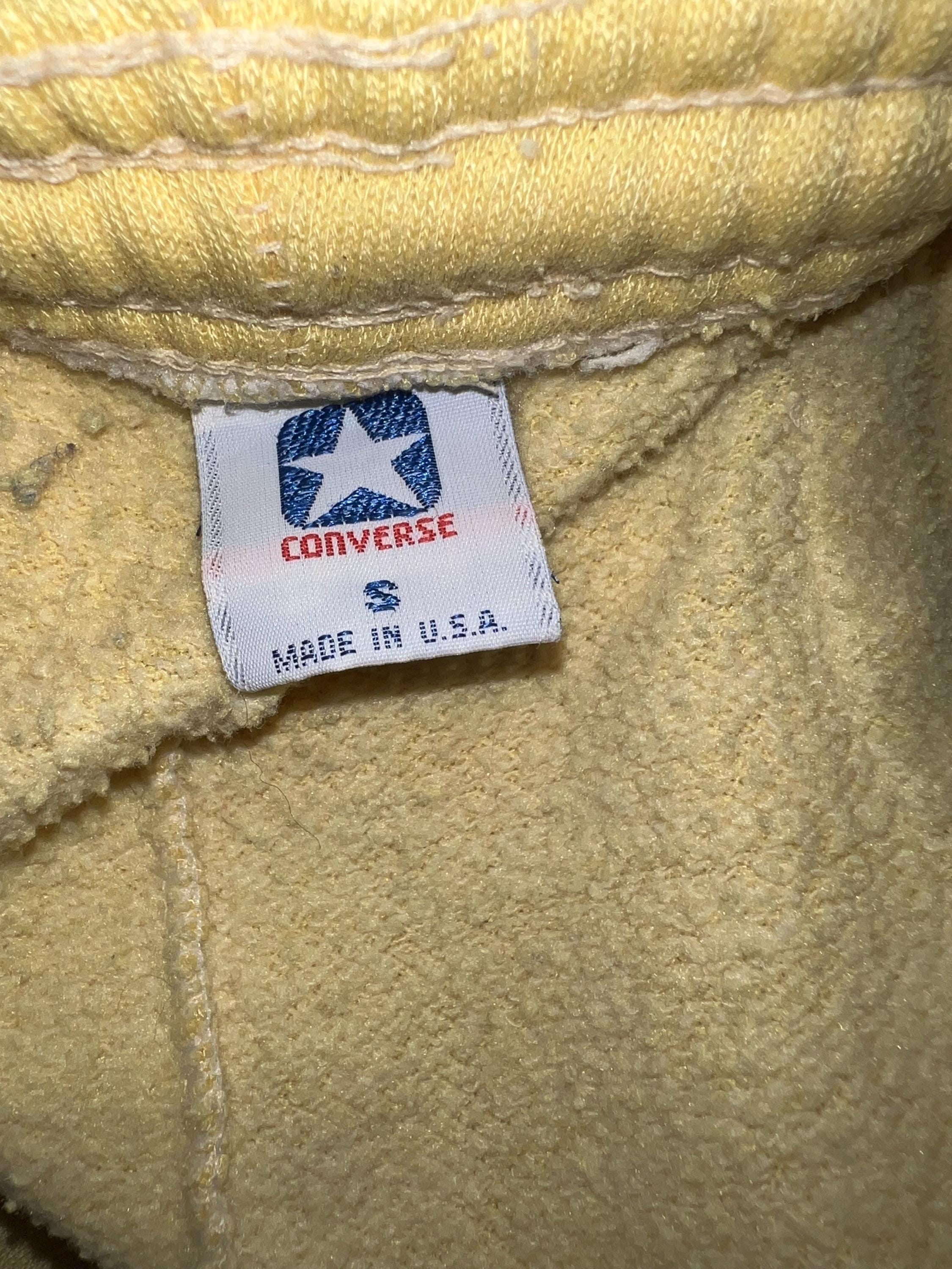 These are cute yellow Converse sweats from the 80's! These are perfectly broken in cute sweatpants. The only thing wrong with them is those tiny dark dots on the Converse emblem on the back, (see photo).