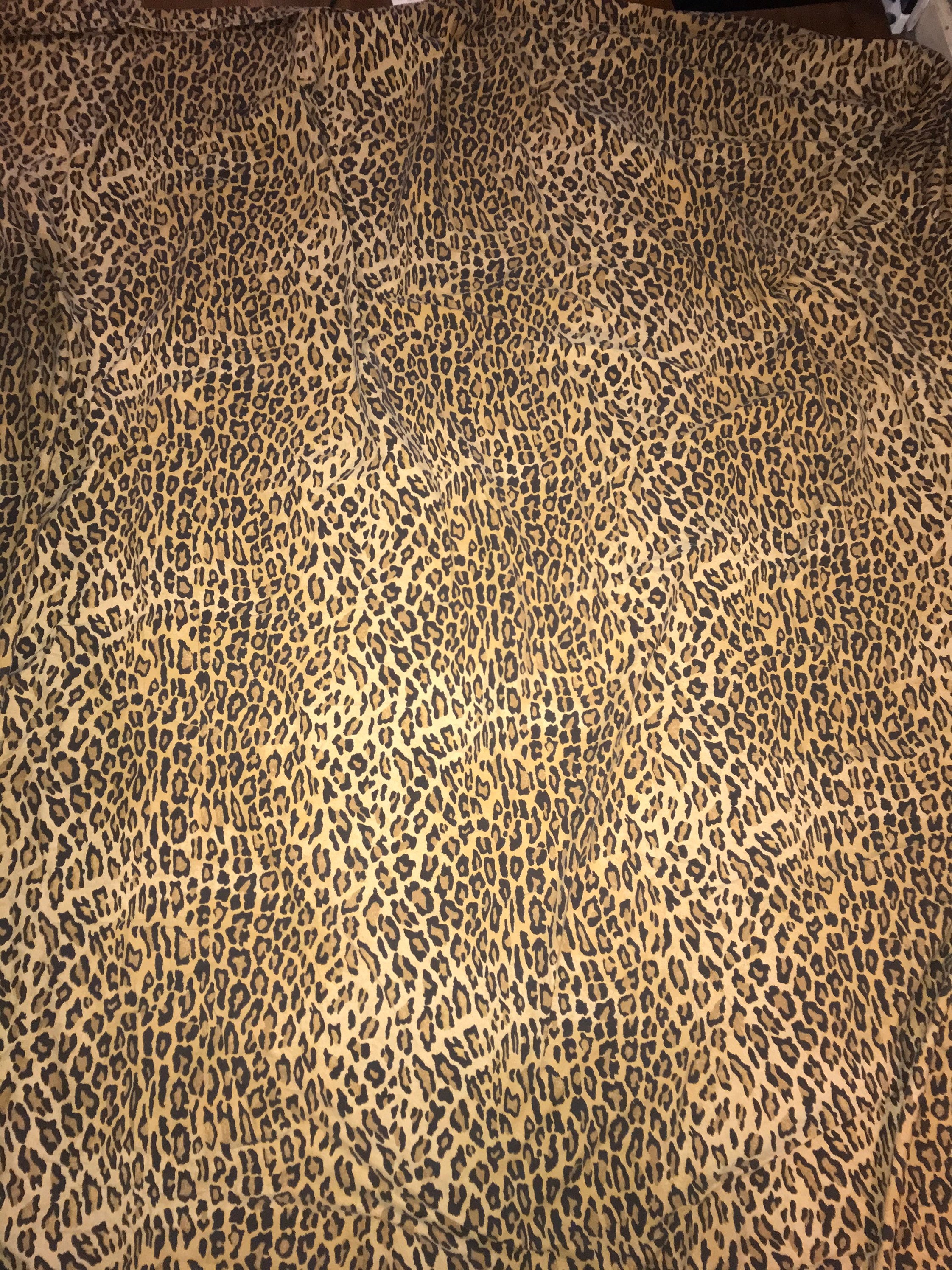 This is a Ralph Lauren leopard print king size flat sheet. This is a discontinued pattern by Ralph Lauren. The sheet is in good condition with that super soft feel only RL bedding gets with age, it is somewhat faded but no holes, stains, or tears.