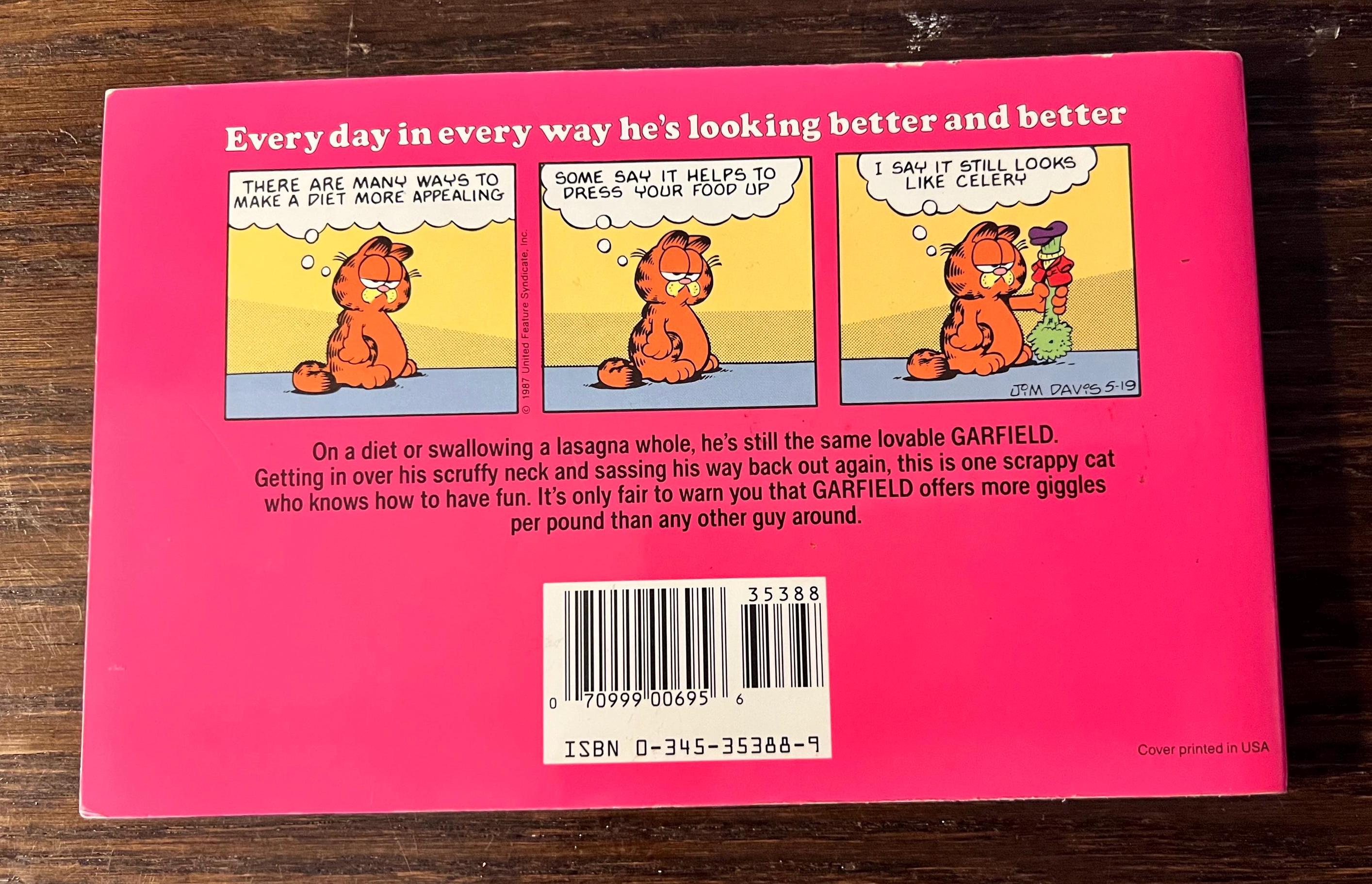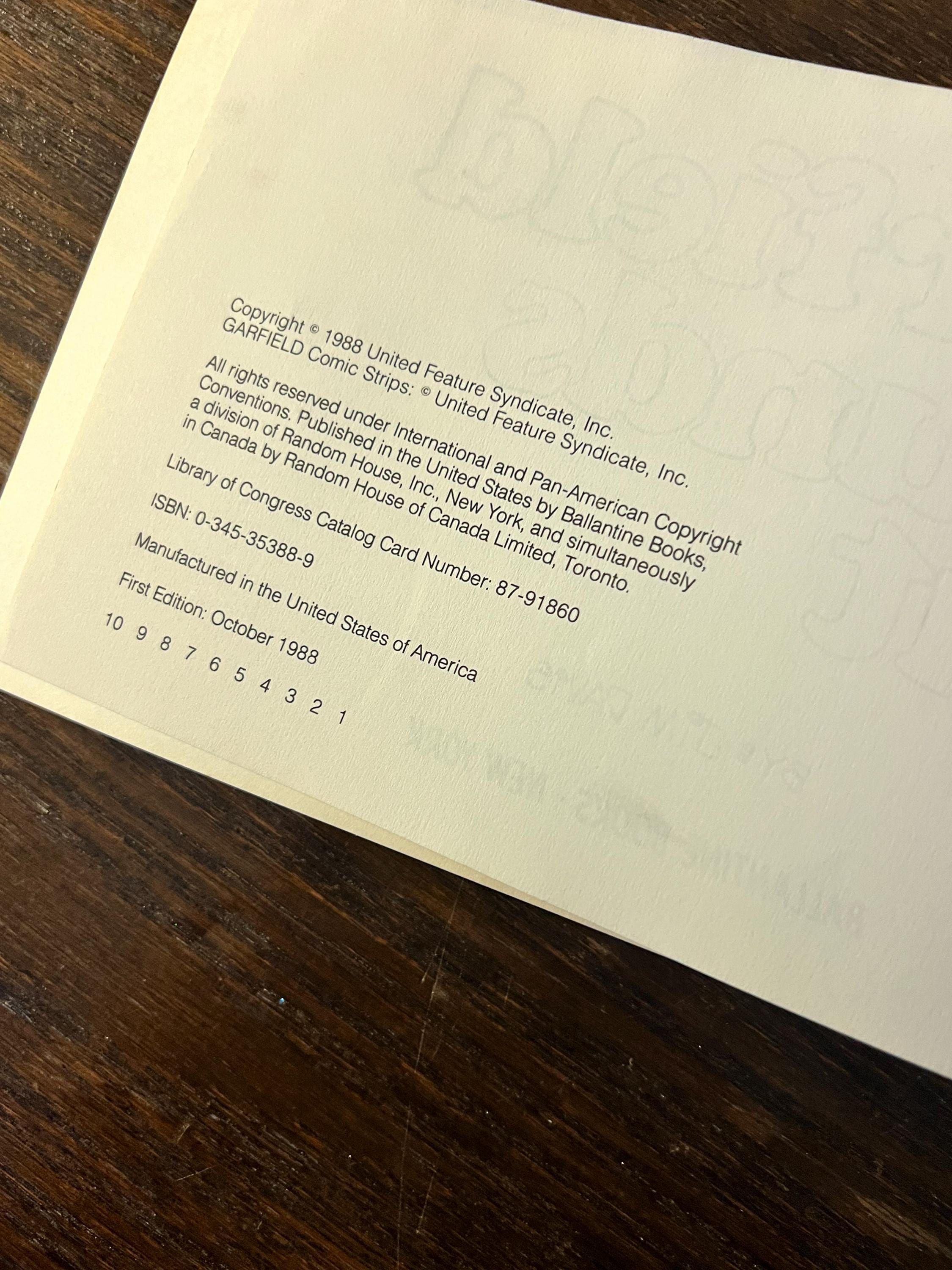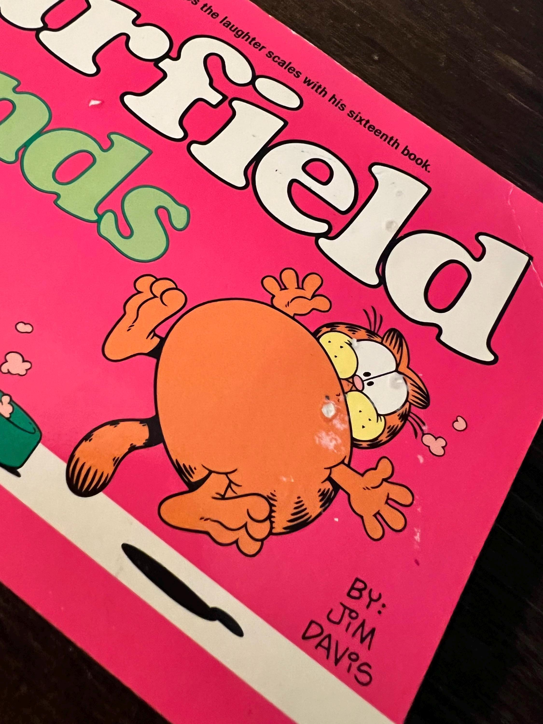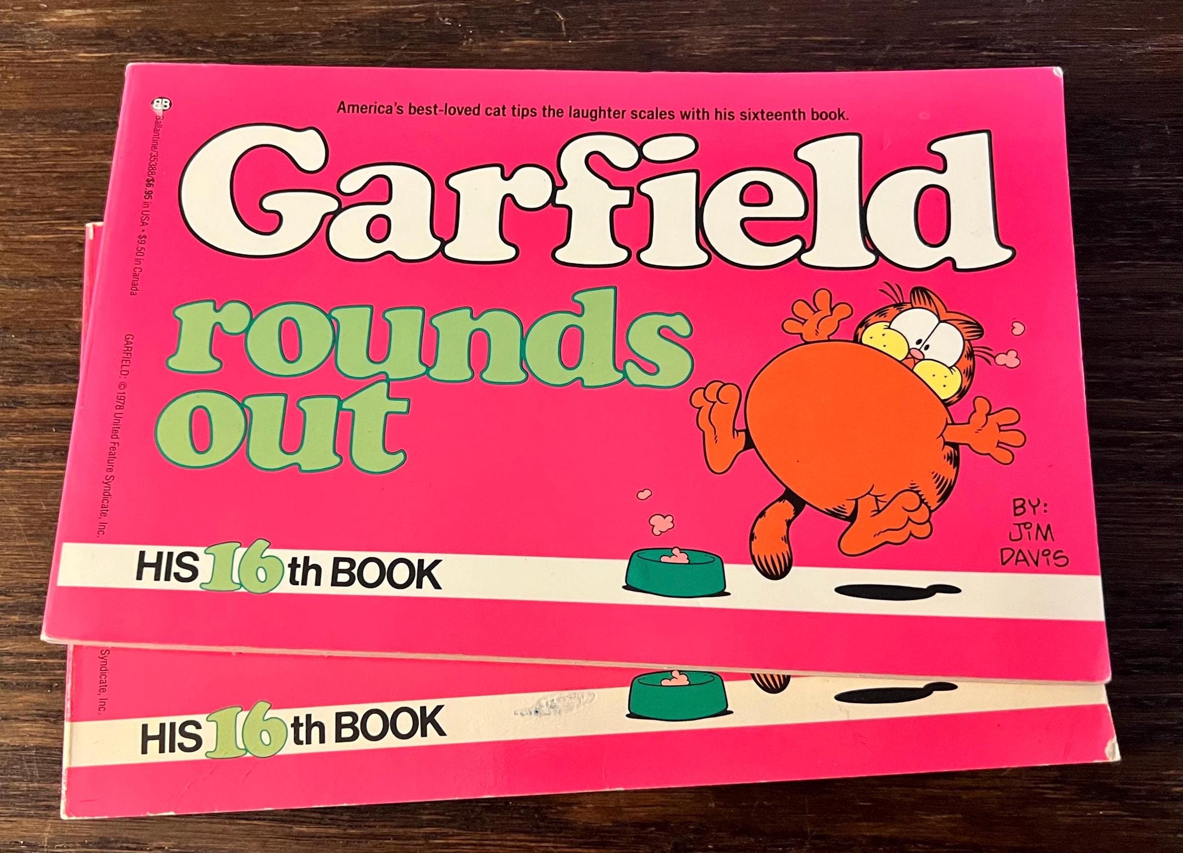 I am a huge Garfield fan! This is a book called Garfield Rounds Out, his 16th book from 1988. It is in good vintage condition.