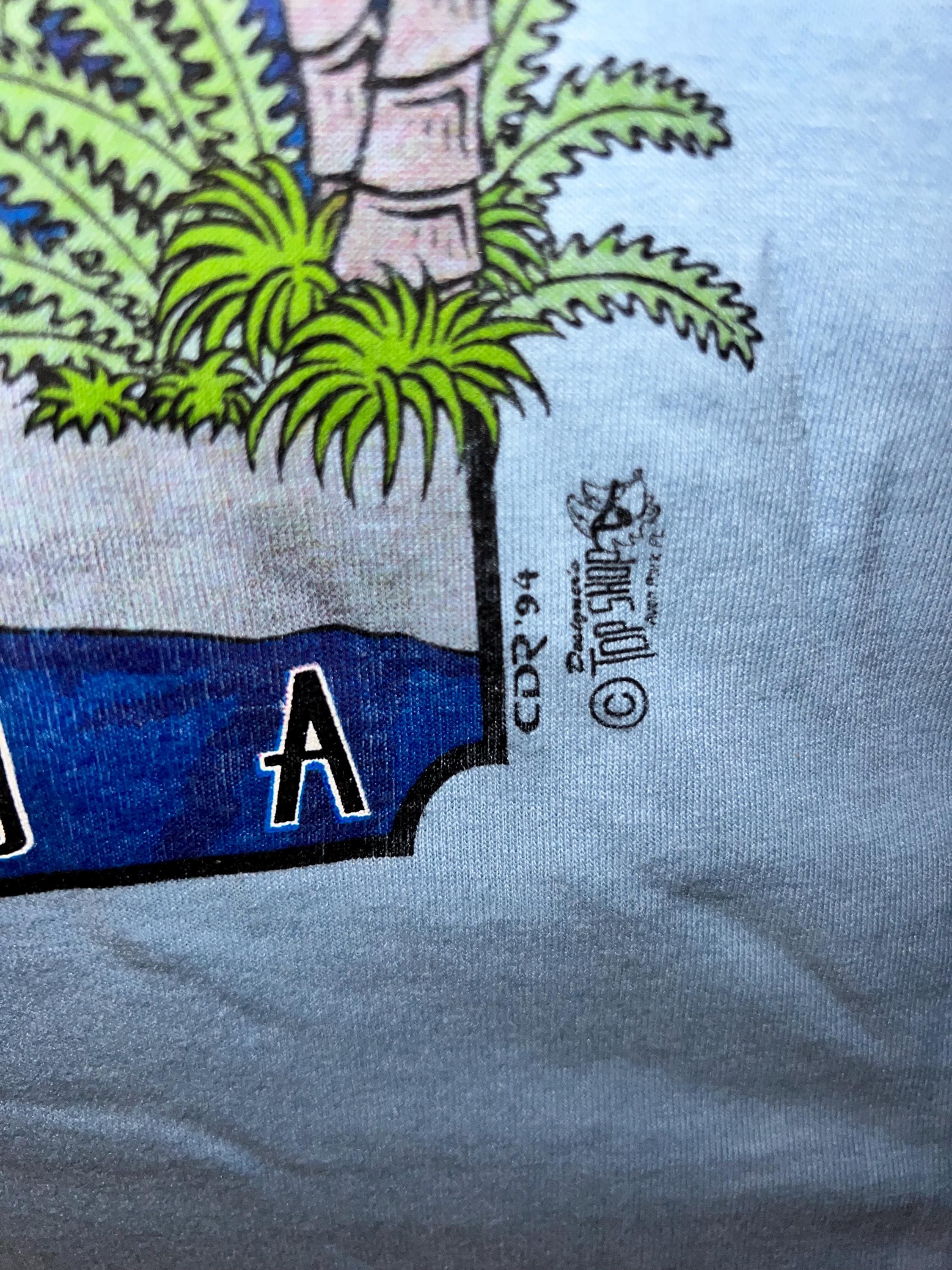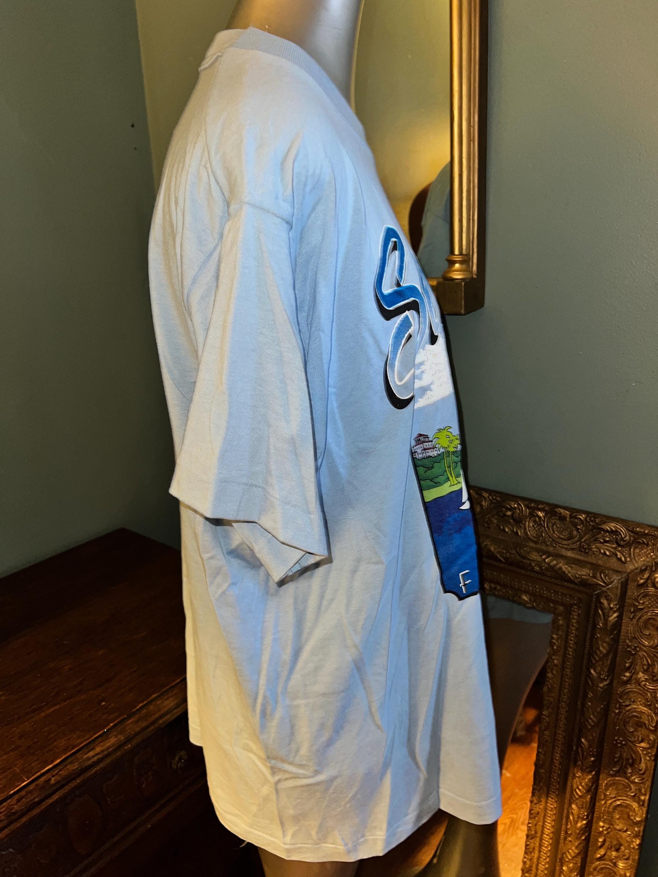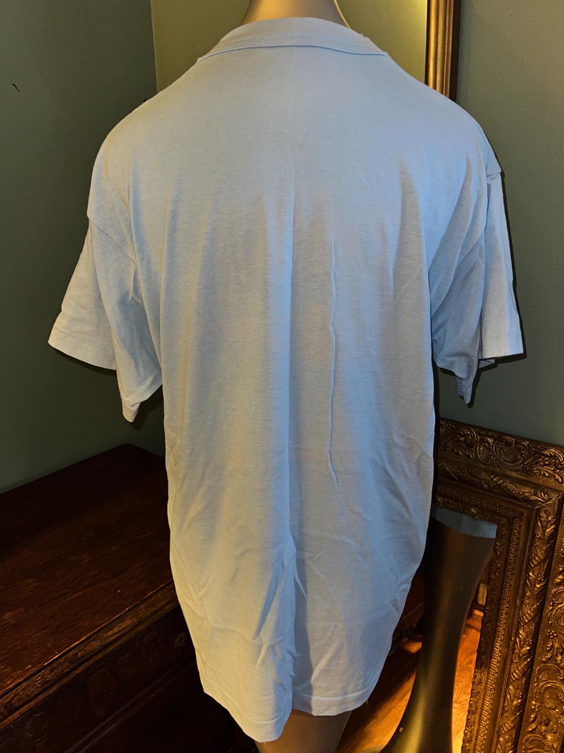 Oh how I love love love this beautiful 1980’s brand new without tags Sebring Florida tee! The baby blue color of the tee looks amazing with the excellent sailboat scene on the front!Its single stitch, USA made “Best” tee. It’s in great vintage condition.
