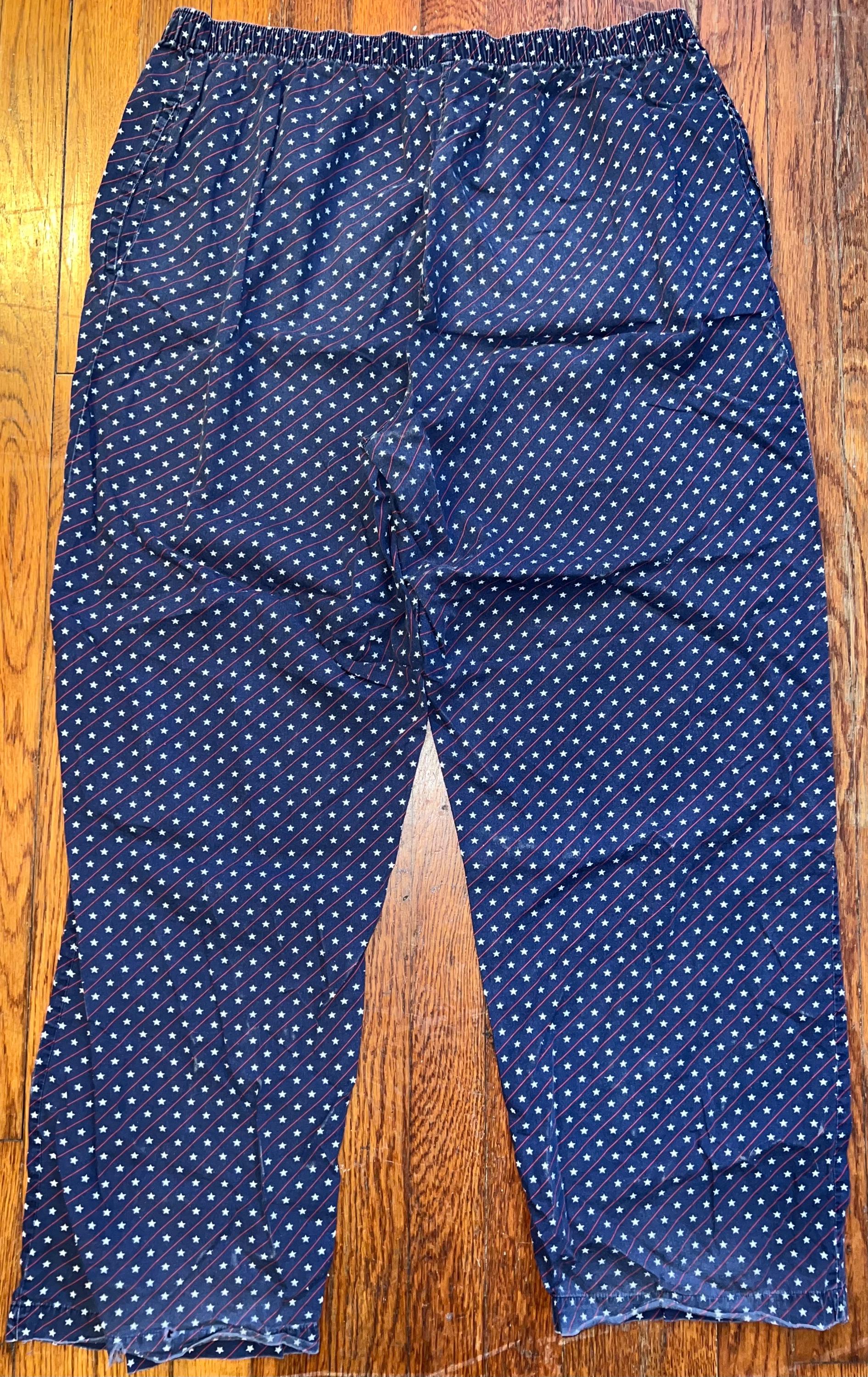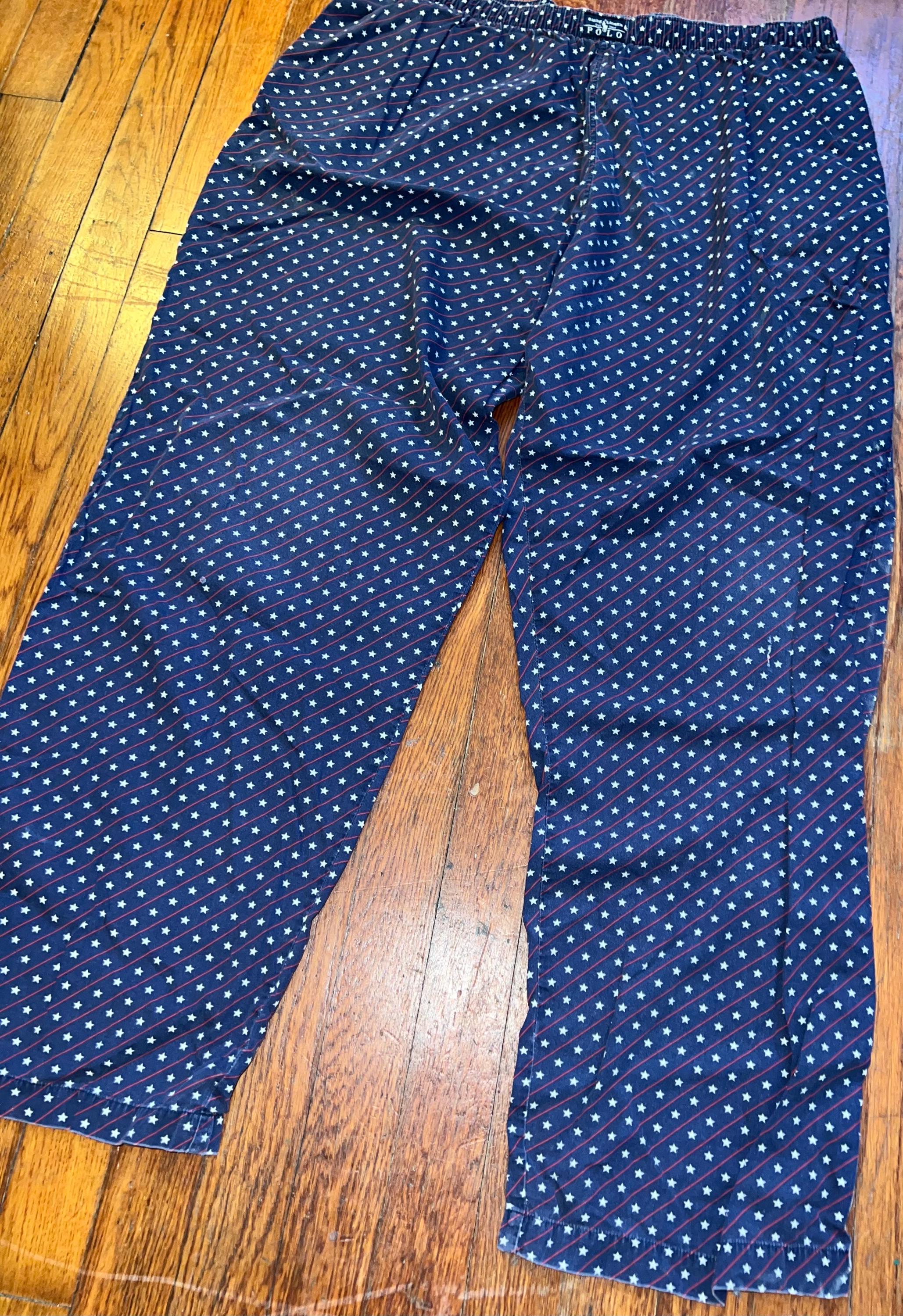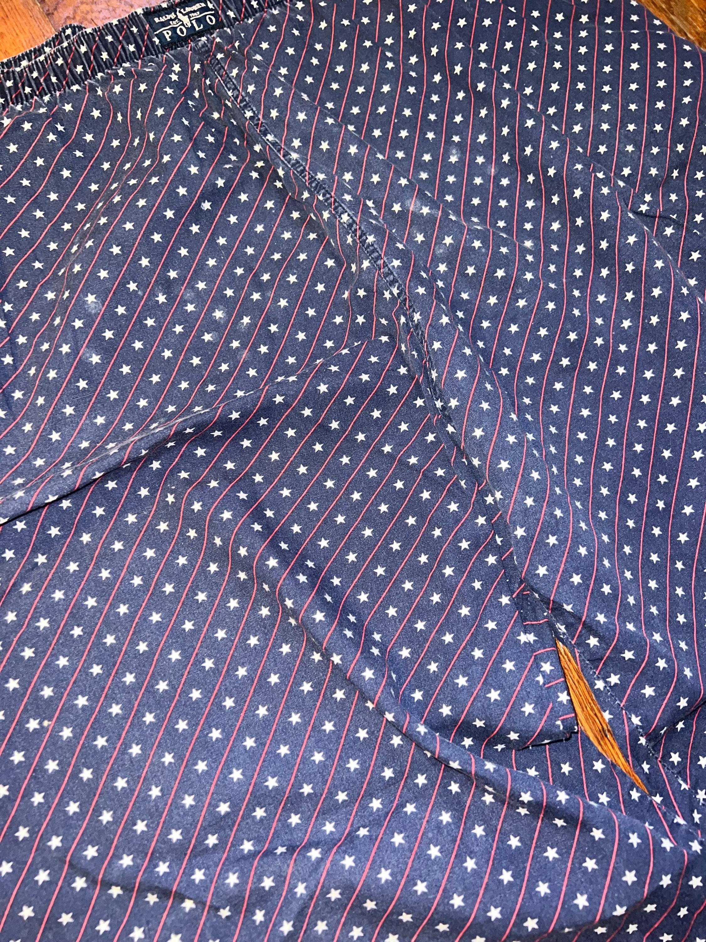 This is a super soft cozy pair of Polo, Ralph Lauren sleeping pants. They are perfect for the Fourth of July with the stars and stripes design. They are well worn but super comfy and in good vintage condition.