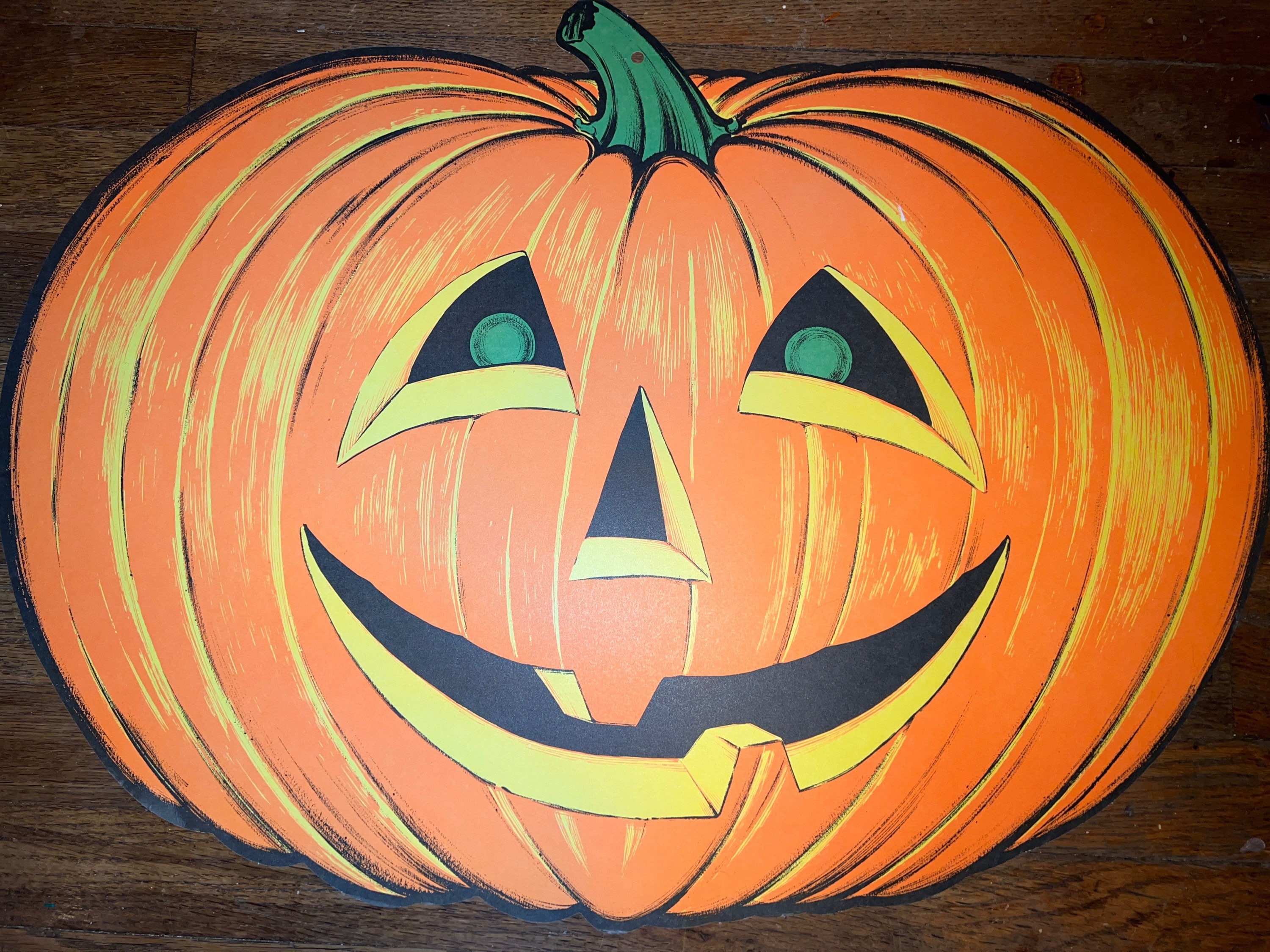This listing is for ONE true vintage, 1973 Beistle Jack O’ Lantern cardboard cutout. It is so great, just a marvelous find! The stem is a little bent but all in all it looks almost brand new, which is unheard of considering it’s almost 50 years old. They are simply adorable. The photos speak for themselves!