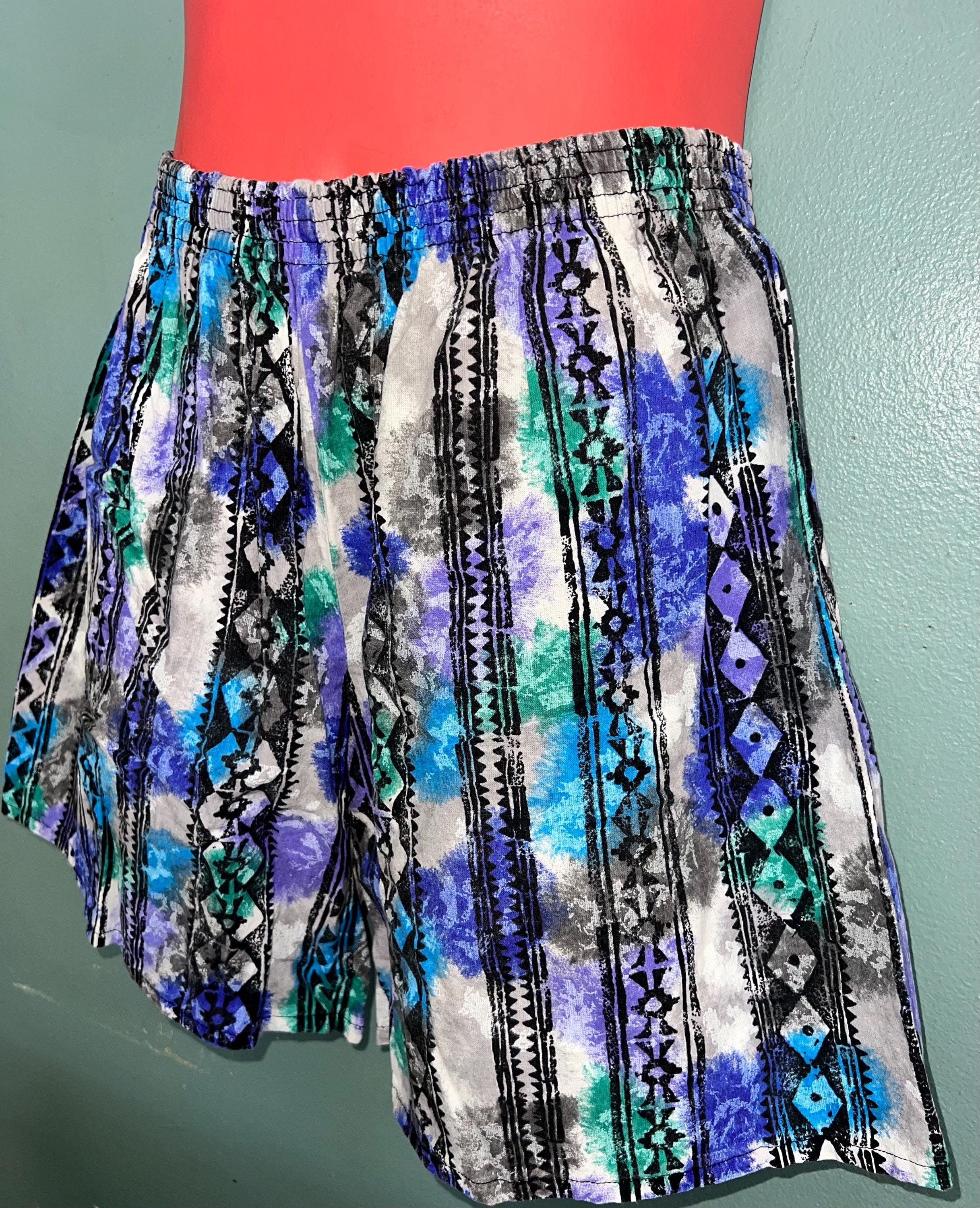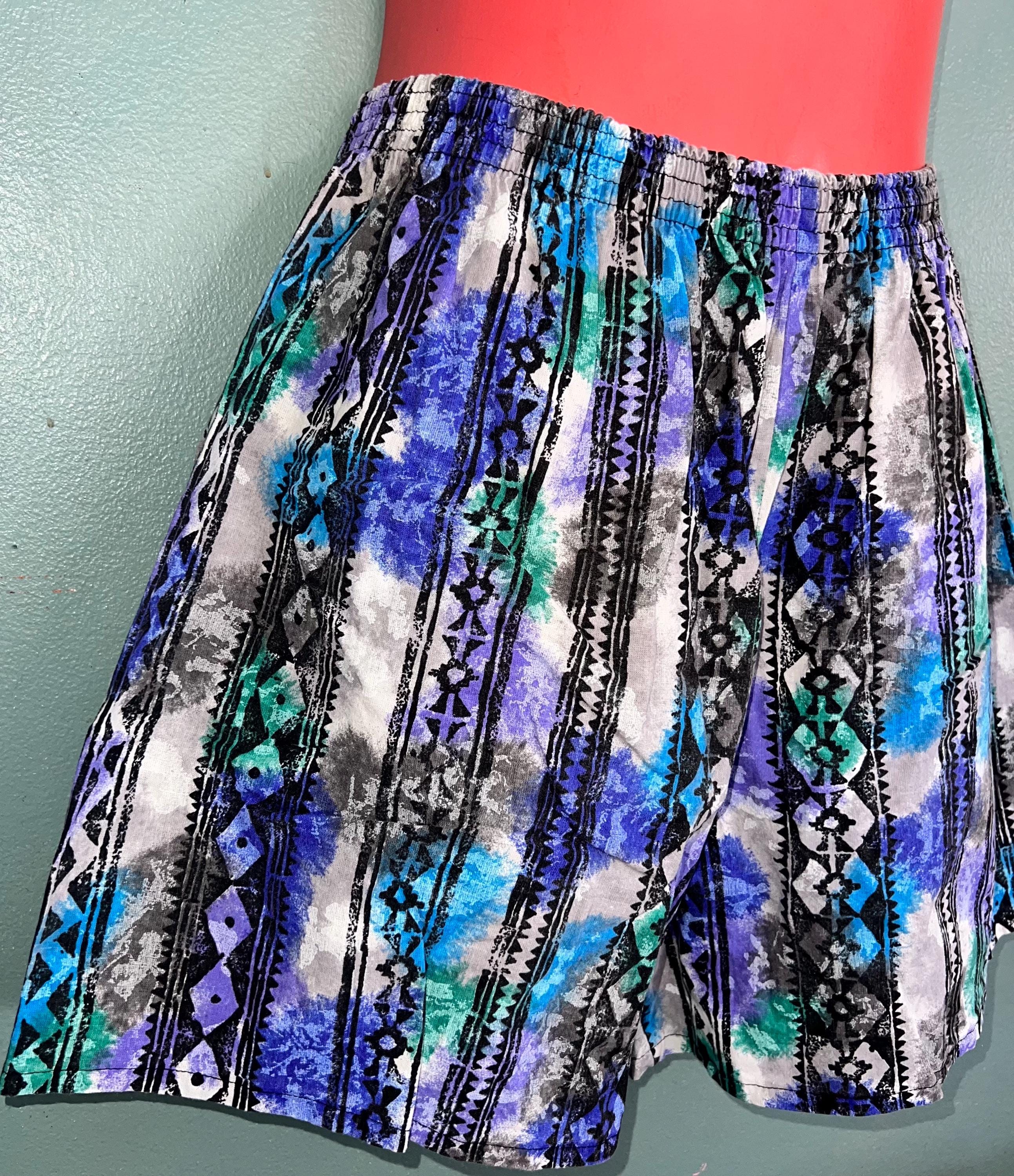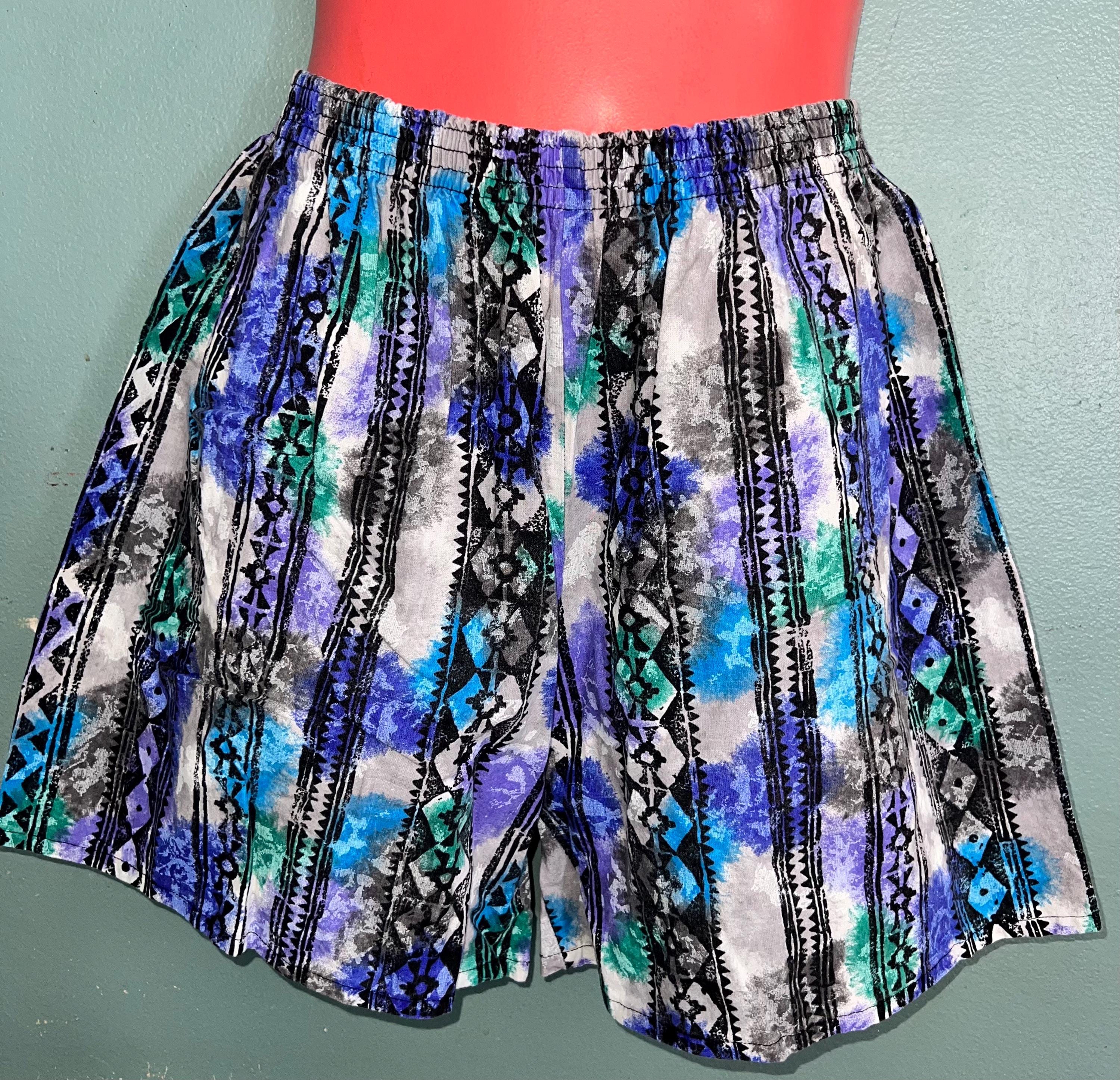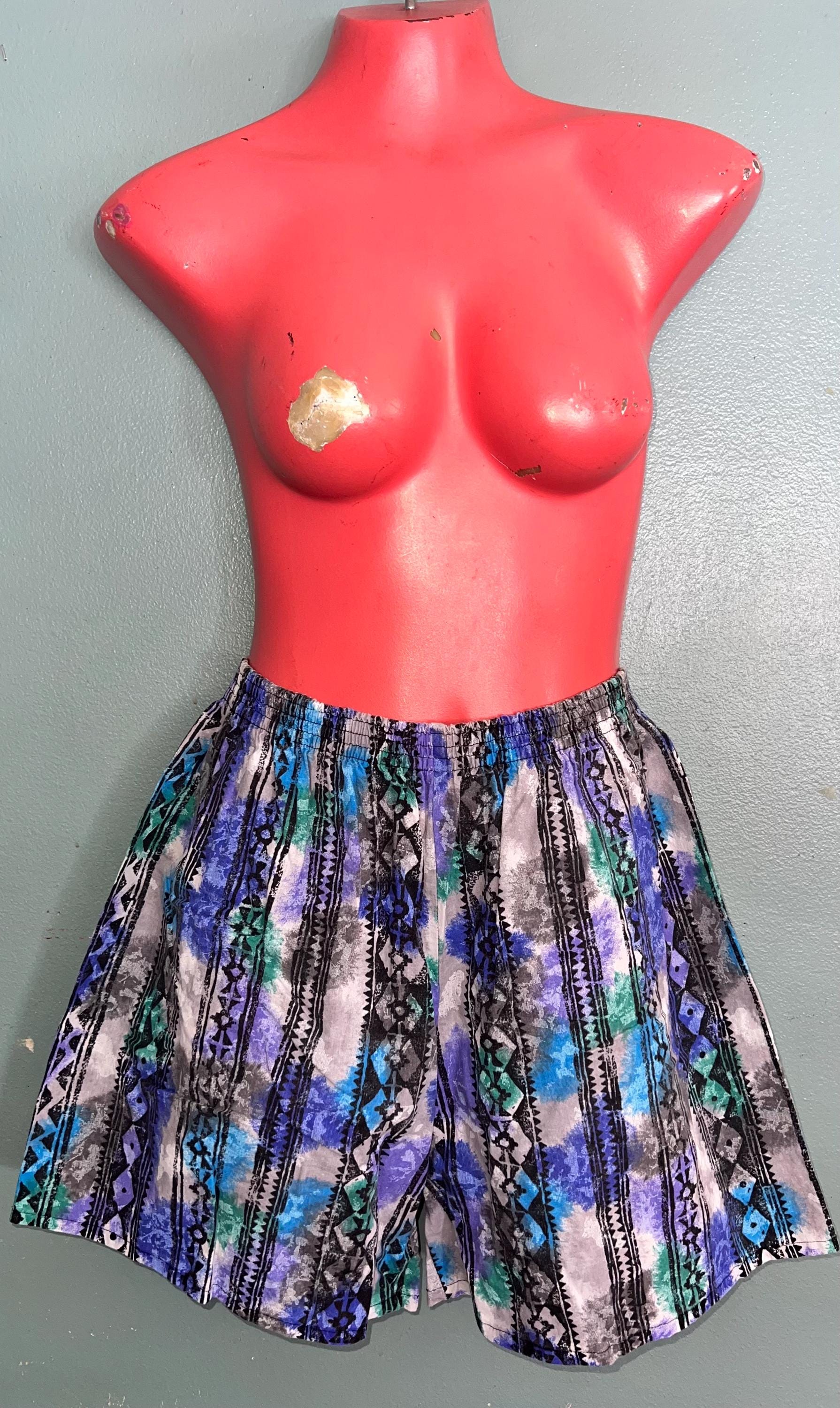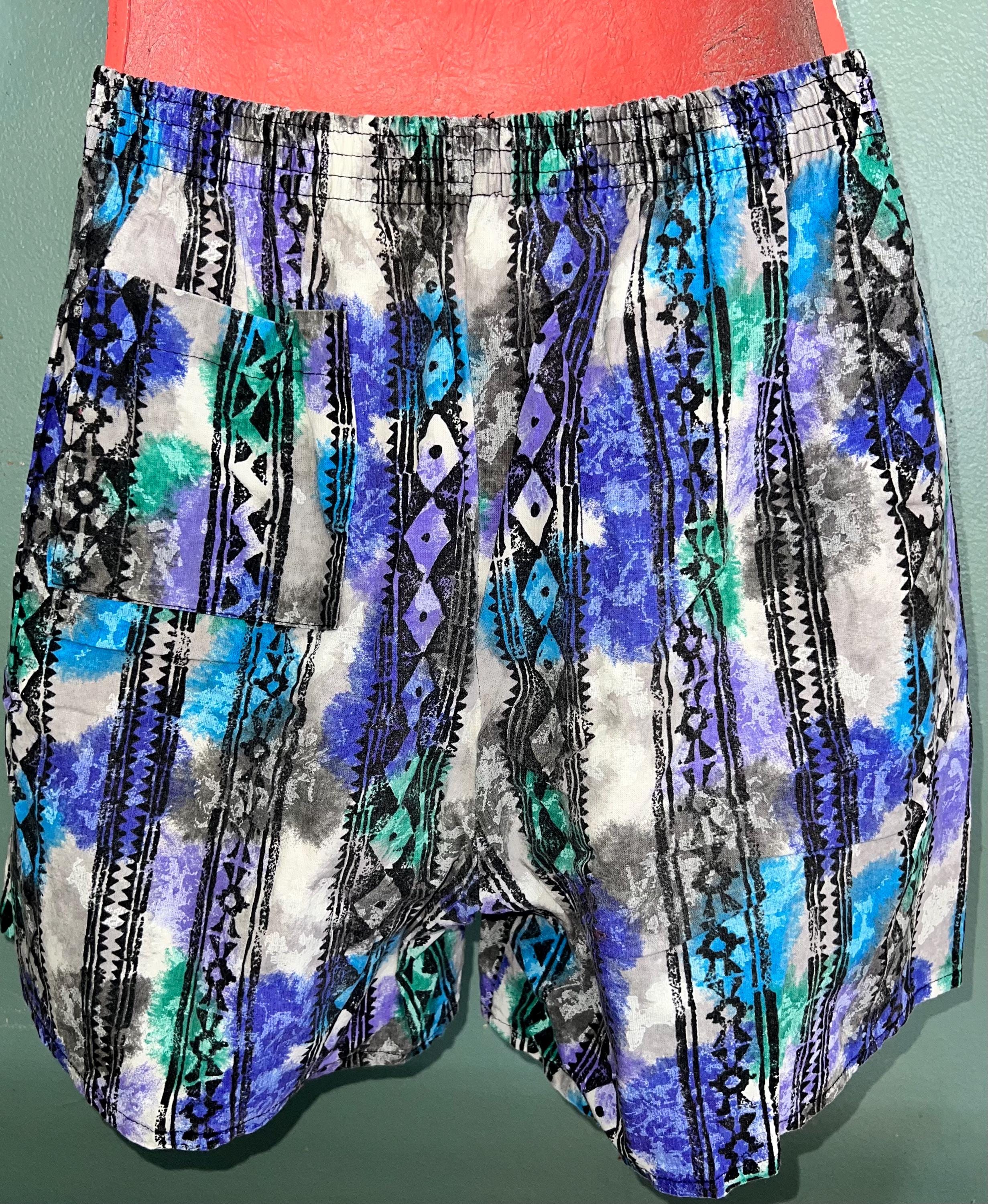 These are great 80’s shorts. I love the awesome pattern on them. They have an elastic waist but no pockets. They are in good/basically new vintage condition!