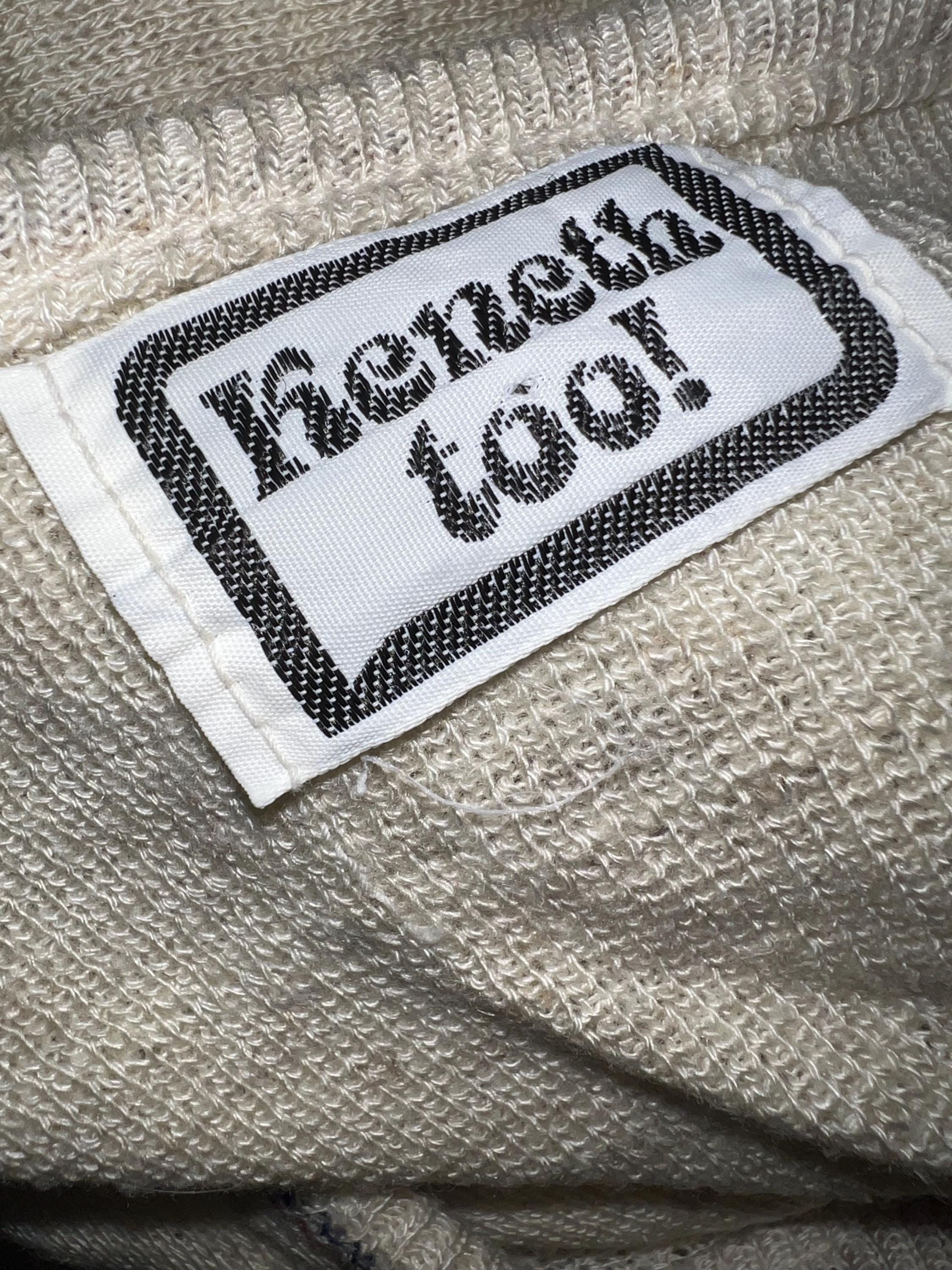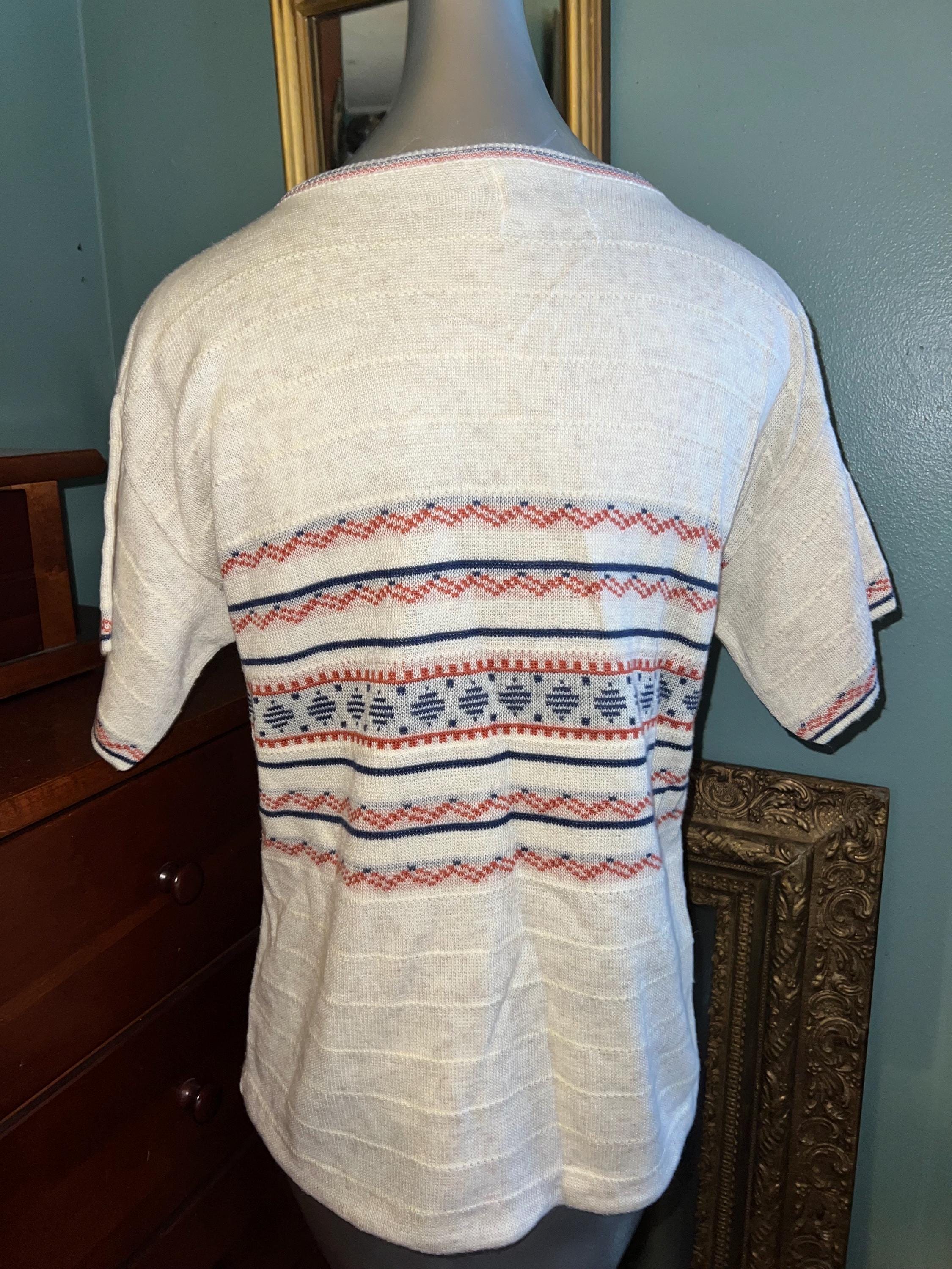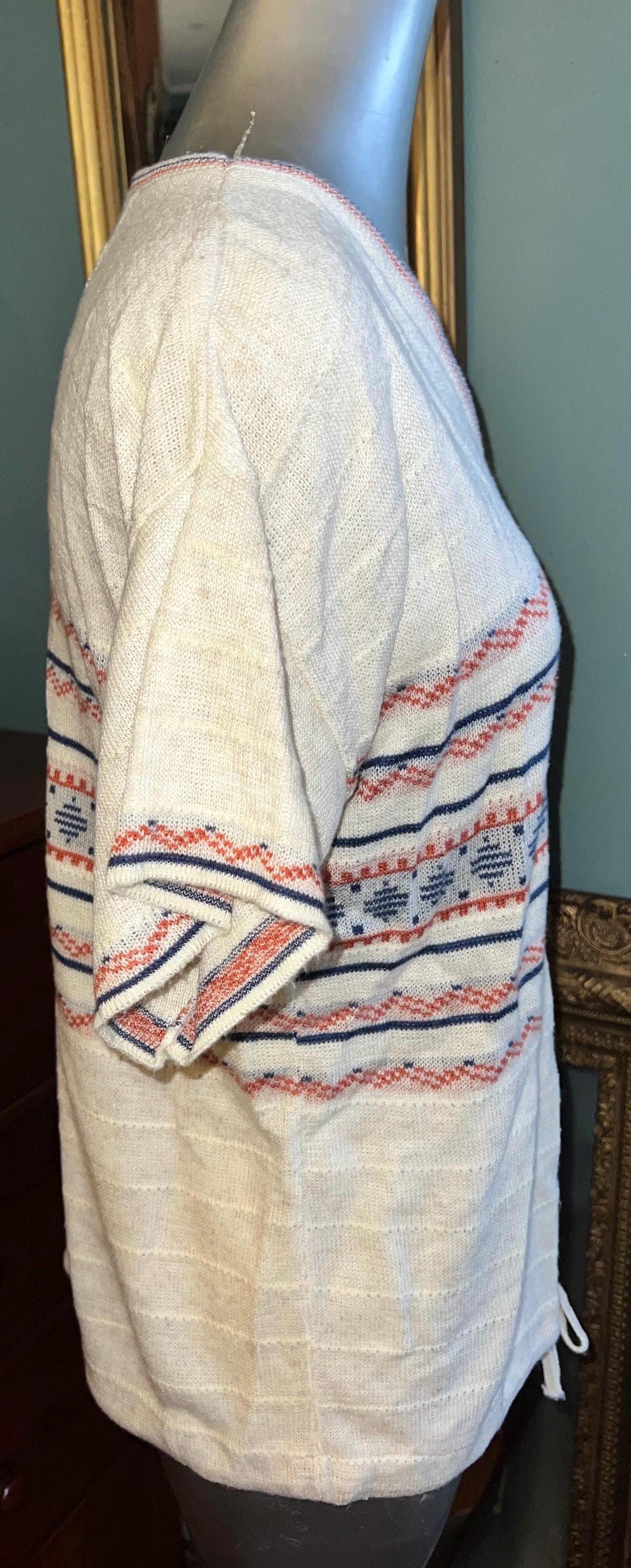 This sweater is too awesome! It has a great design and a drawstring bottom. It is in good vintage condition.