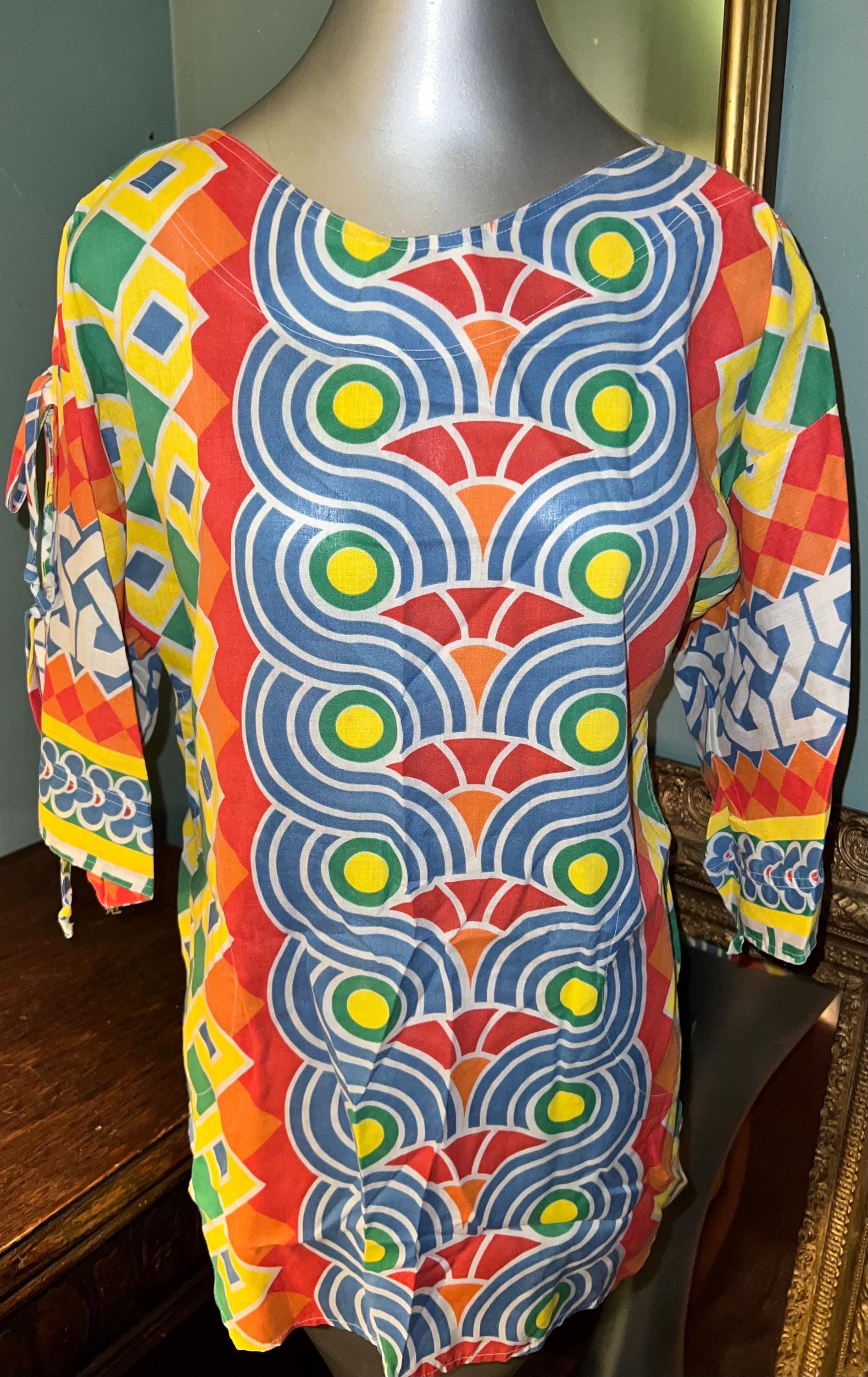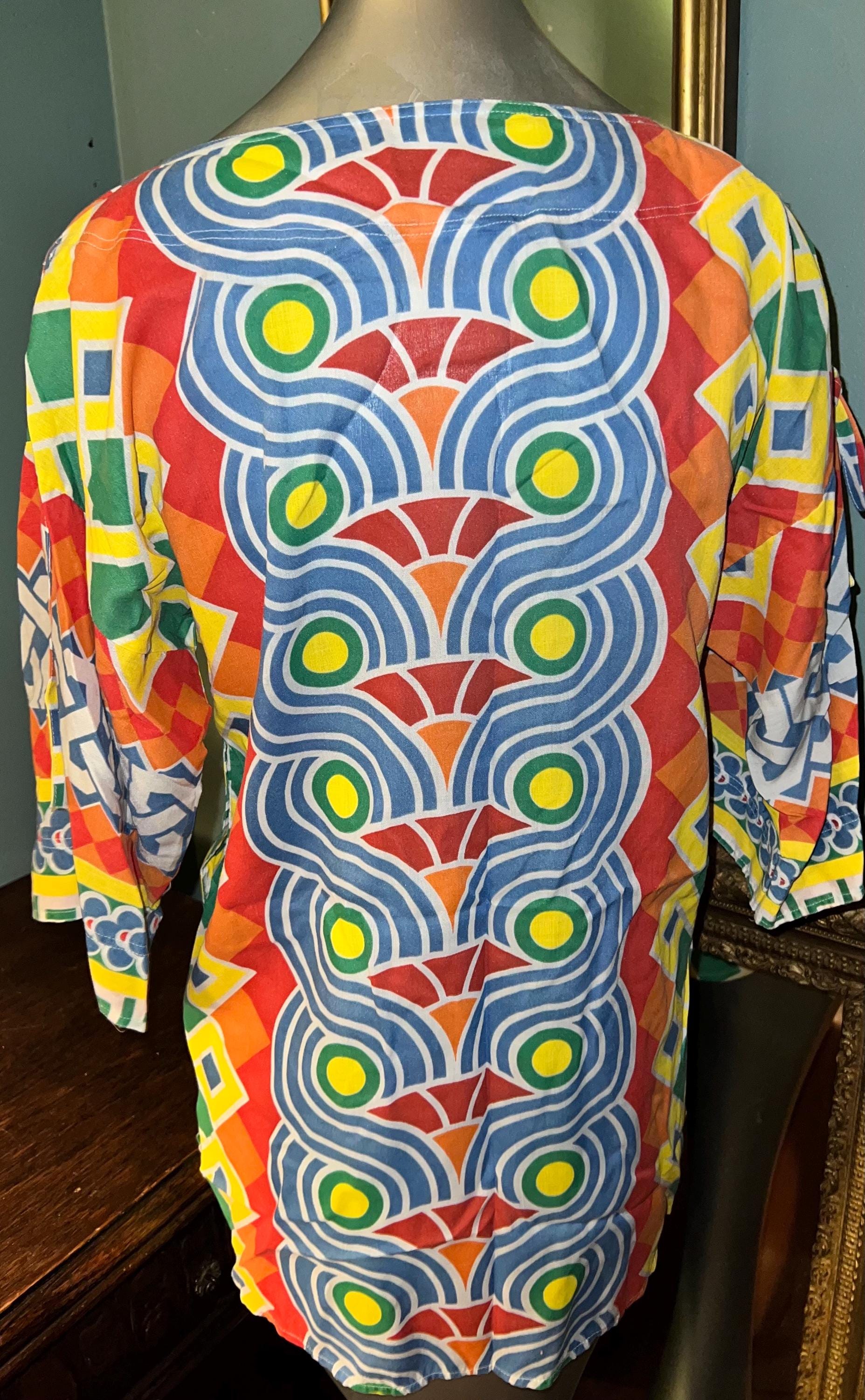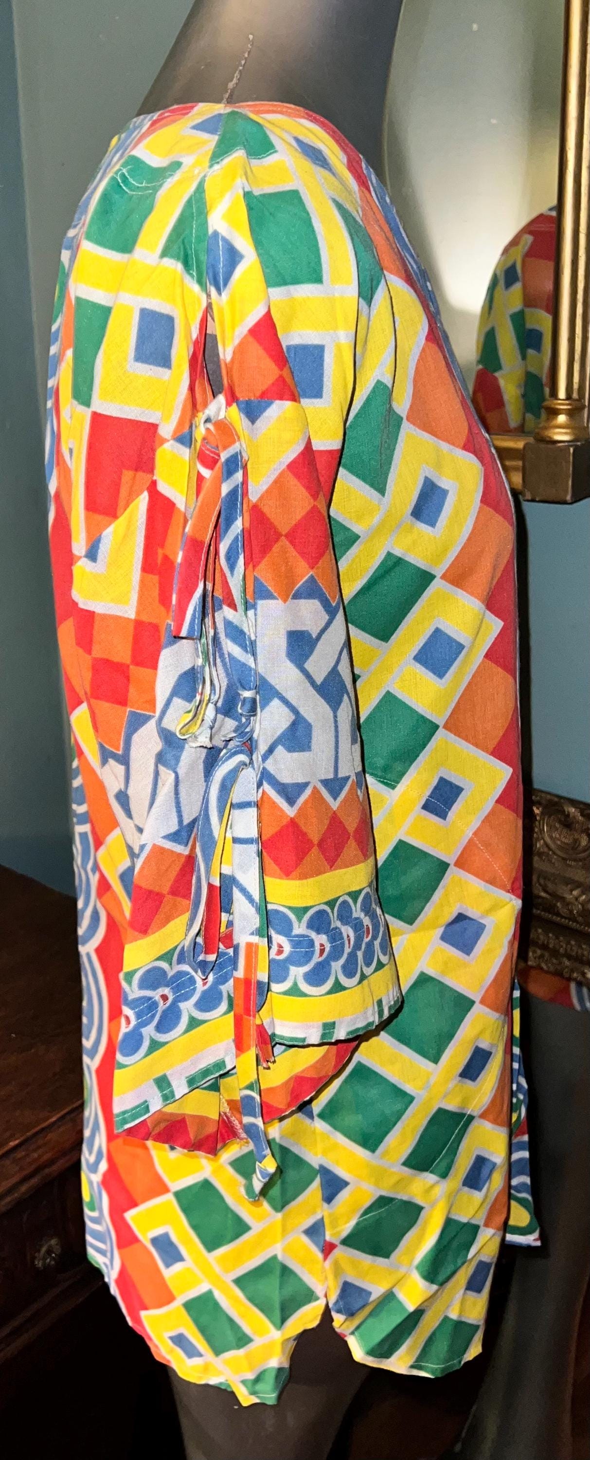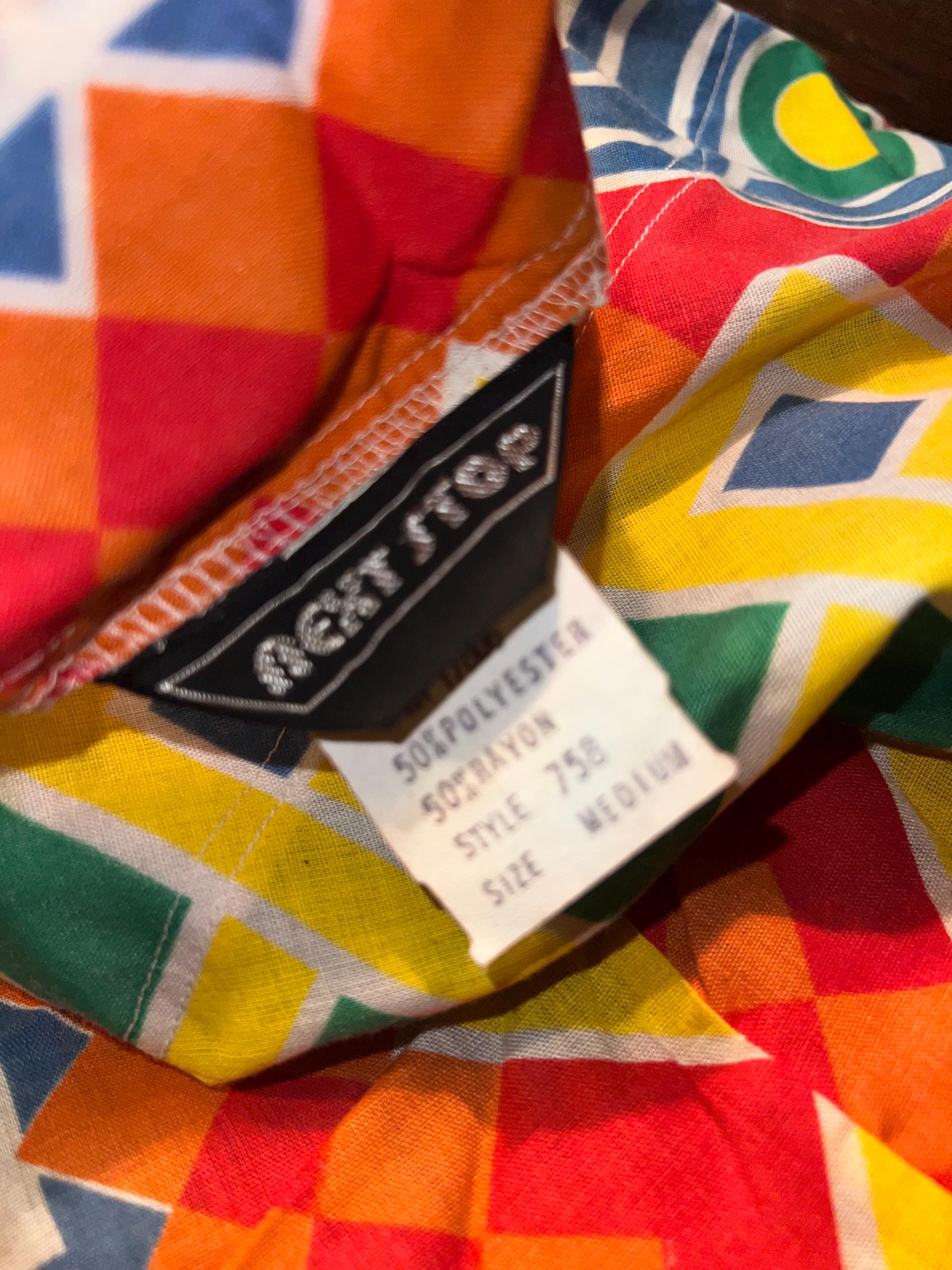 This is one of those shirts that when I find it, I just feel such happiness! It’s amazing vintage! 70’s colorful hippie tunic. It’s in good vintage condition.