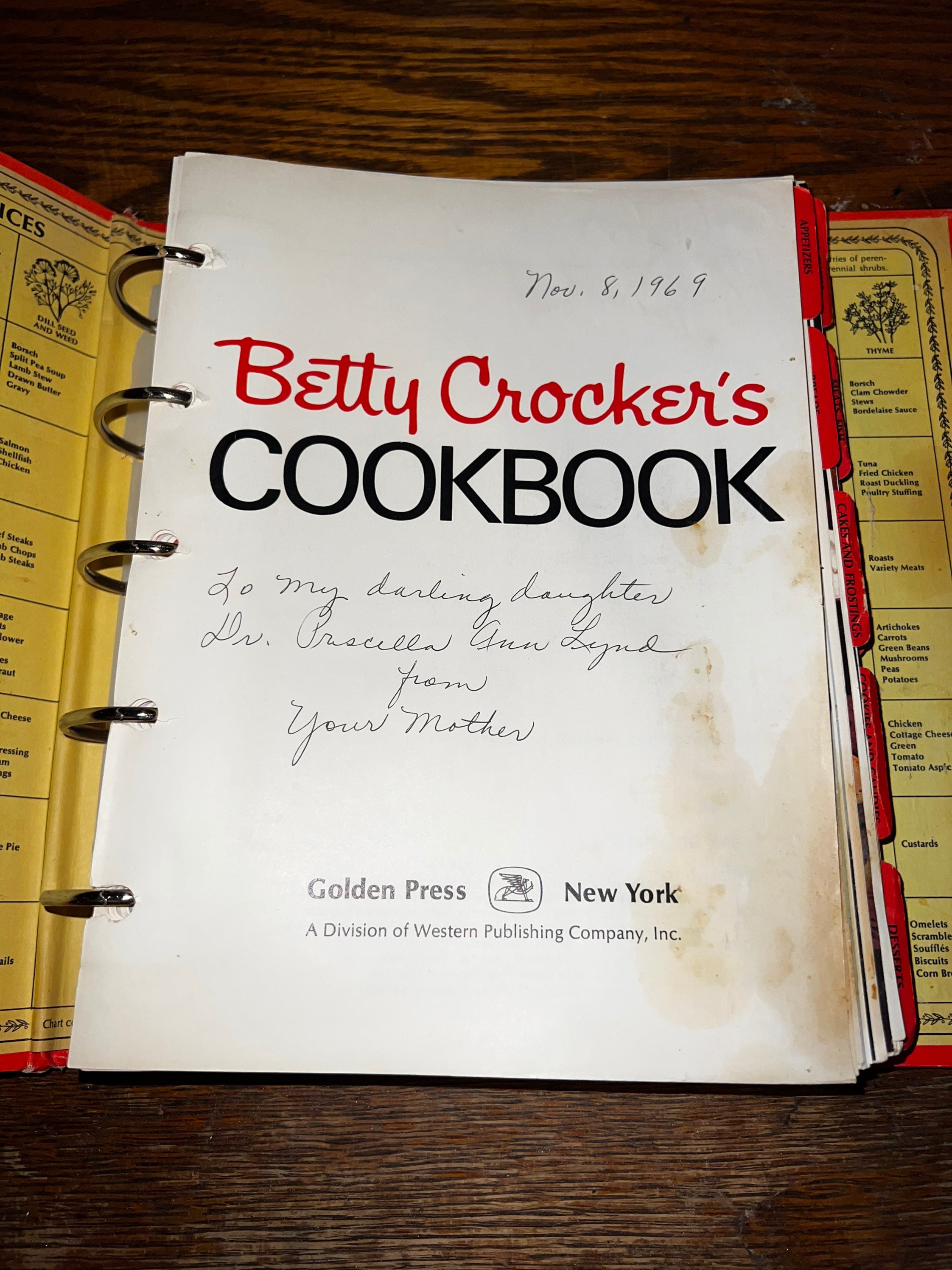 This is a 1969 Betty Crocker Cookbook. The colors are great for decorating. The recipes sound scrumptious! It’s in good condition, with only a few issues on the binder cover and the first few pages were stained as cookbooks can do when your cooking, I cleaned them really well and the first page is ripped at the holes but it’s in there so that could be fixed, I don’t want to put tape on book that someone else is going to buy. See all photos.