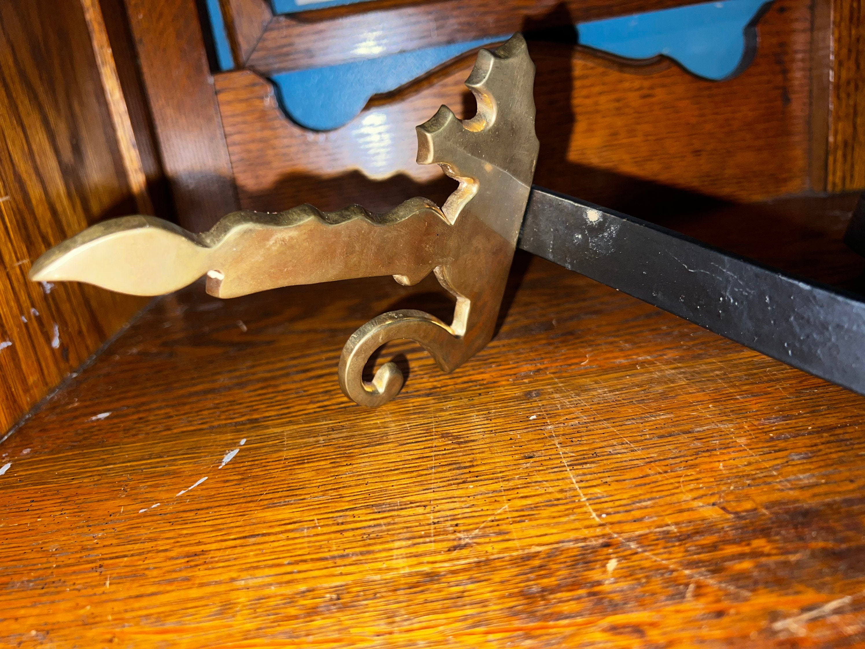 This is a really nice large Christmas stocking holder/hanger. It sits on the mantle and the stocking hangs from it. This is brass and cast metal so I assume it’s strong and it can hold a pretty good size stocking or something else.