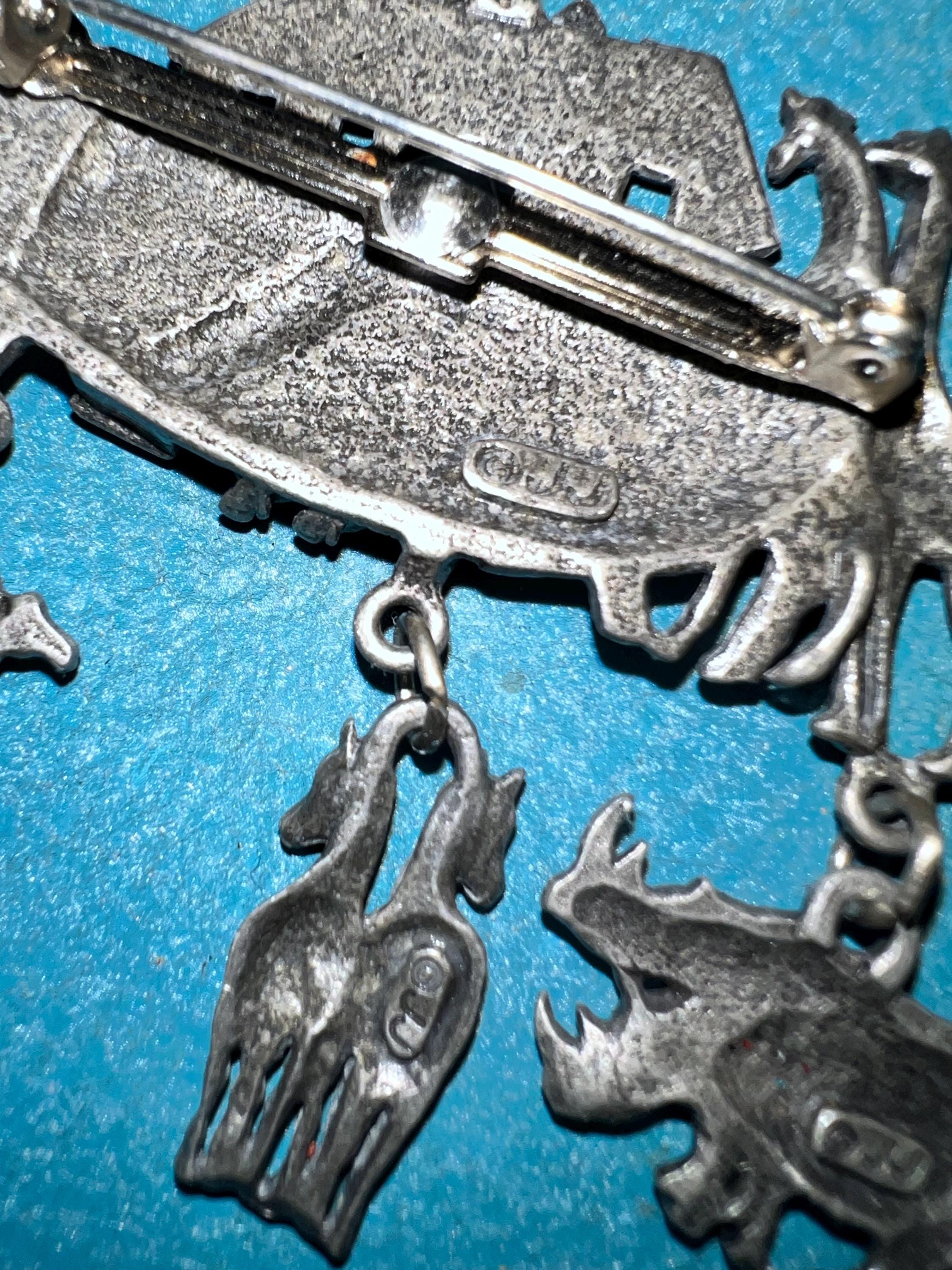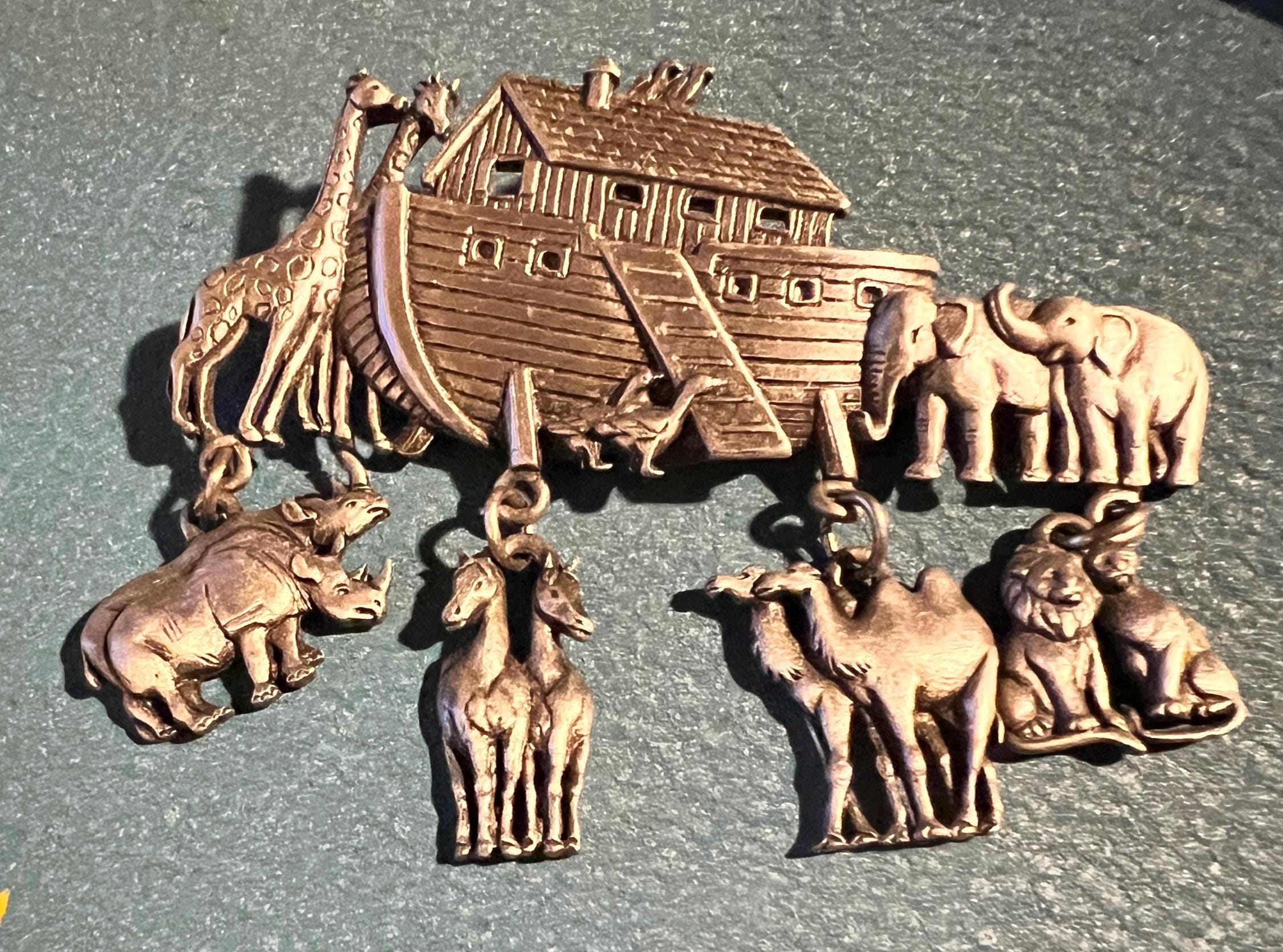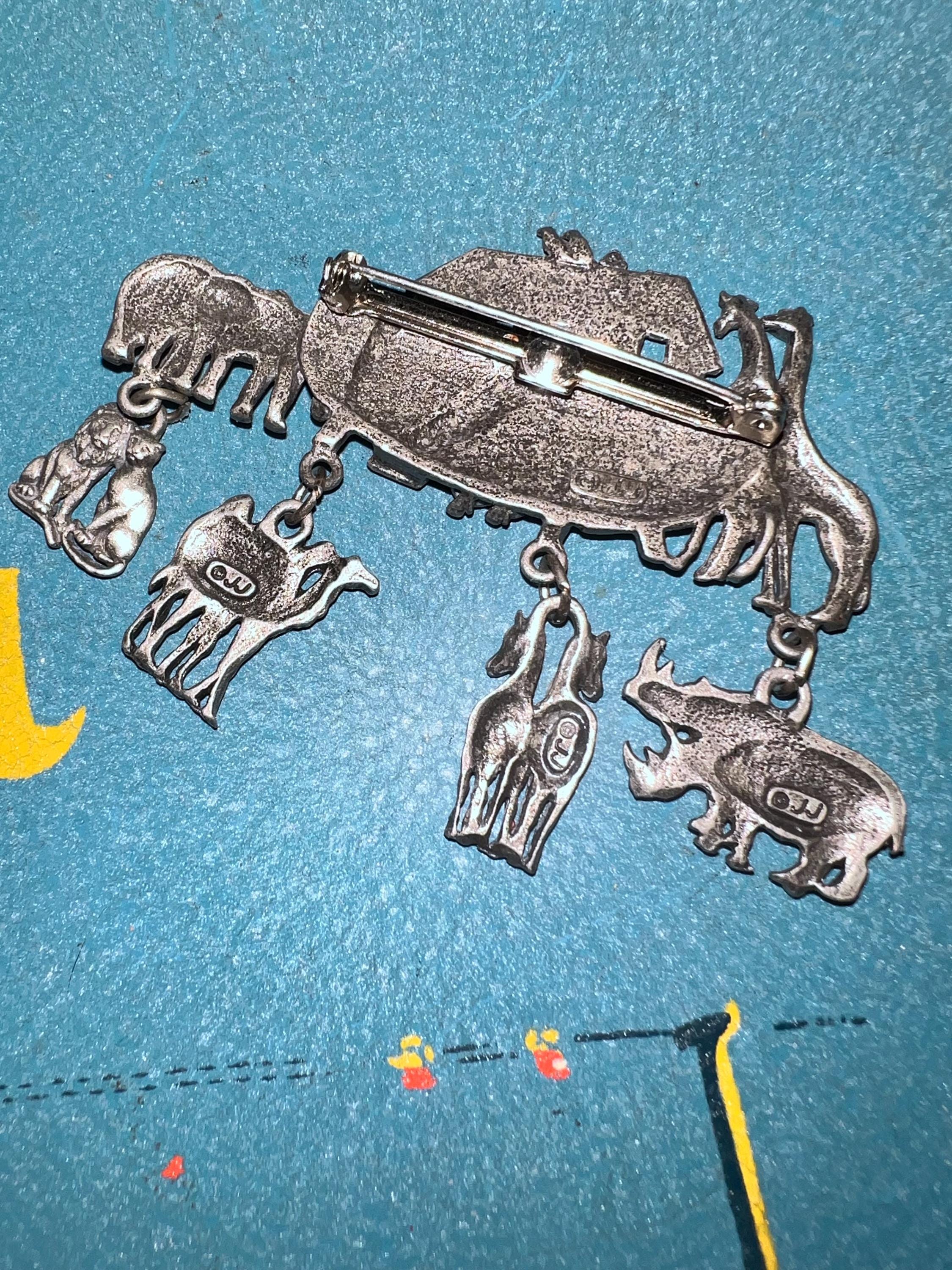 This is a really cute JJ (Jonette Jewelry) silver/pewter Noah’s Ark brooch. It’s in good vintage condition.