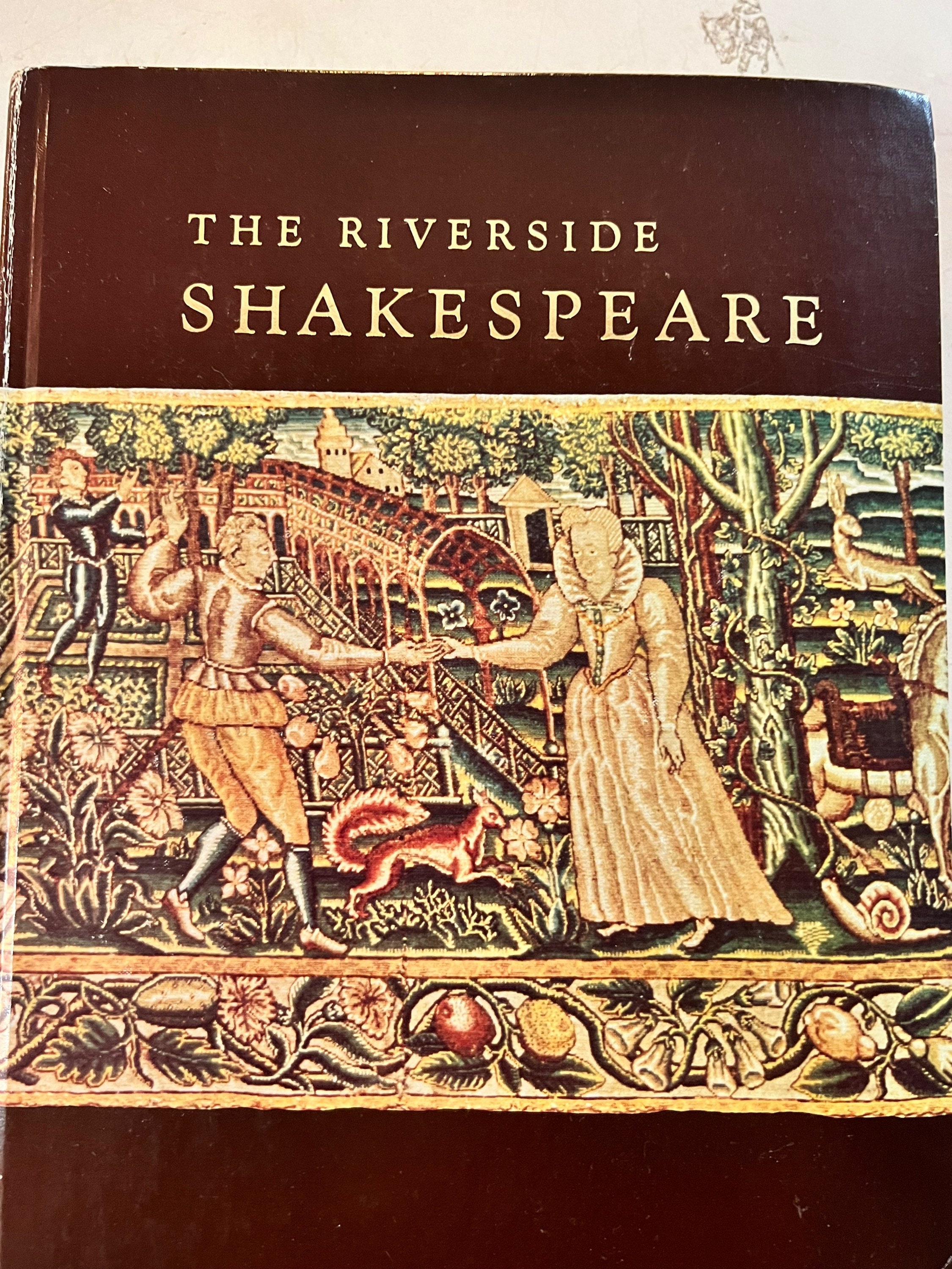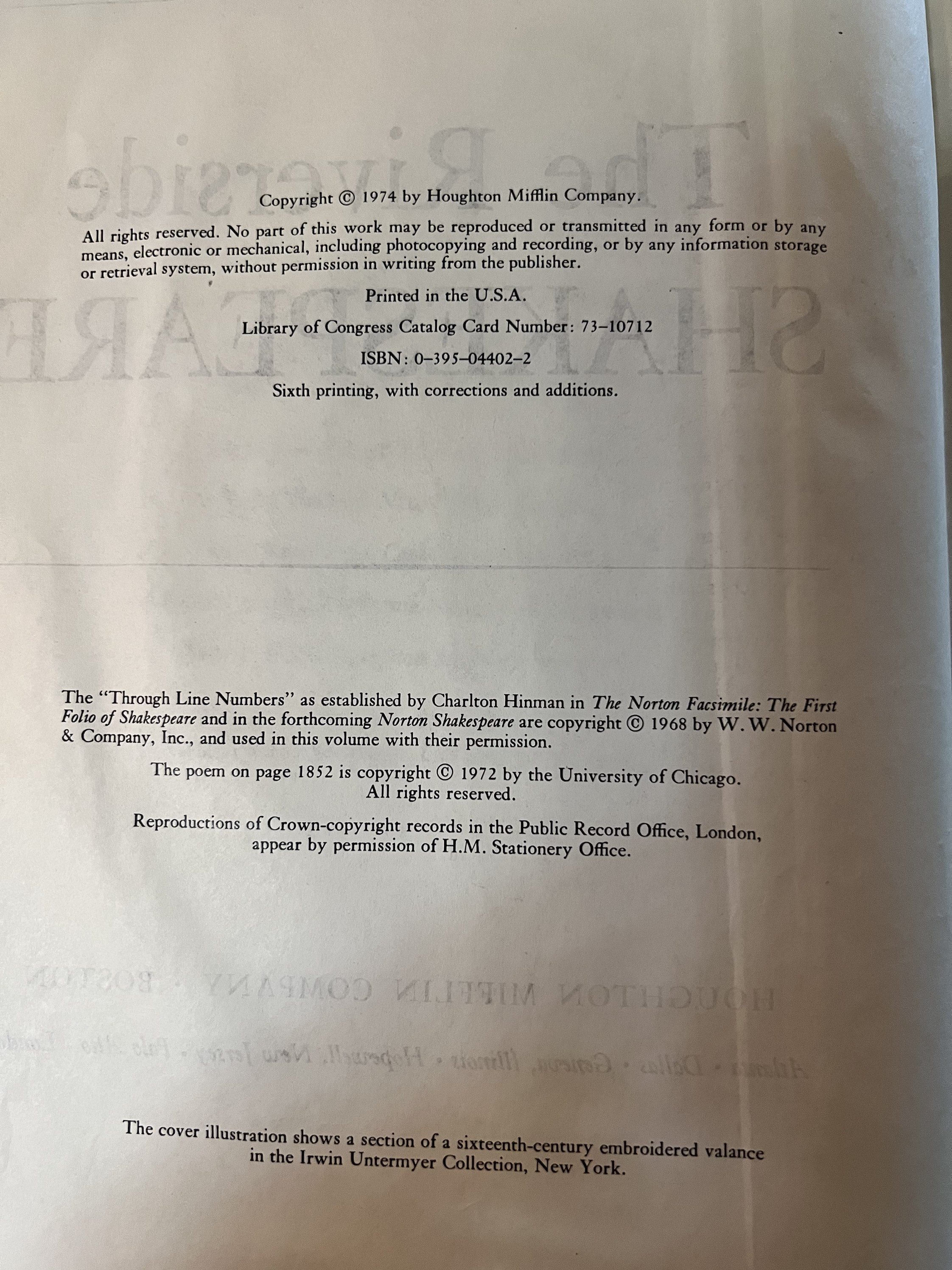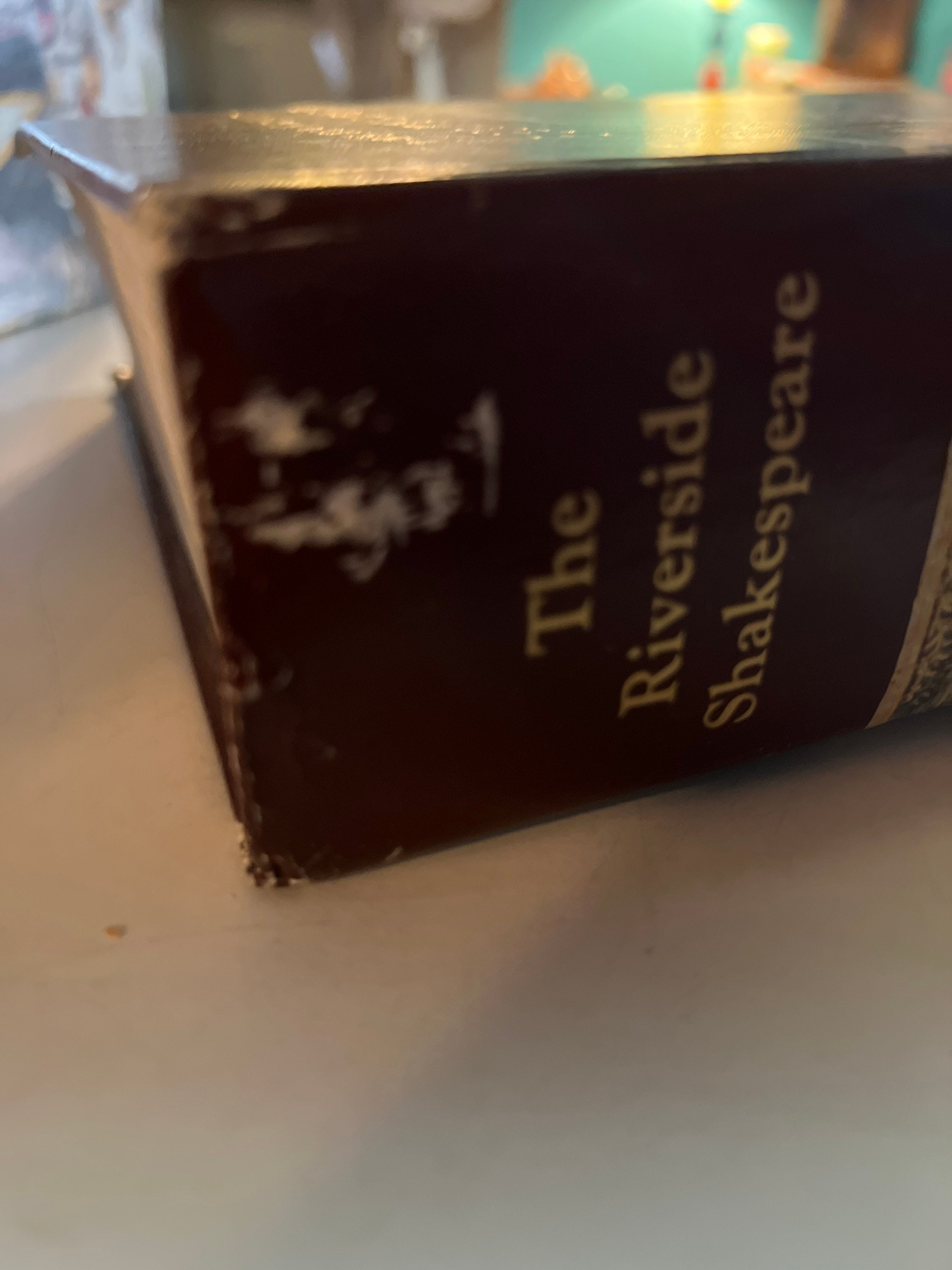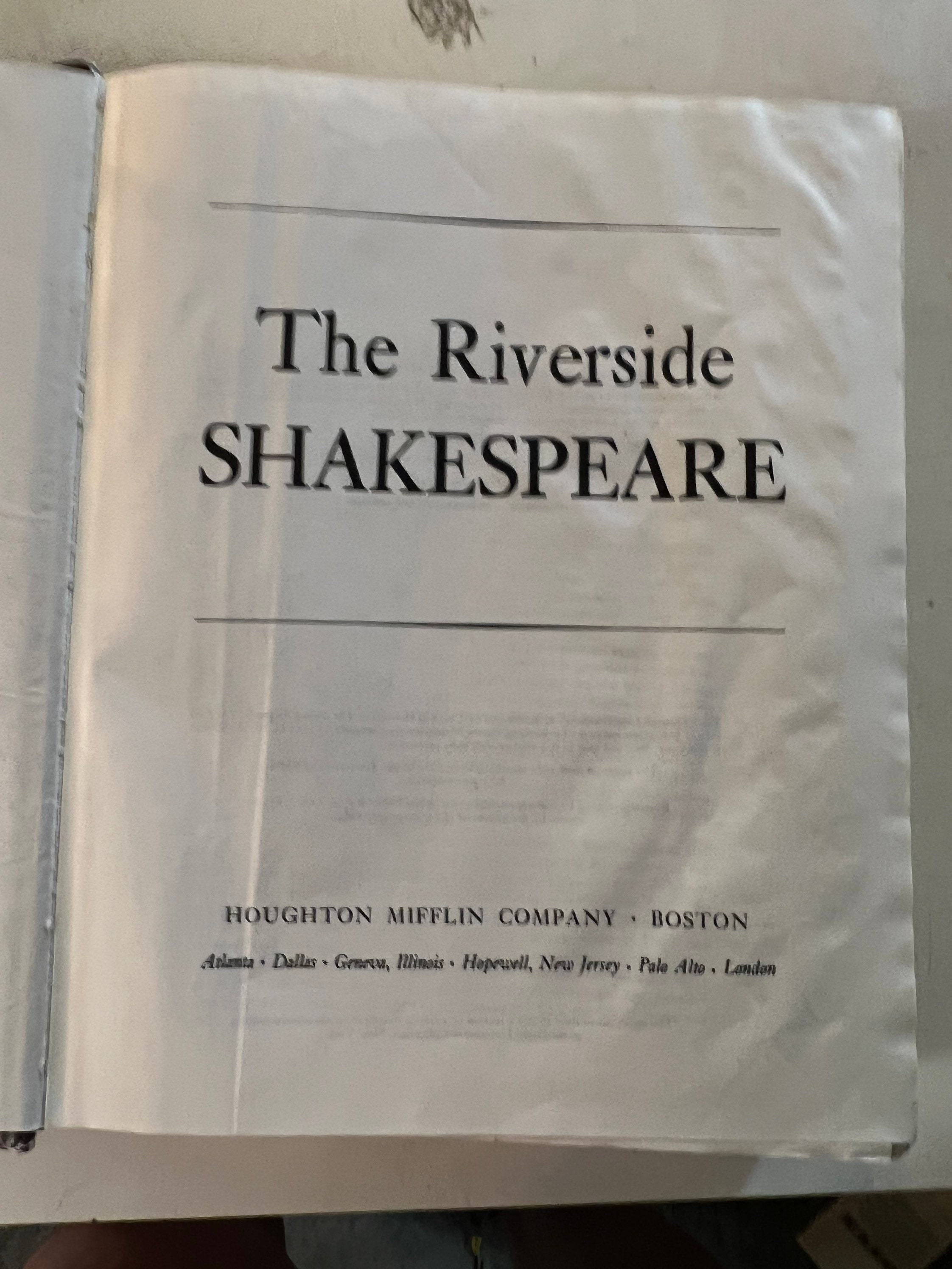 This is a 1974 copy of “The Riverside Shakespeare” textbook. The cover shows some wear and tear and then first few pages are wrinkled a bit. Please see all photos.