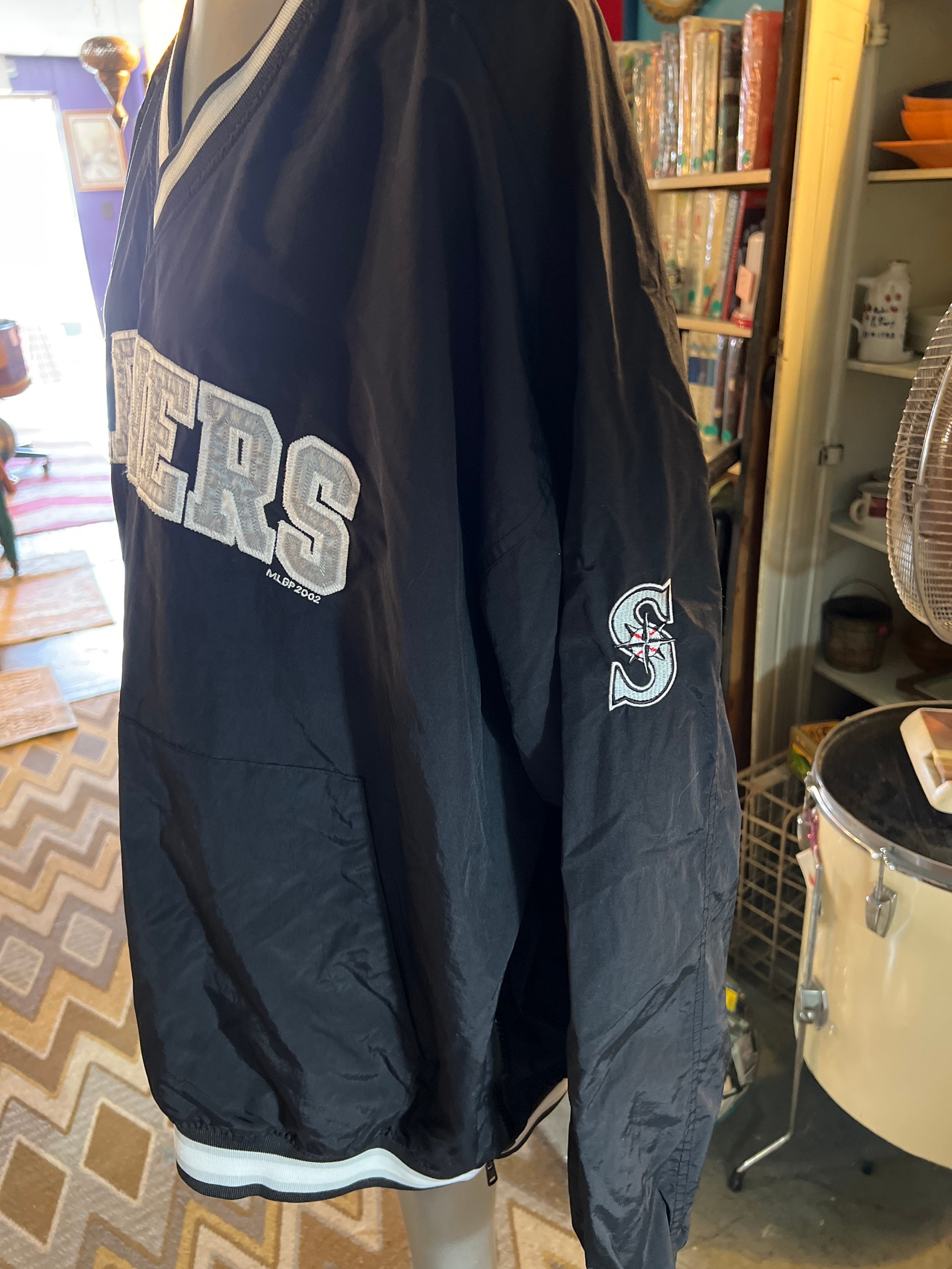 Excellent Seattle Mariners Pullover Jacket. It’s in really good Vintage condition! It’s got Mariners embroidered on the front of it and a patch on the left arm as well.