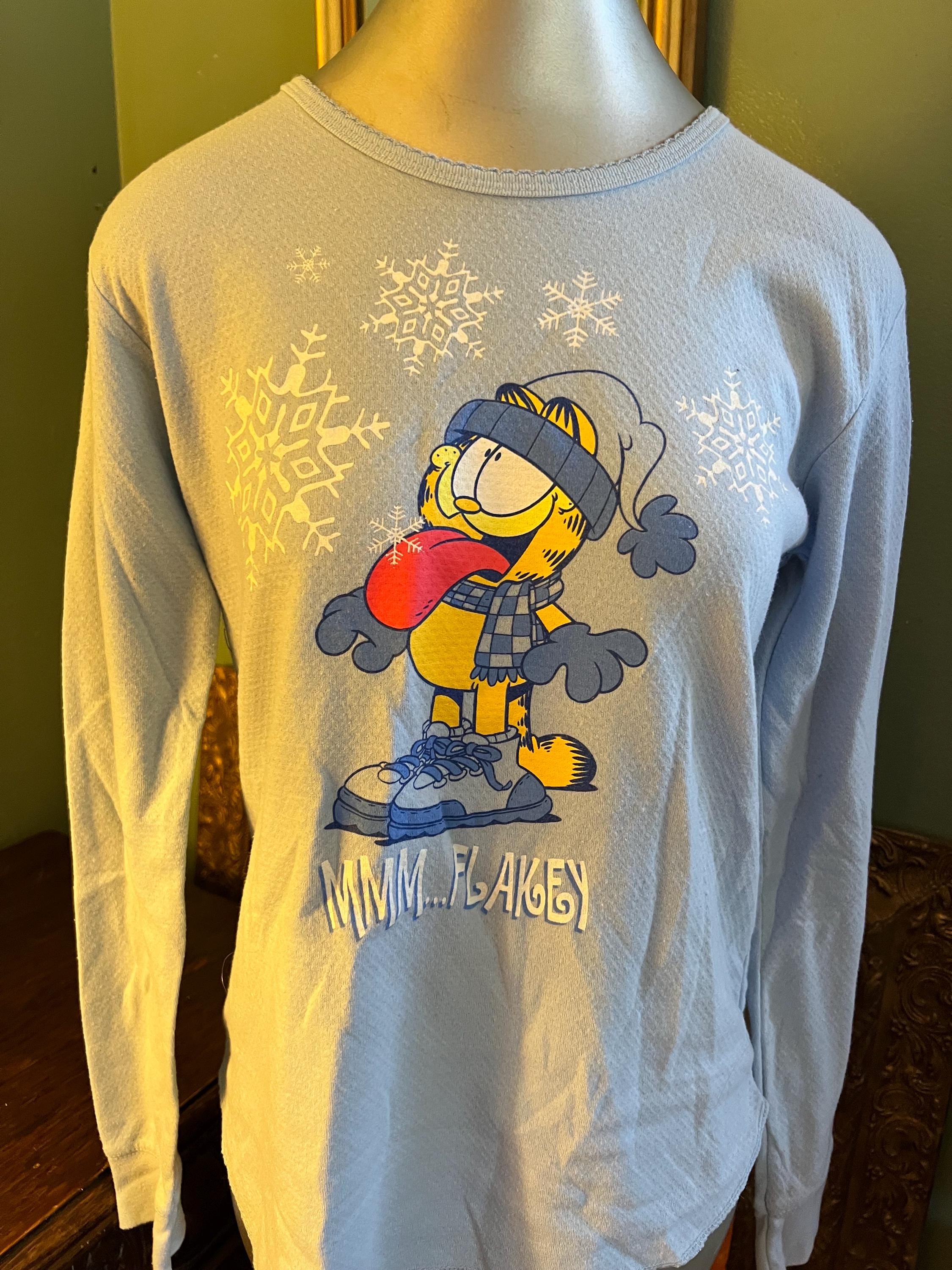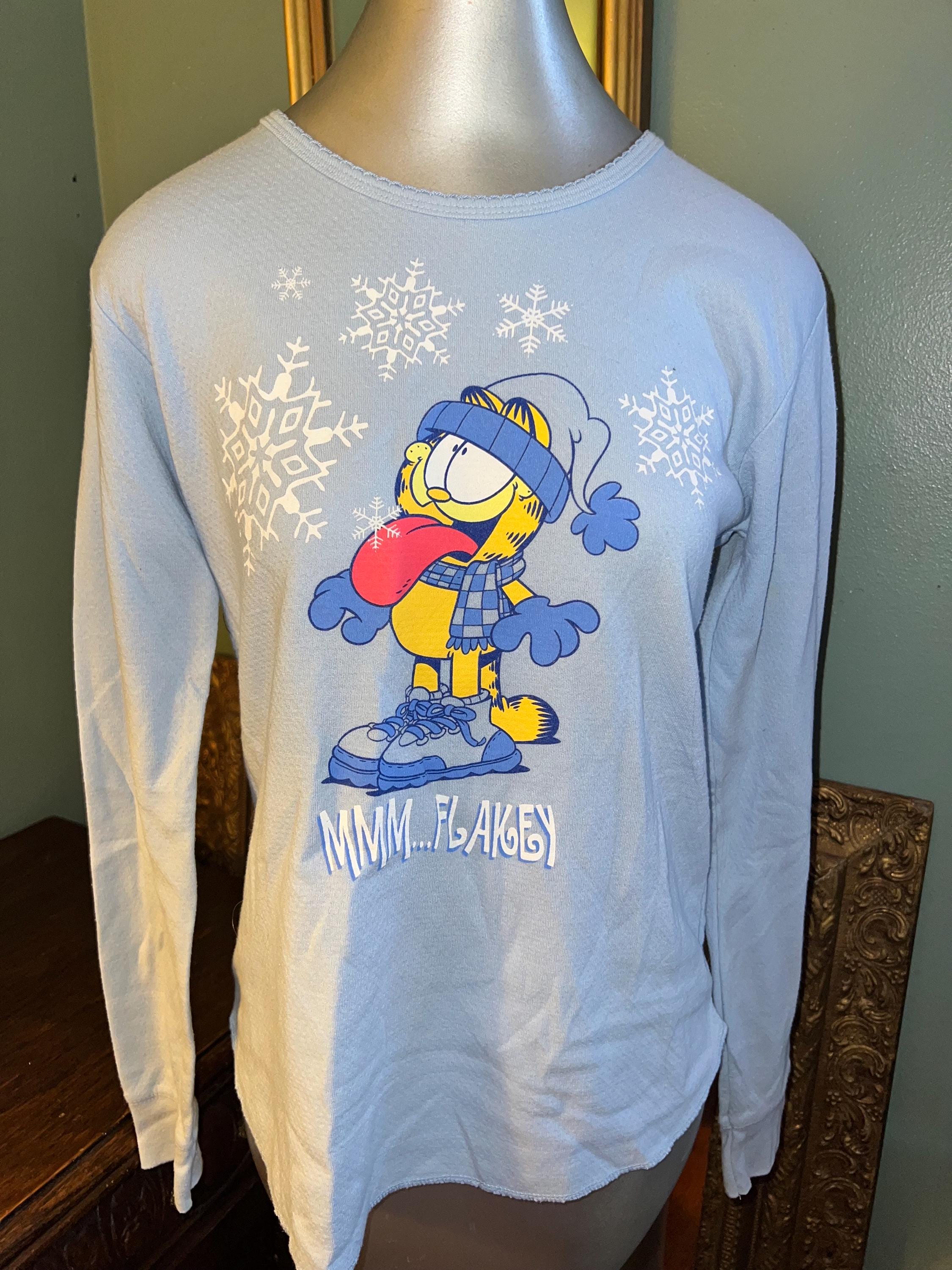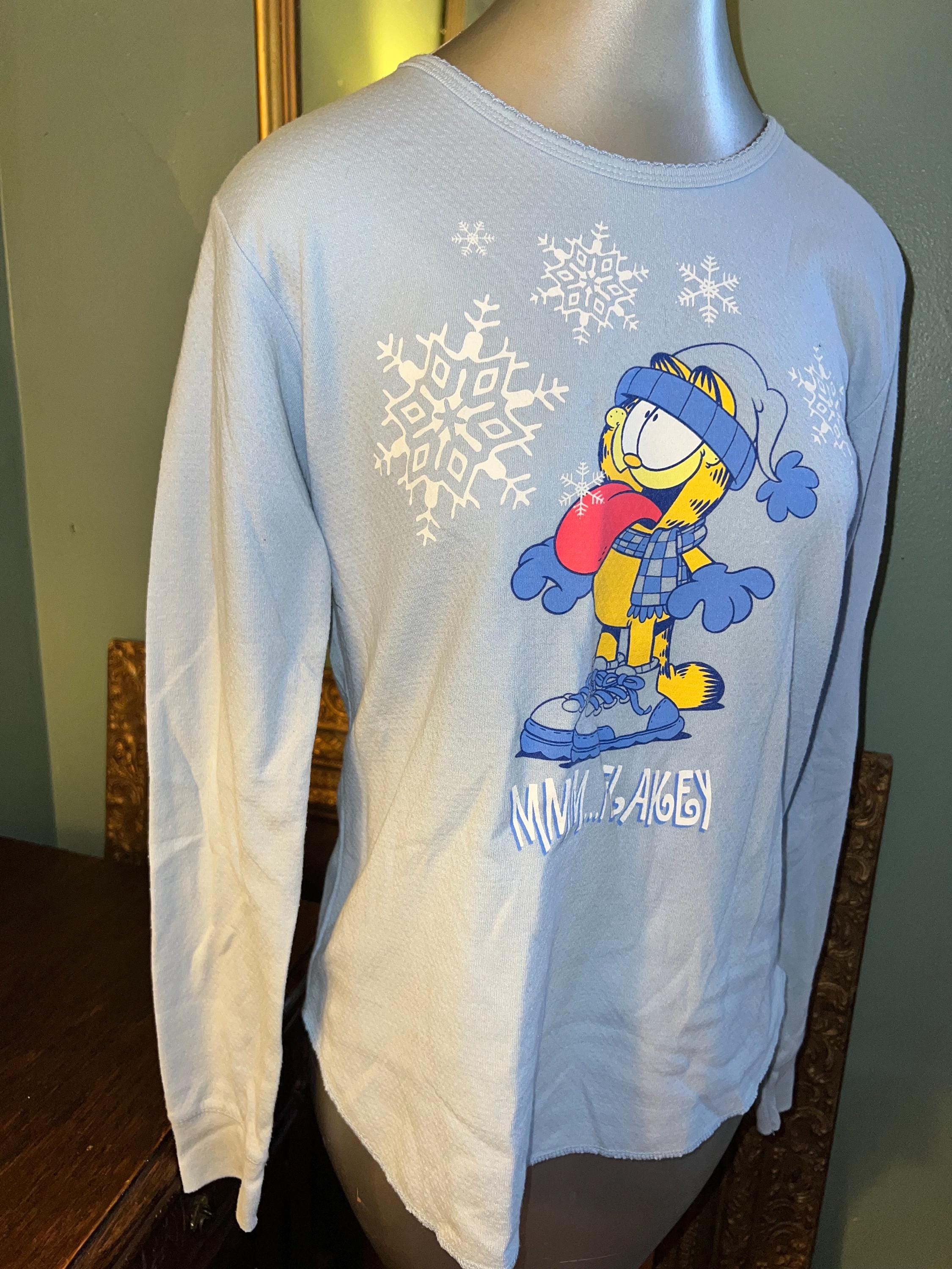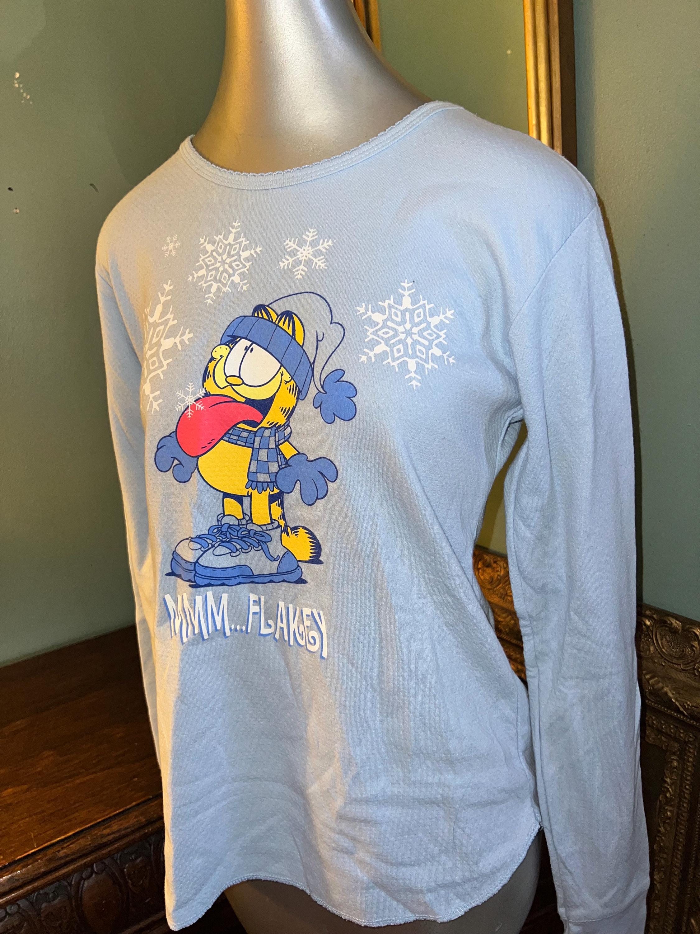 This is a nice blue Garfield thern shirt! It might have once been a part of two piece pajama set or it’s just a thermal shirt. Rithdr way, It’s in good vintage condition and is super soft on the inside.