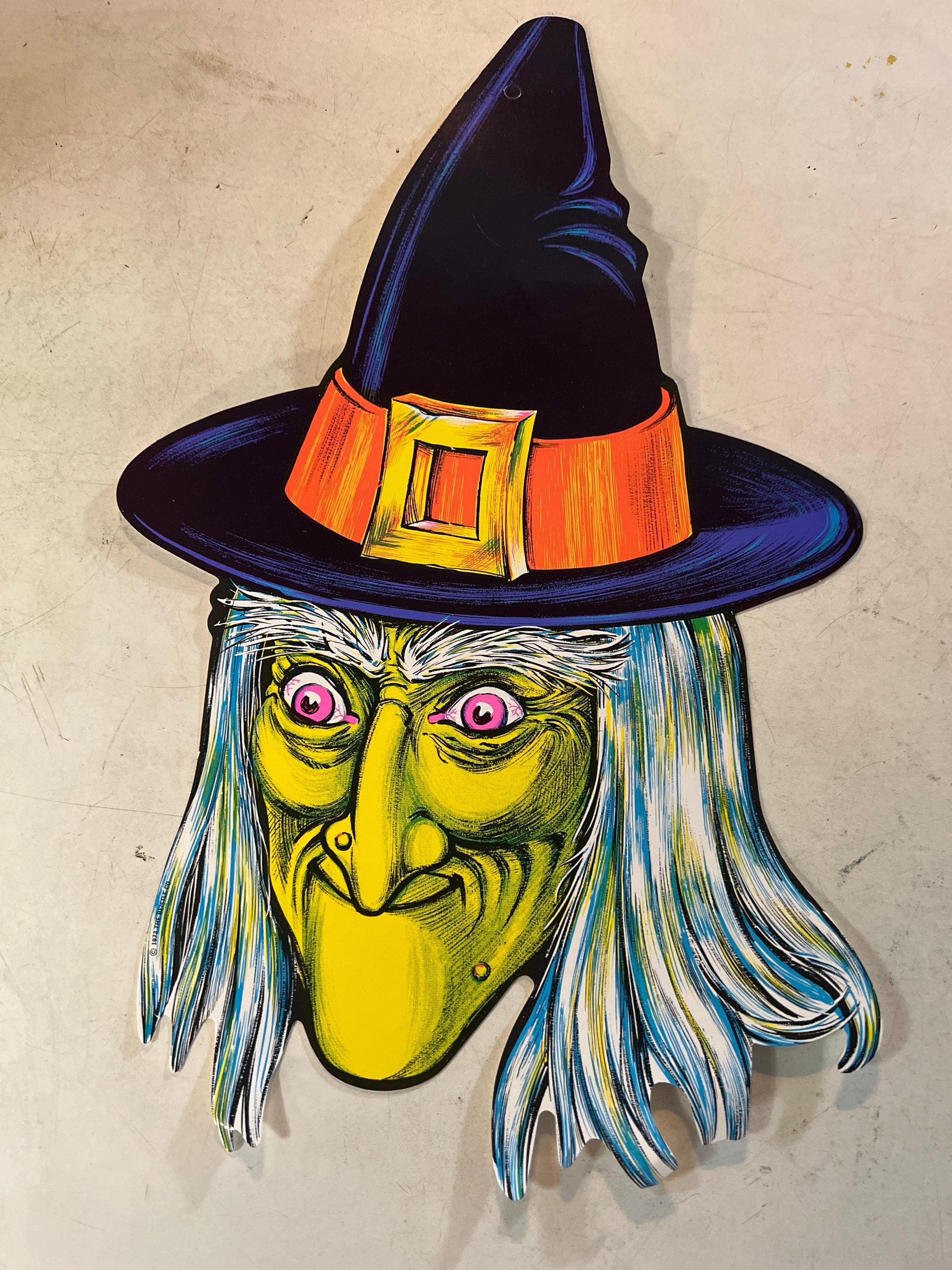 This listing is for a set of 7 small reproduction Beistle Halloween decorations. These are reproductions made in the 90’s. These are one sided so would need to be hung on a flat surface.