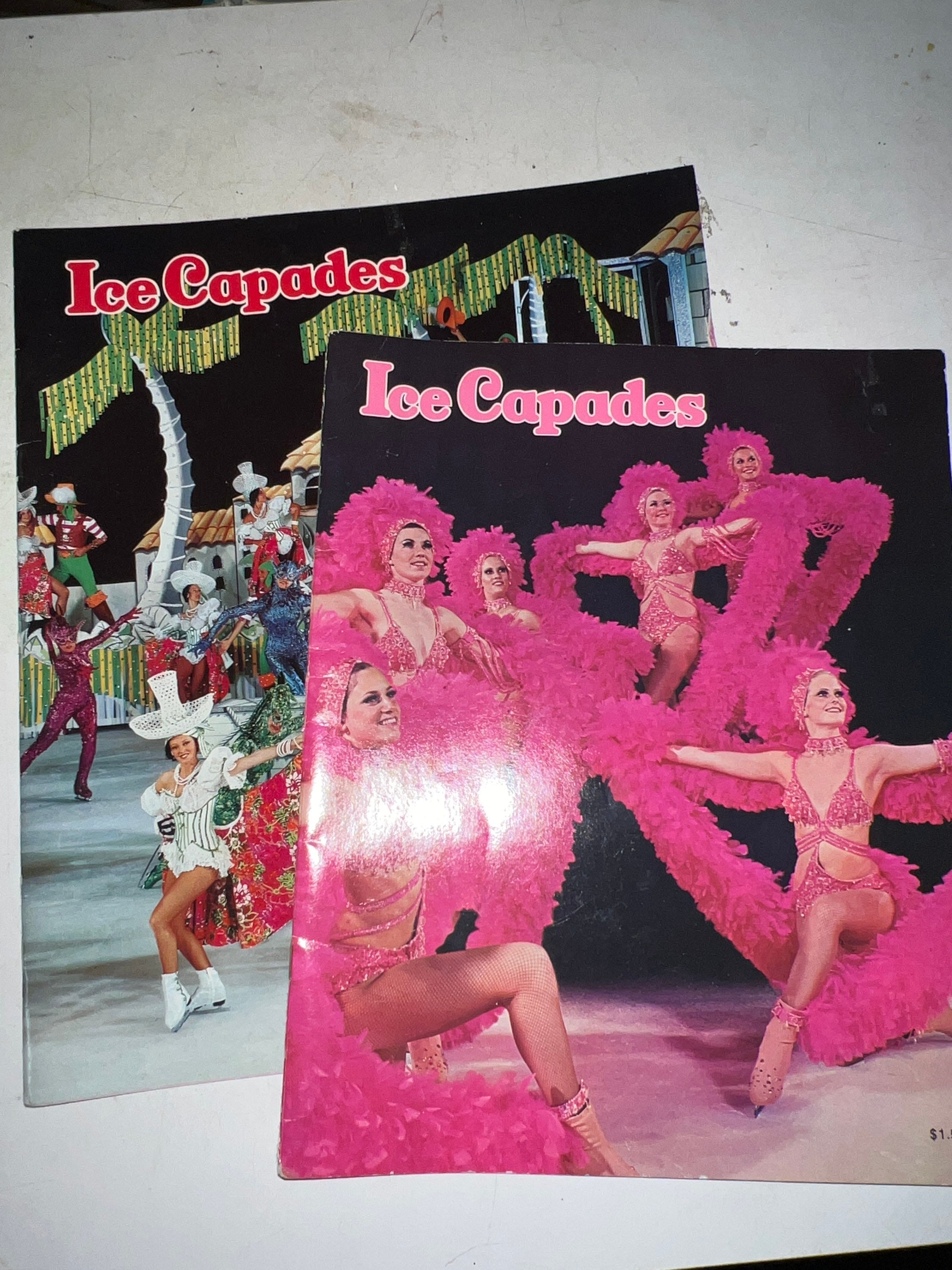 These are so neat! It’s two undated programs for the Ice Capades. The pictures and ads are very cool. The covers show some wear and tear but they are in good vintage condition.