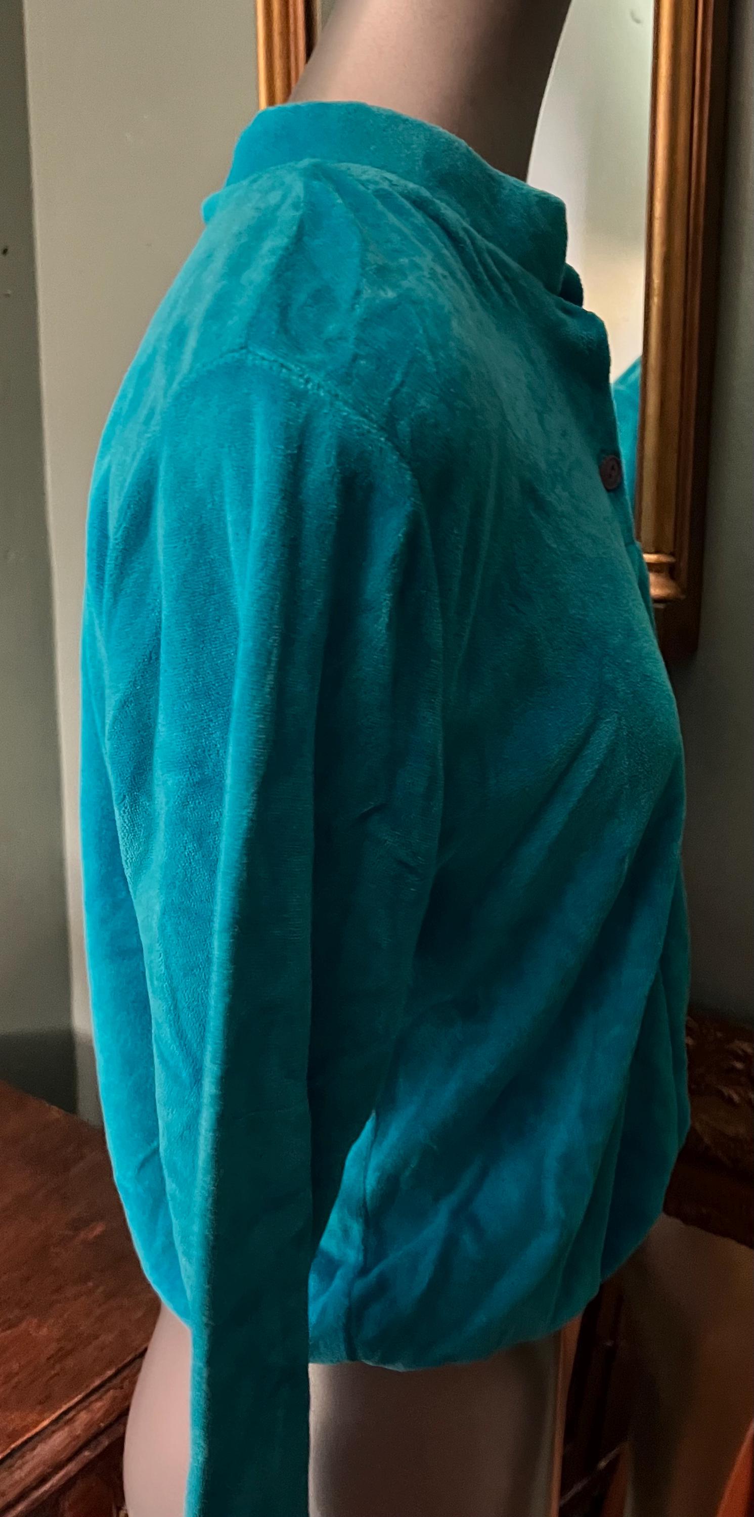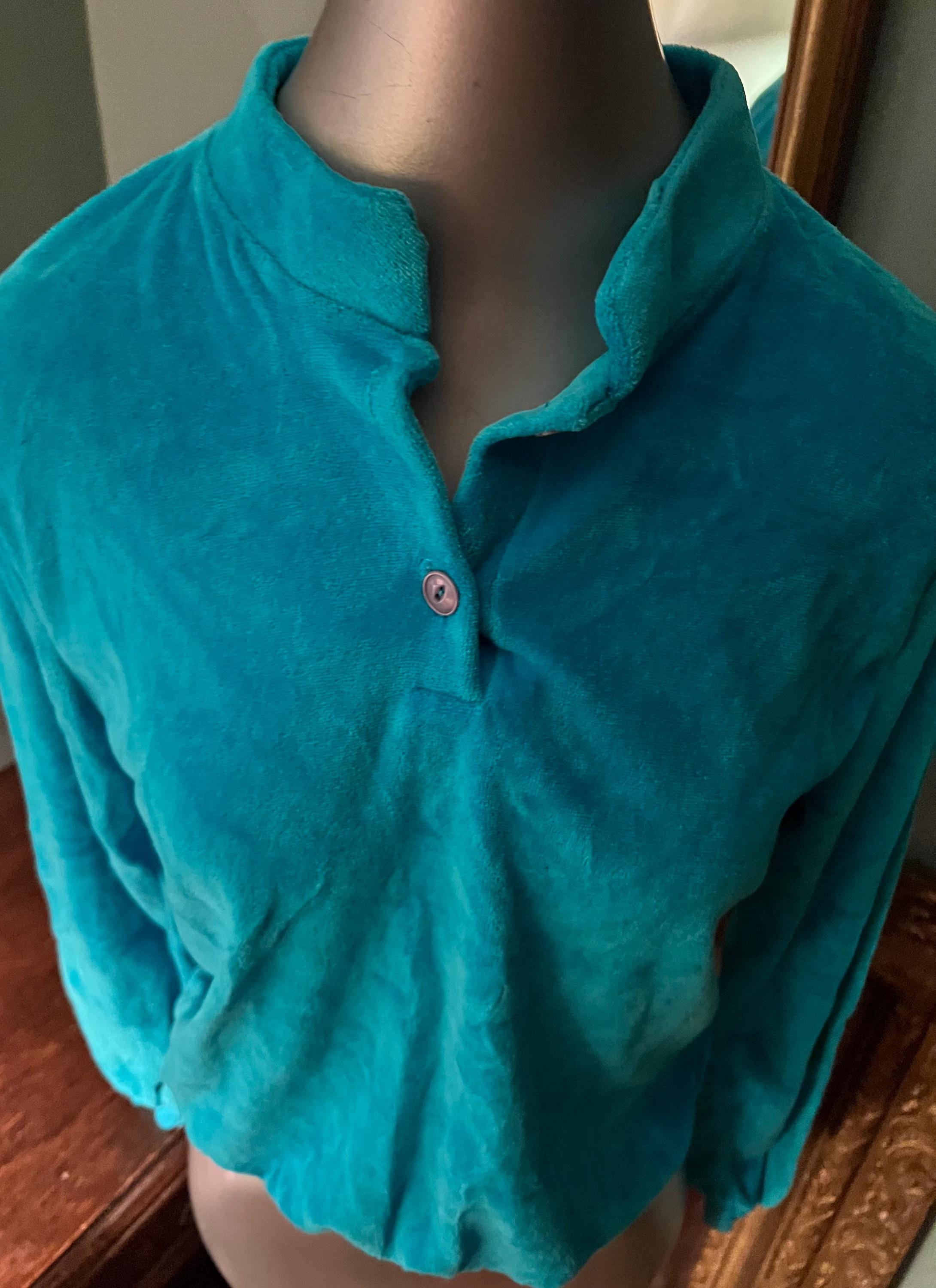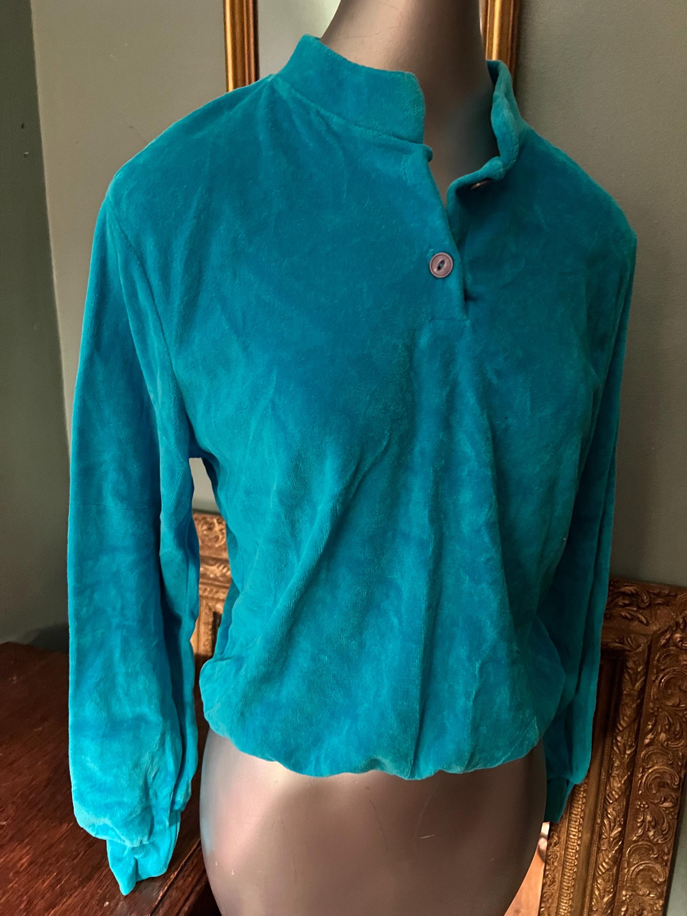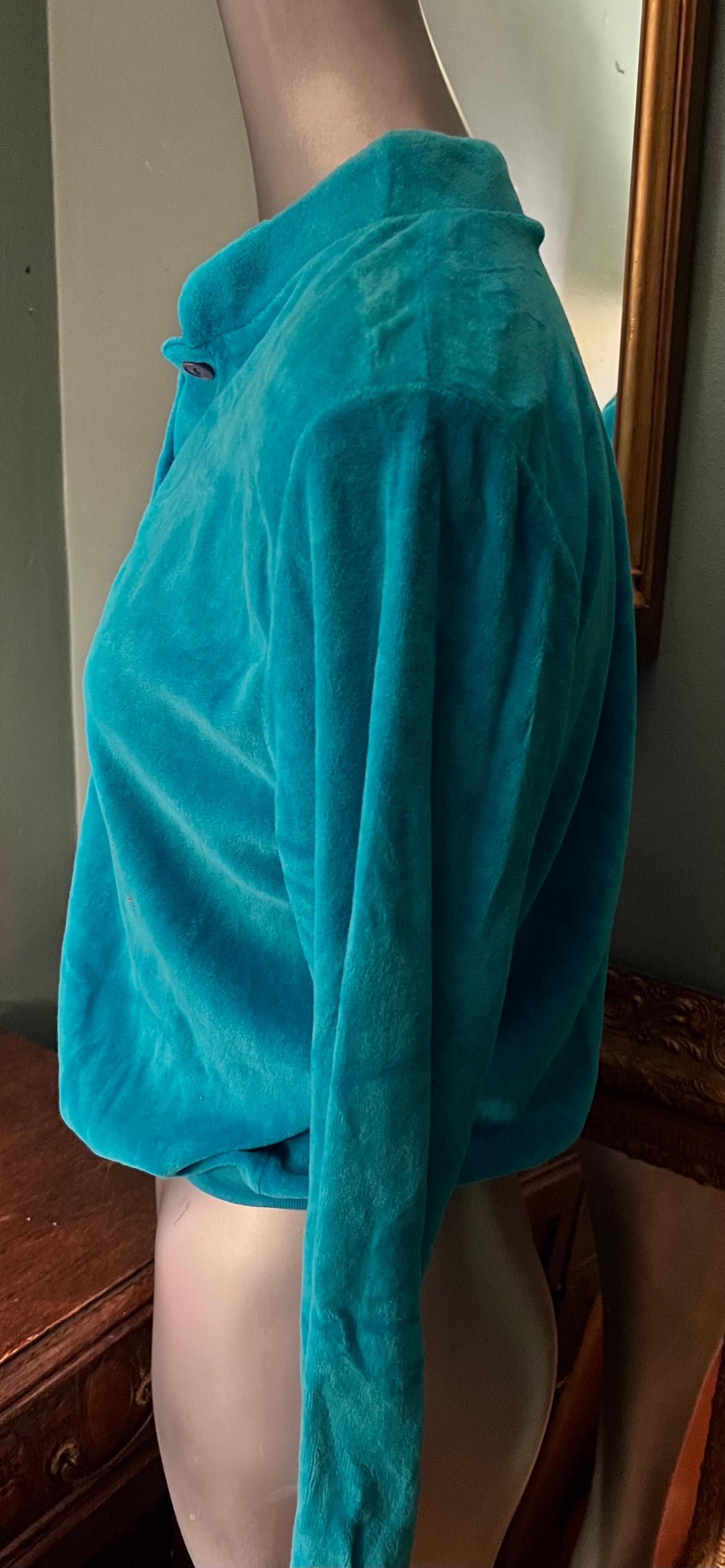 I love this 80’s turquoise velour shirt! It’s made in the US of A which is rare these days and its in good vintage condition!