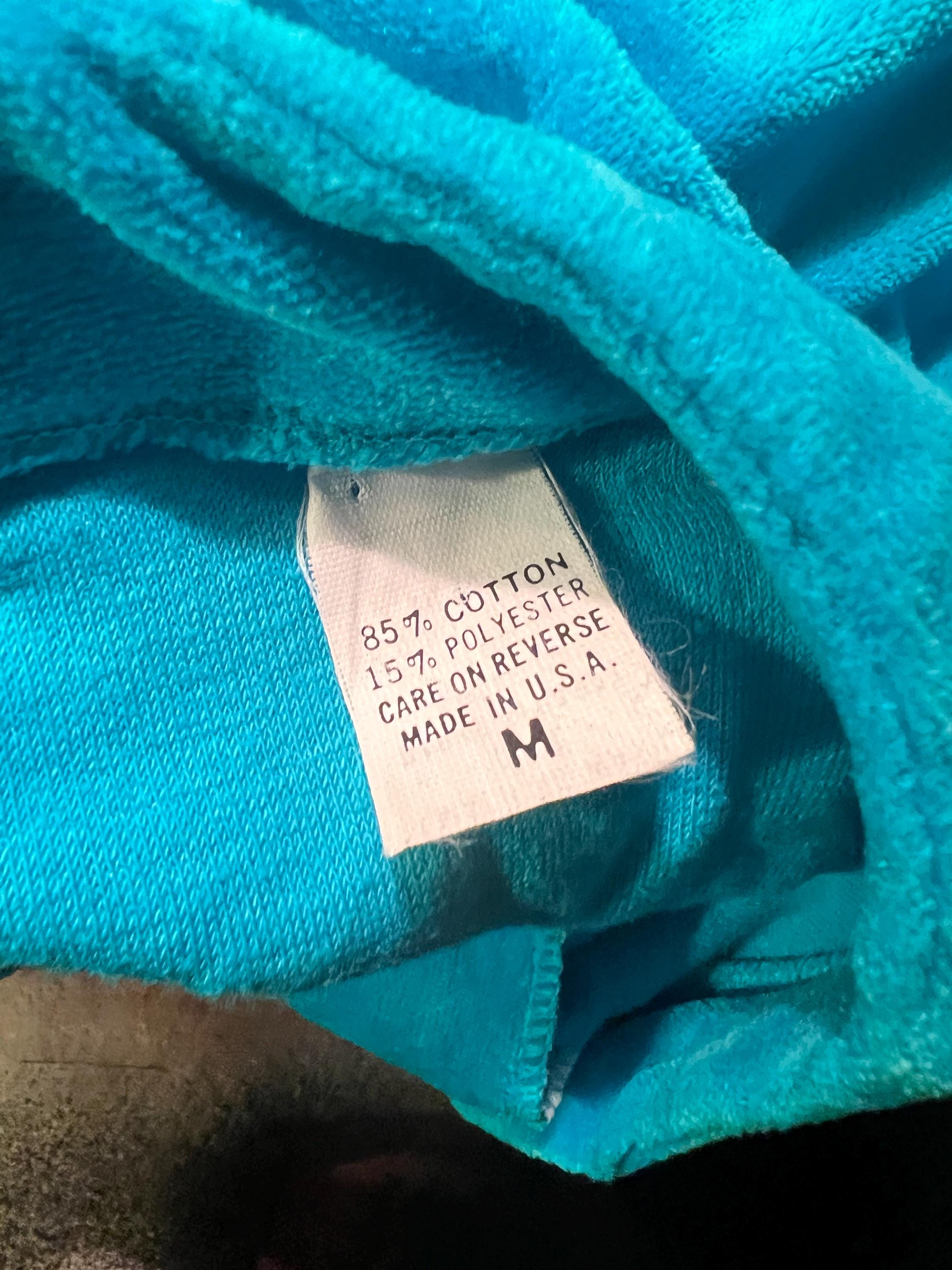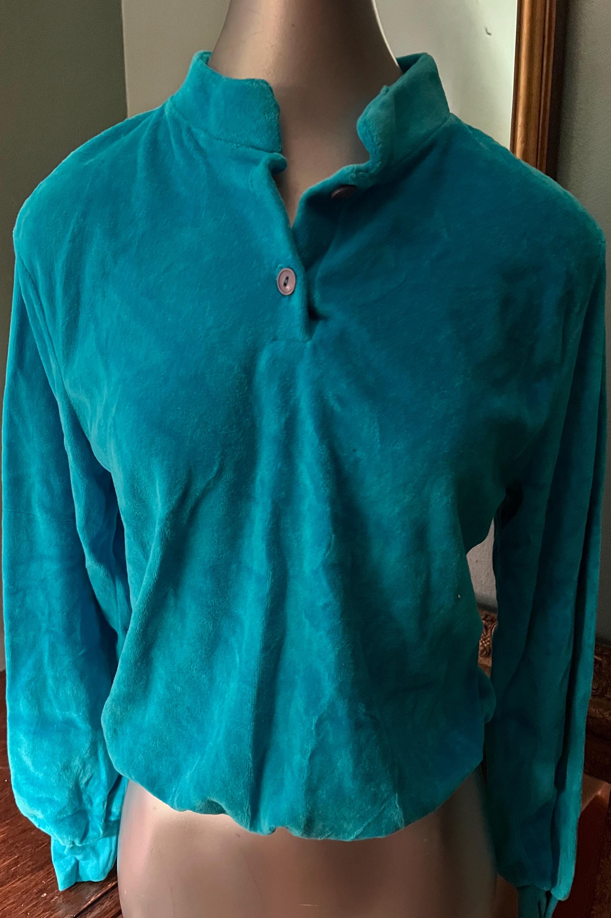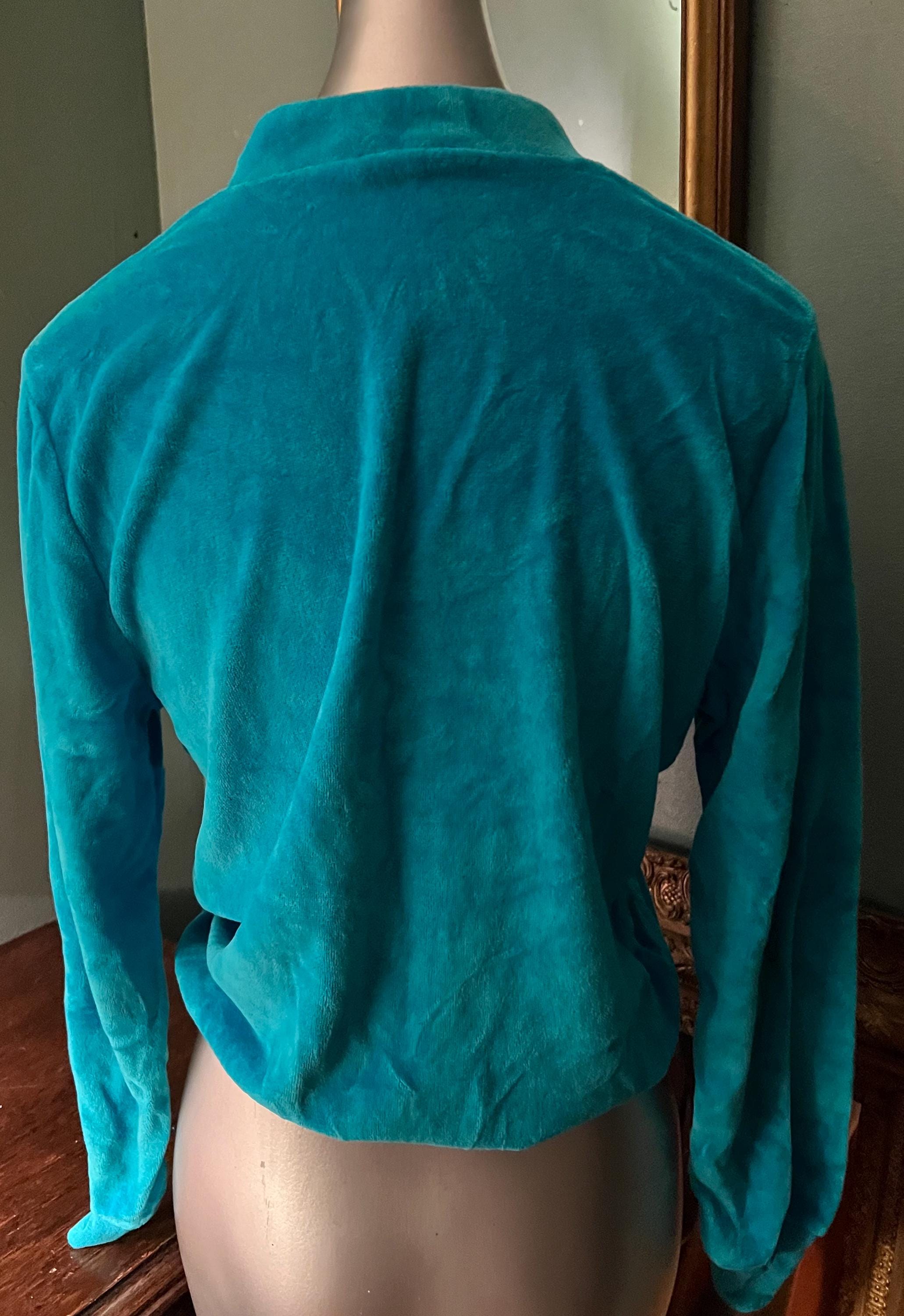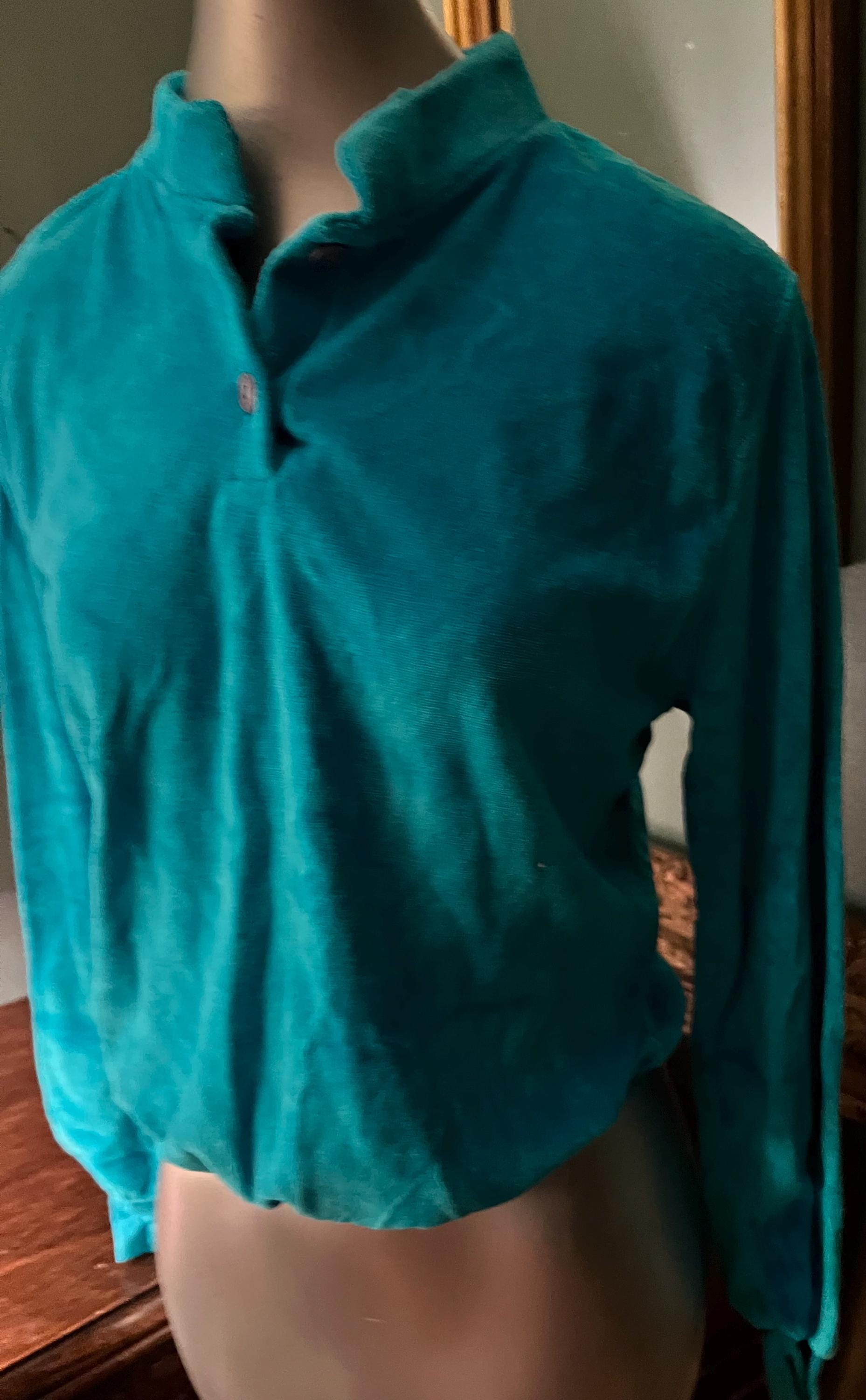 I love this 80’s turquoise velour shirt! It’s made in the US of A which is rare these days and its in good vintage condition!