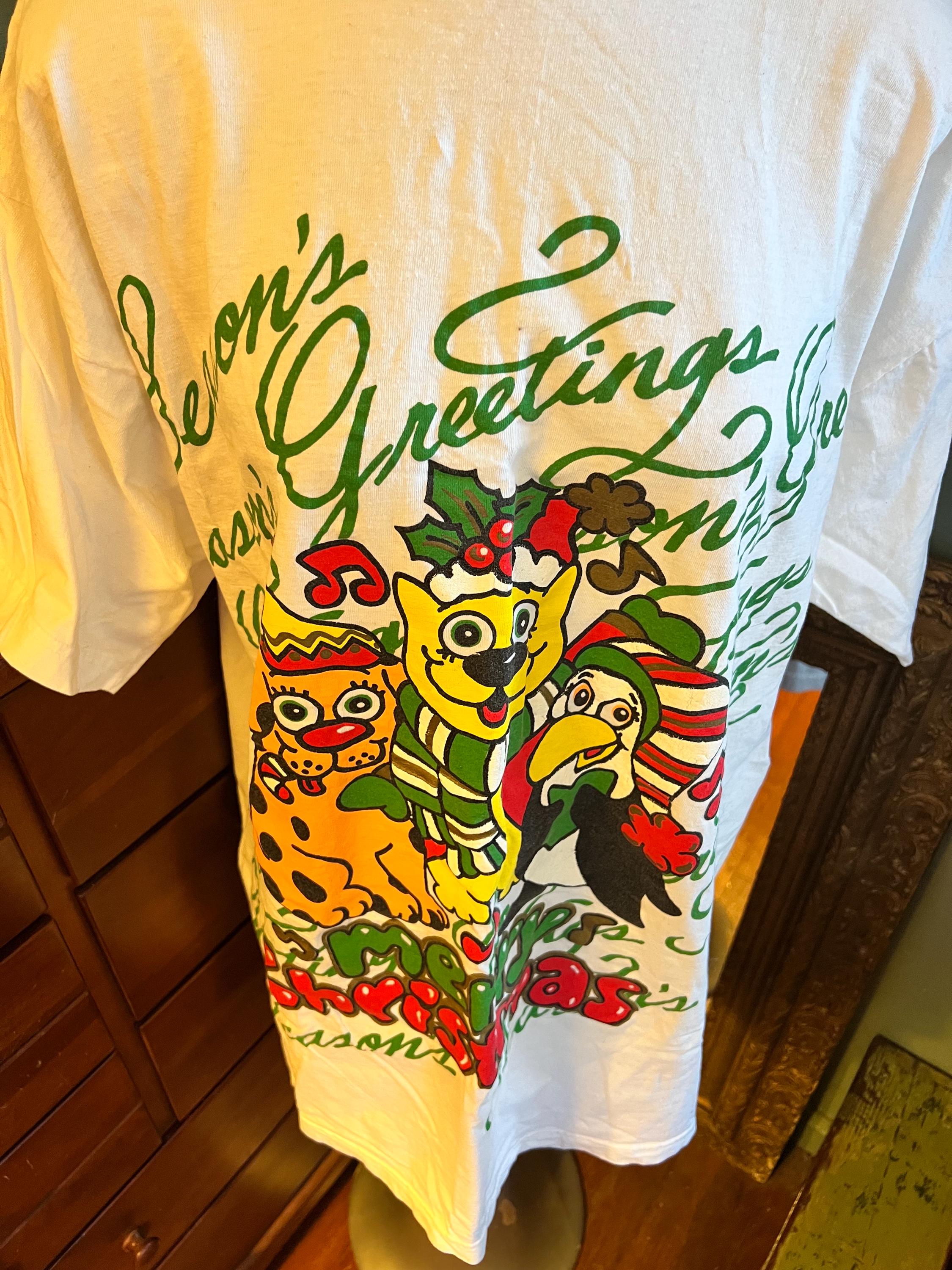 Awesome 80’s/90’s Christmas big t-shirt. It’s so cute! I’m diggin’ it. It’s in good vintage condition, I think it’s new.