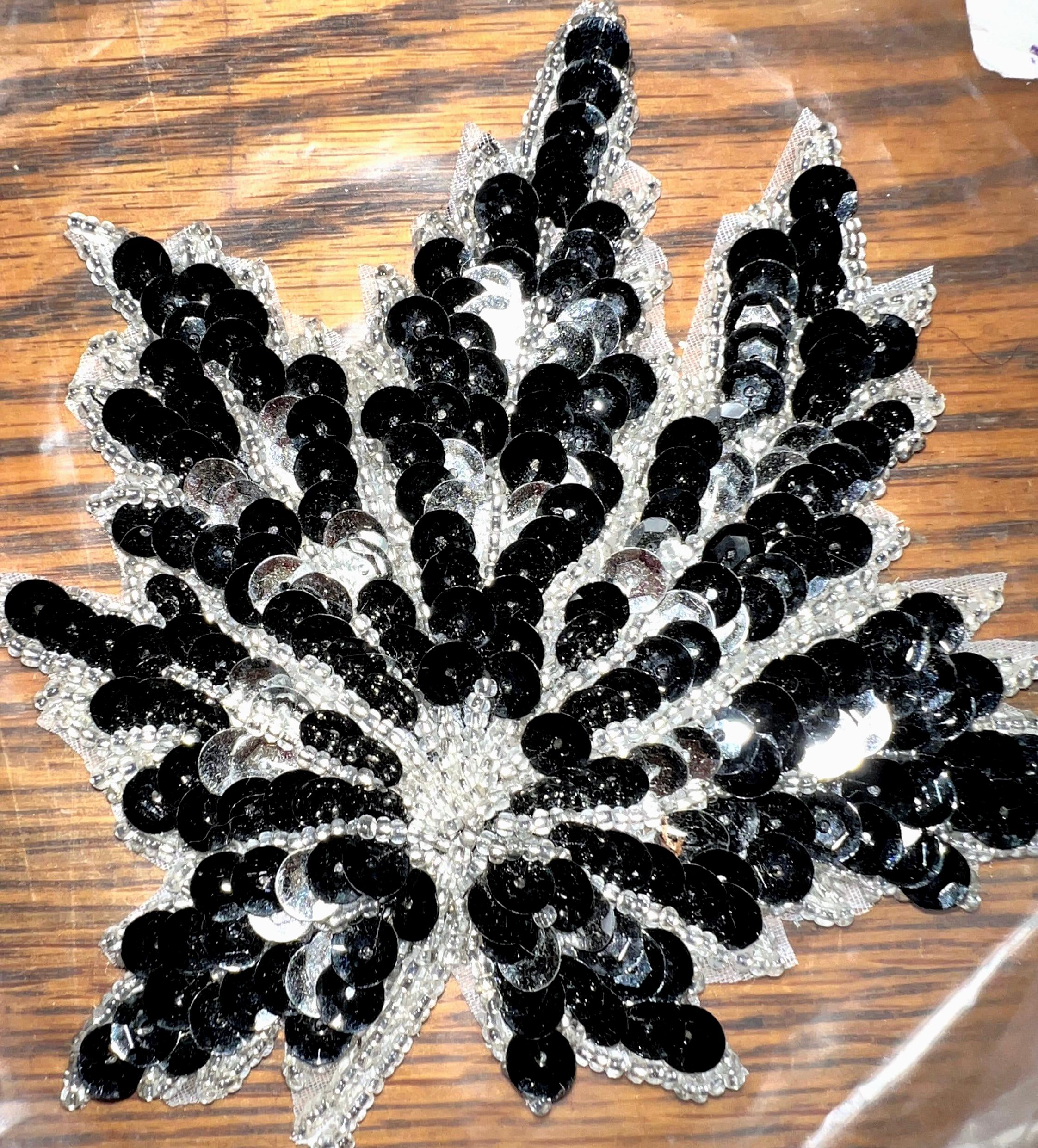 Vintage sequin black and silver leaf appliqué. It’s in good vintage condition. It is sticky and seems to be super sticky.