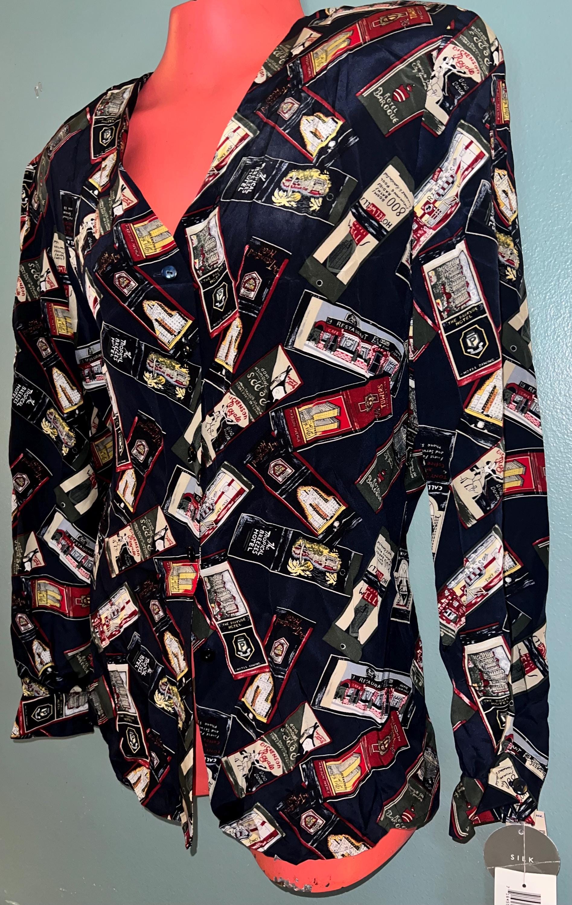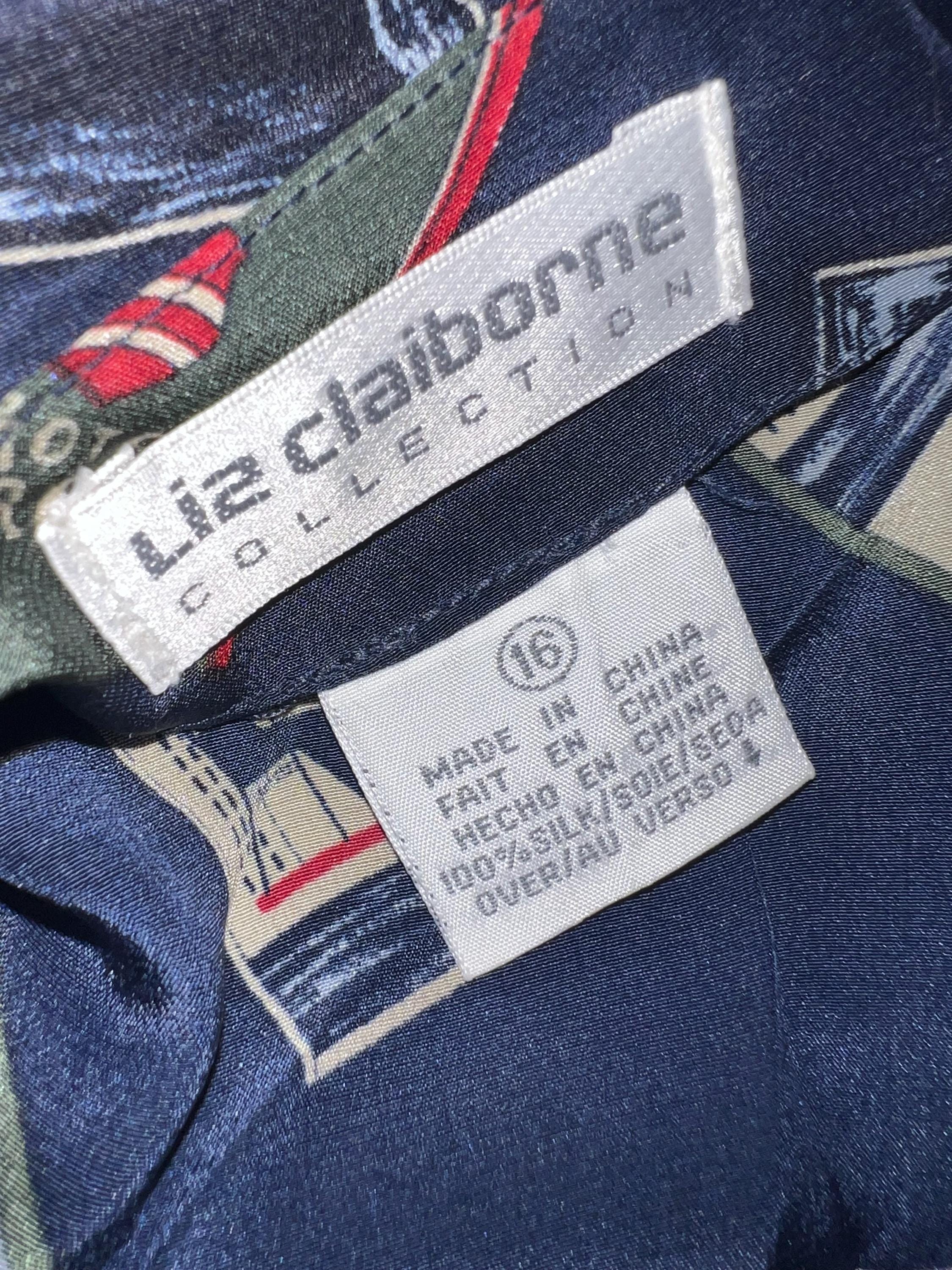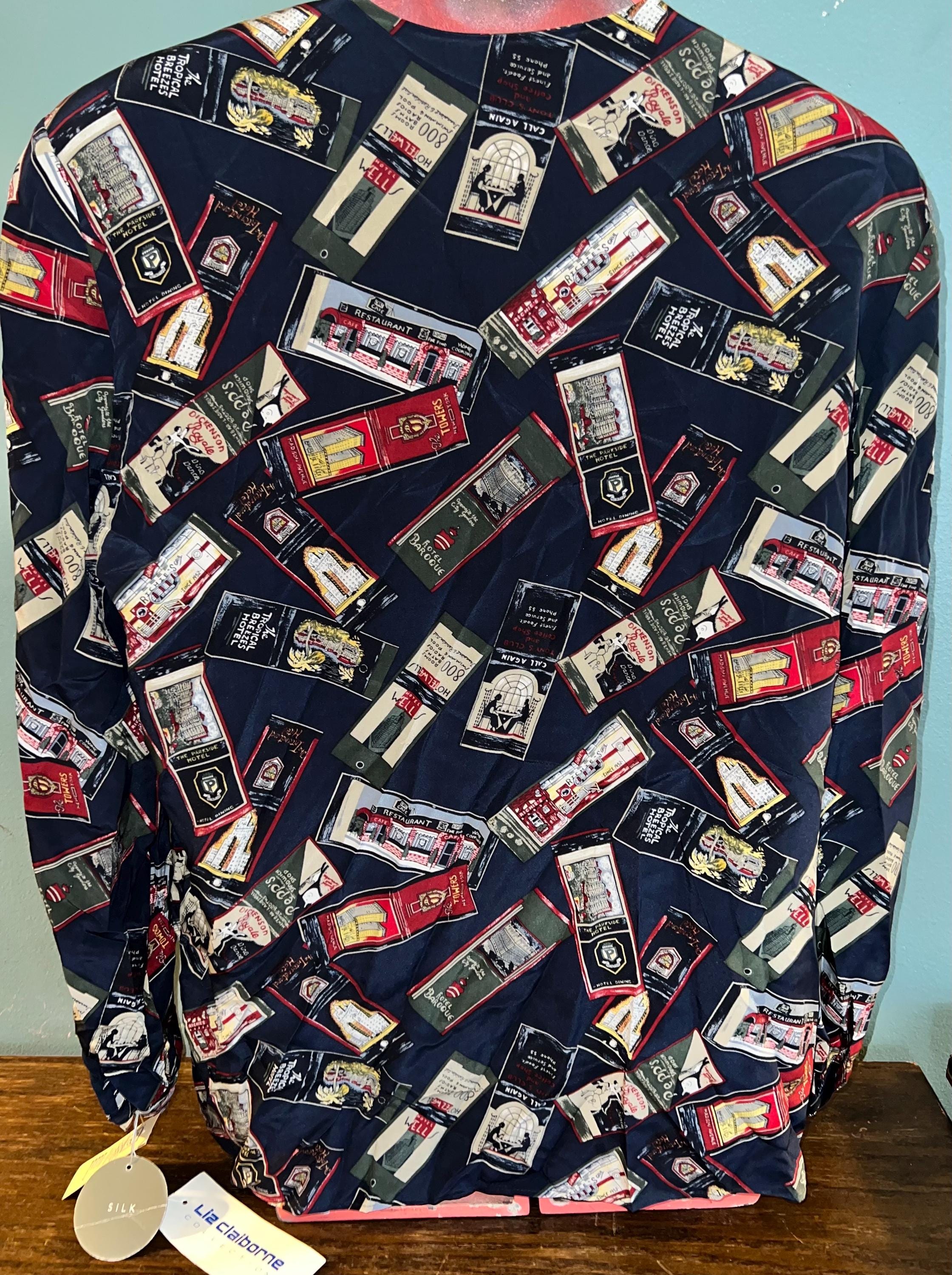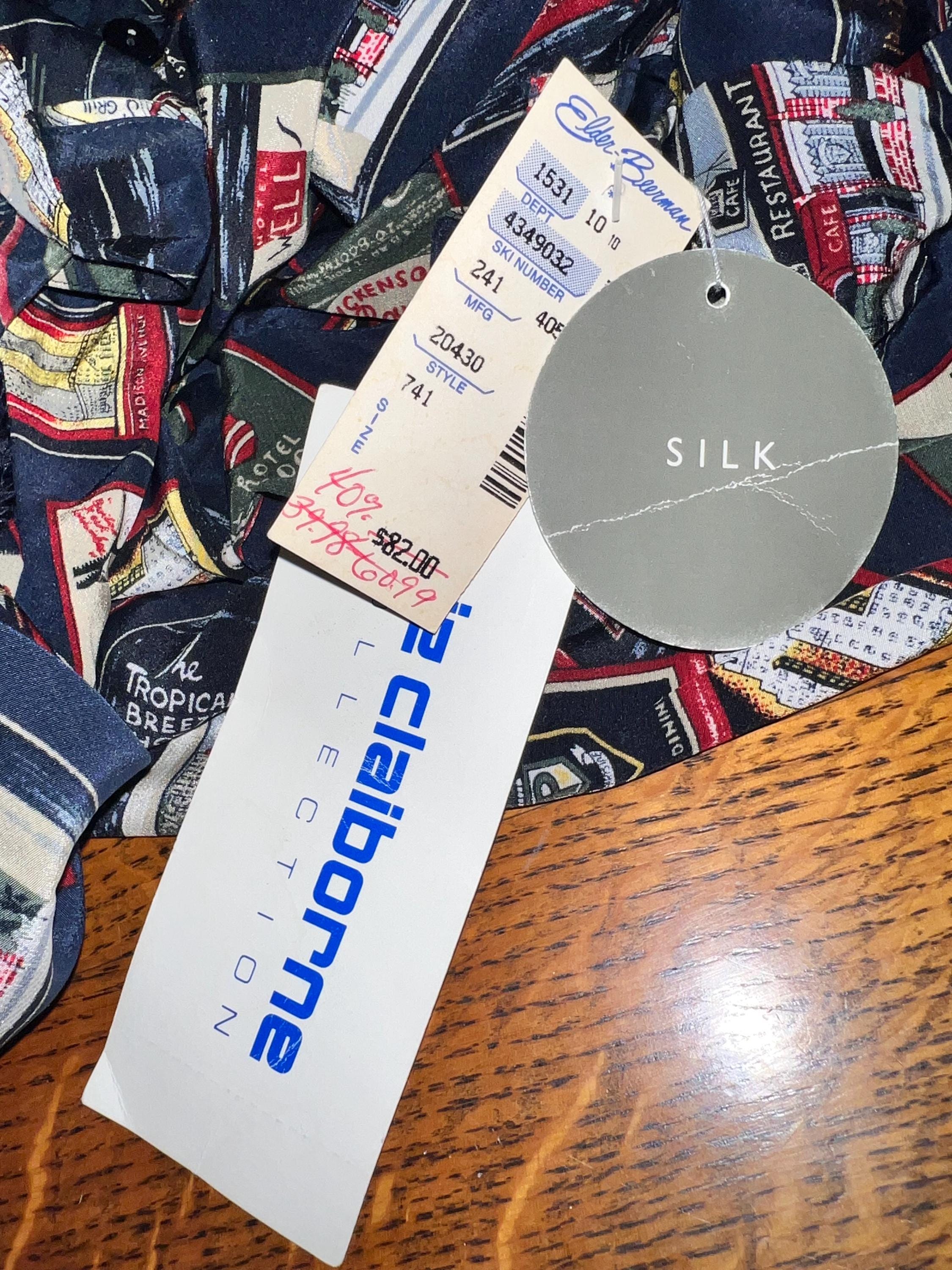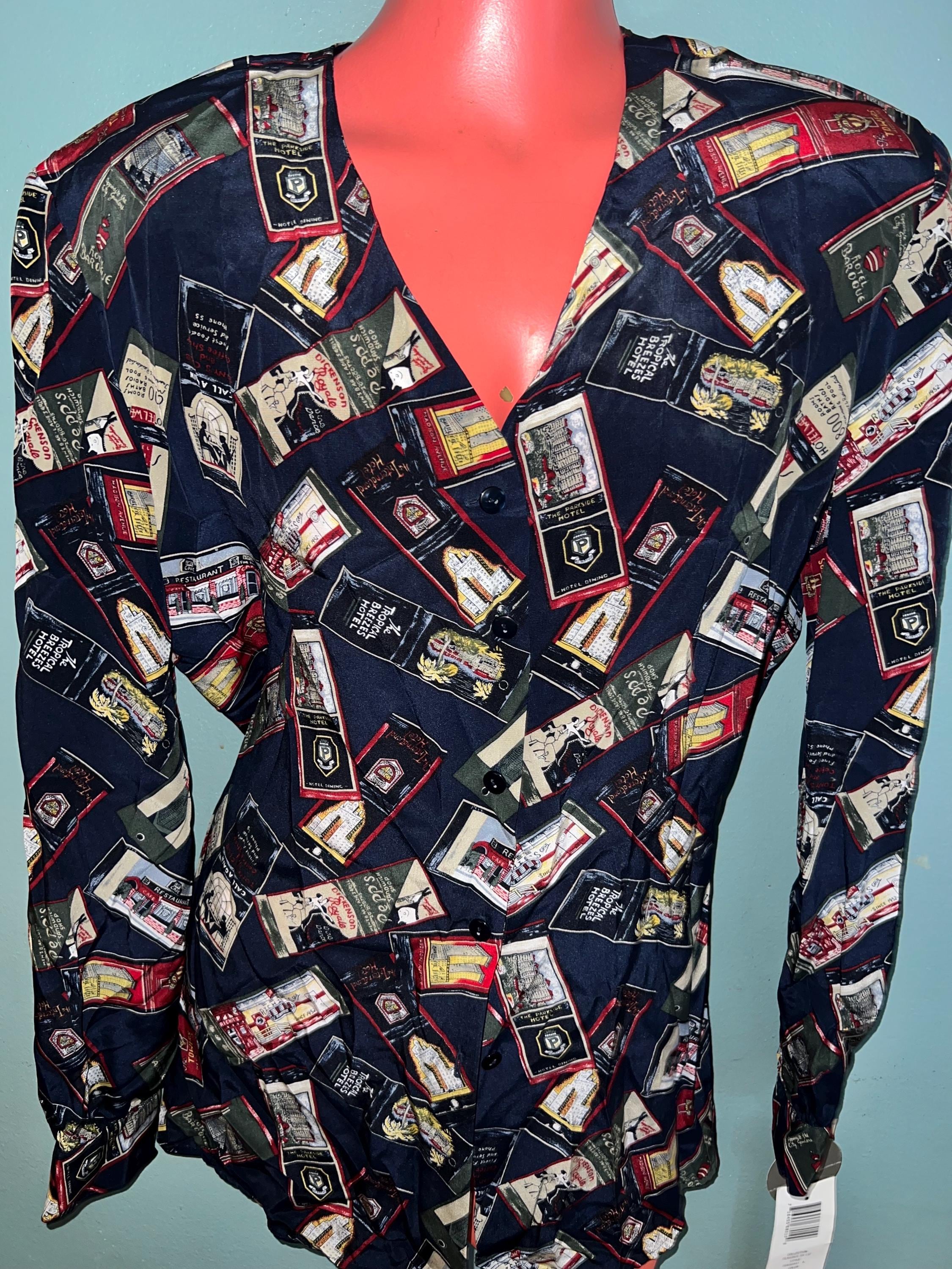 This is a cool 90’s all silk NWT blouse by Liz Claiborne. The design is is travel themed. It’s in new vintage condition.