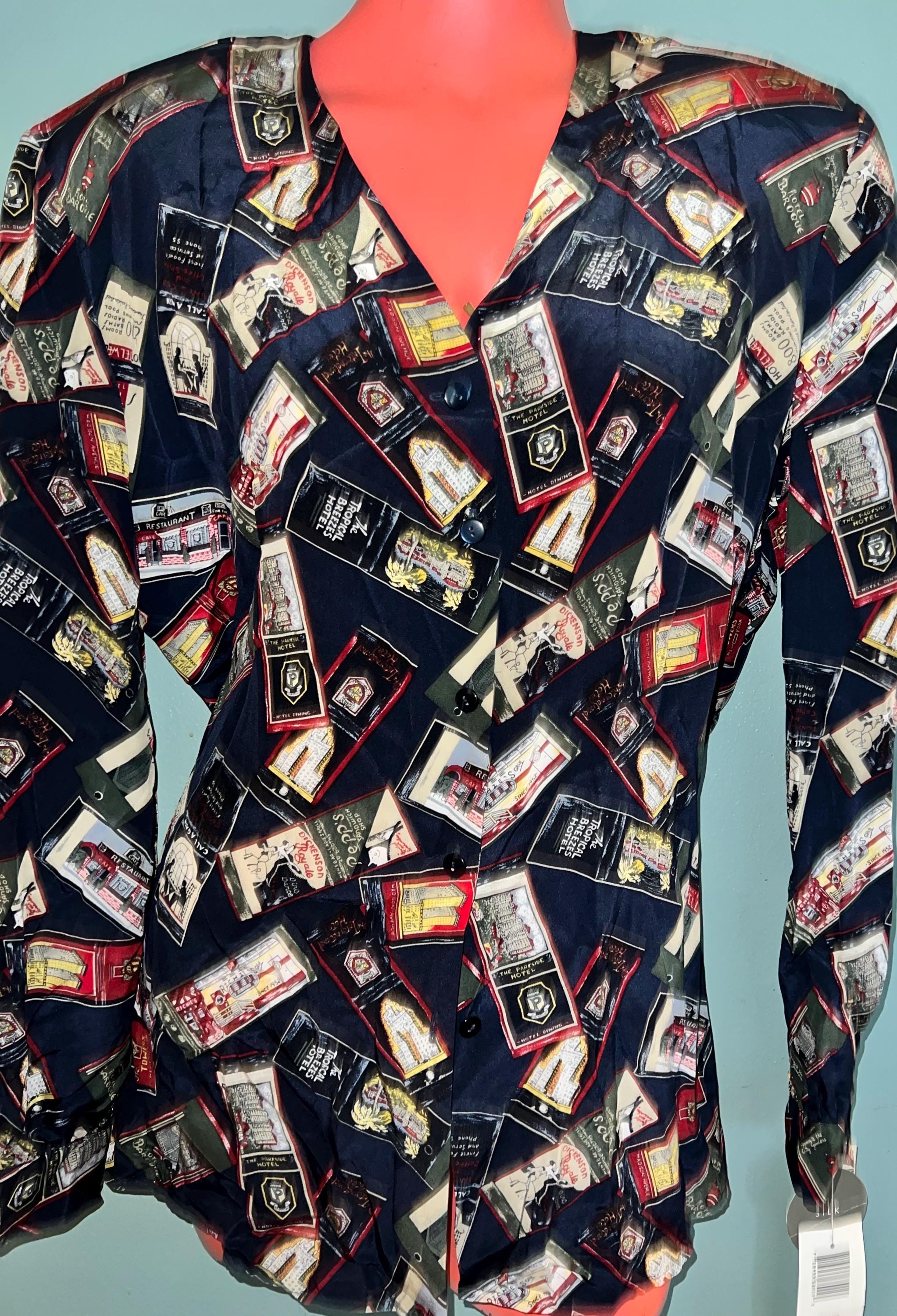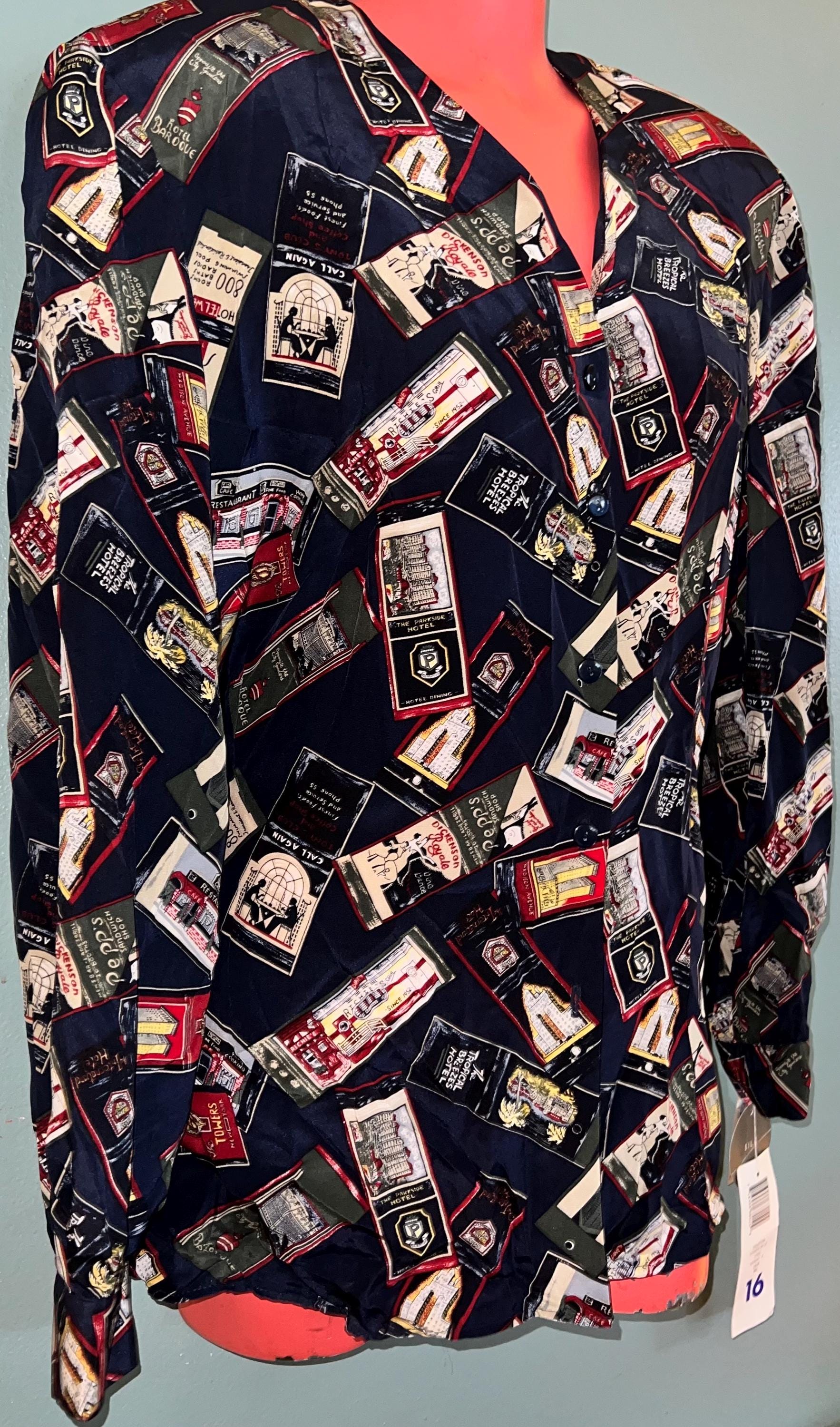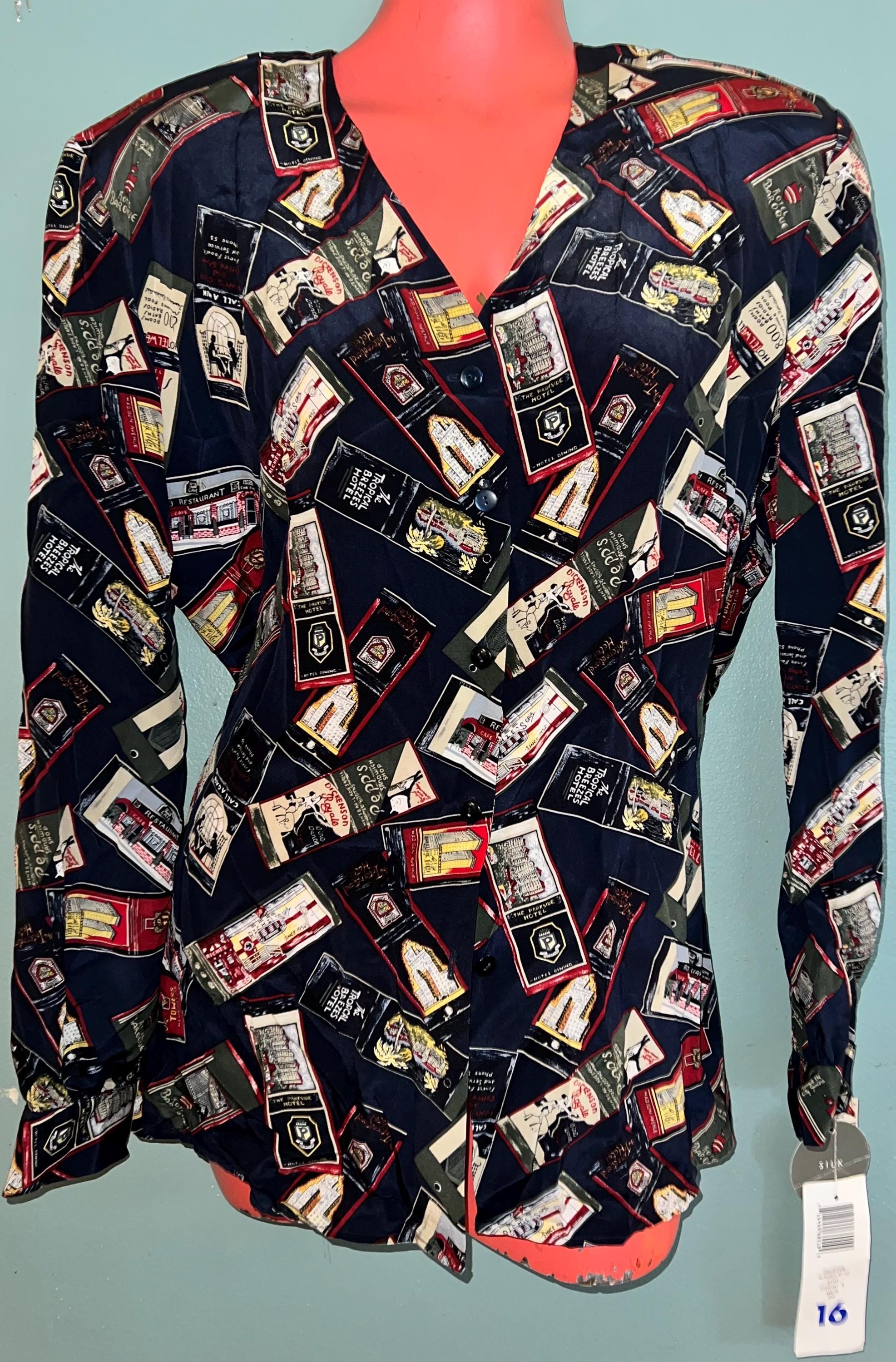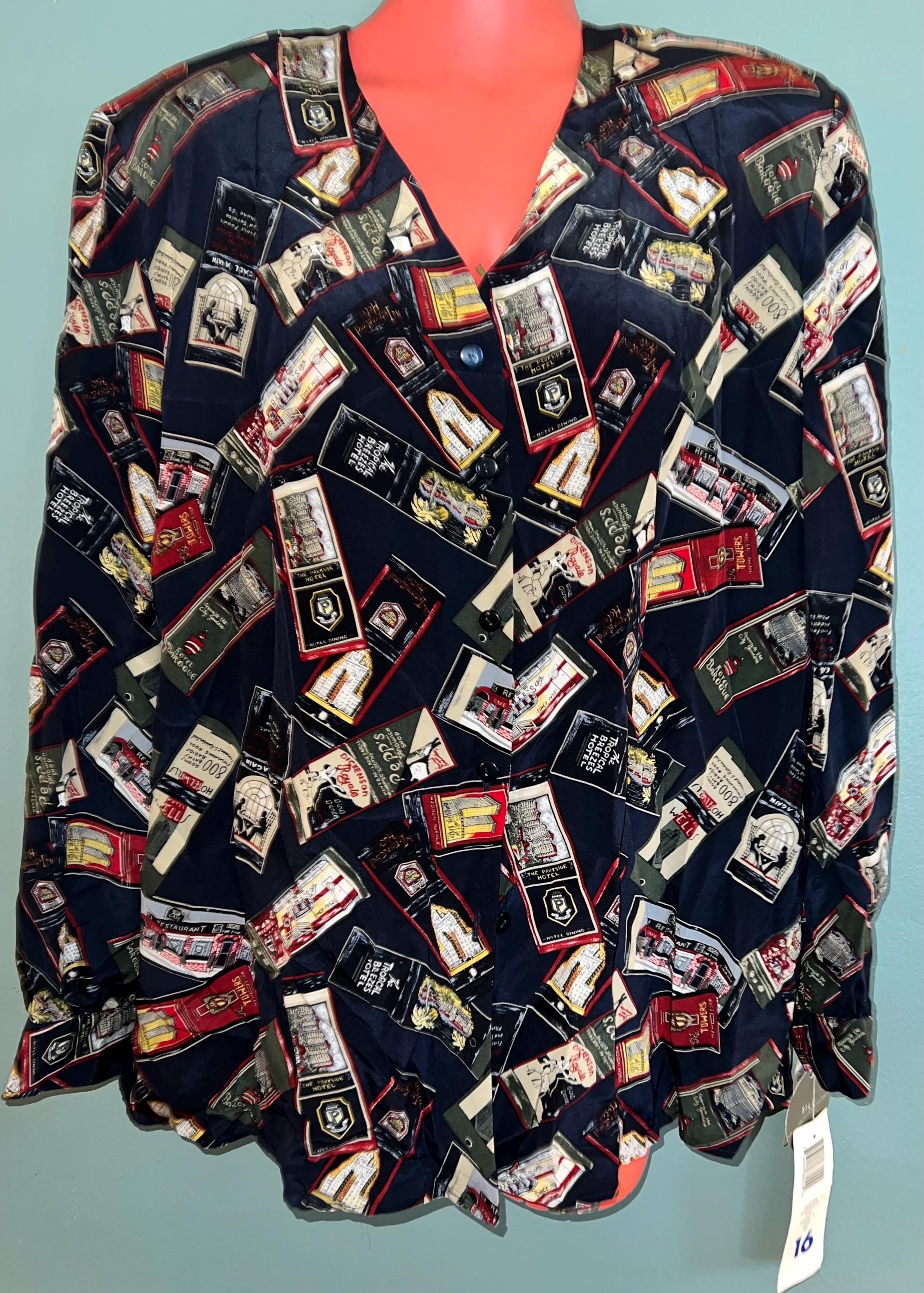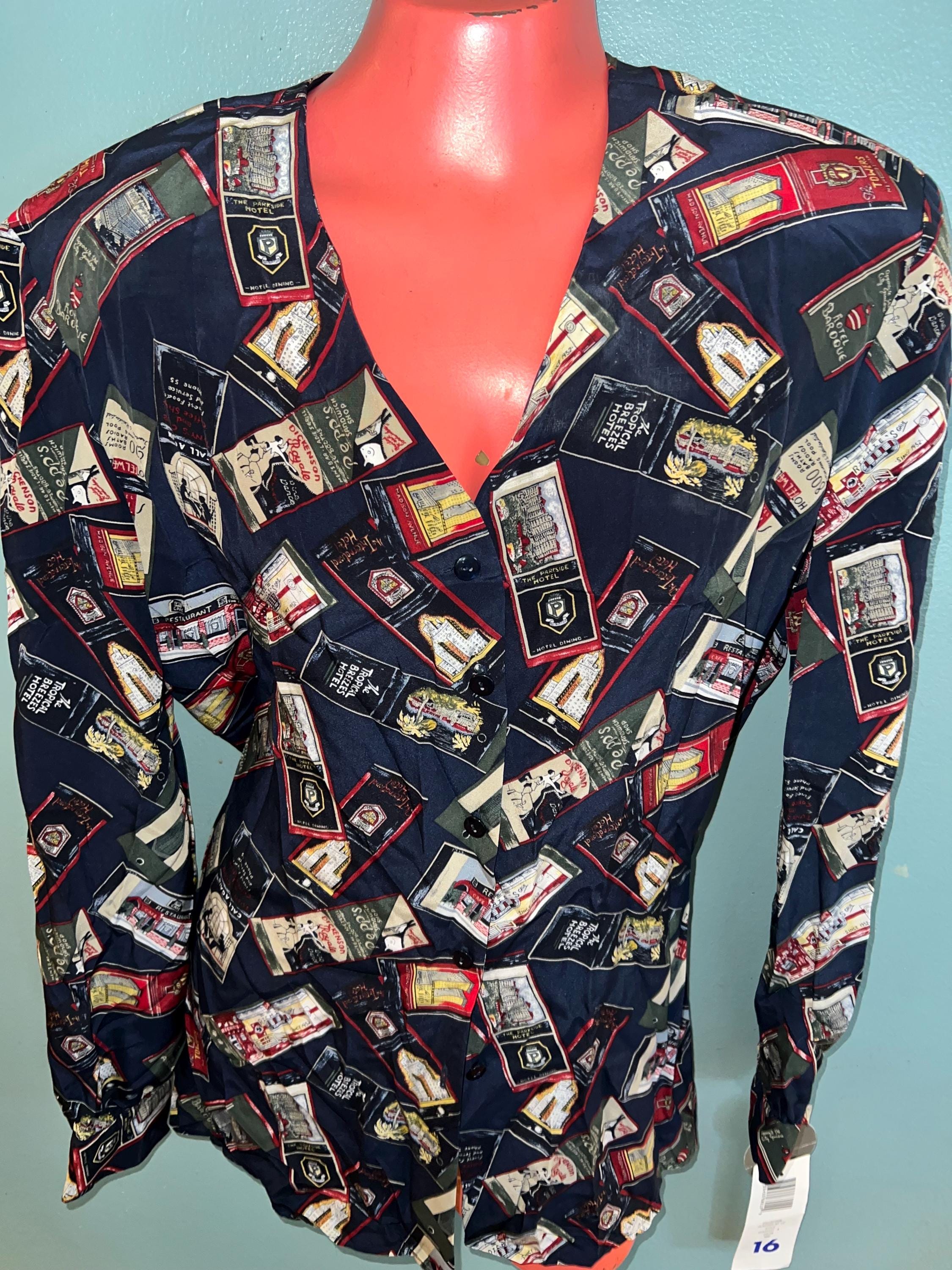 This is a cool 90’s all silk NWT blouse by Liz Claiborne. The design is is travel themed. It’s in new vintage condition.