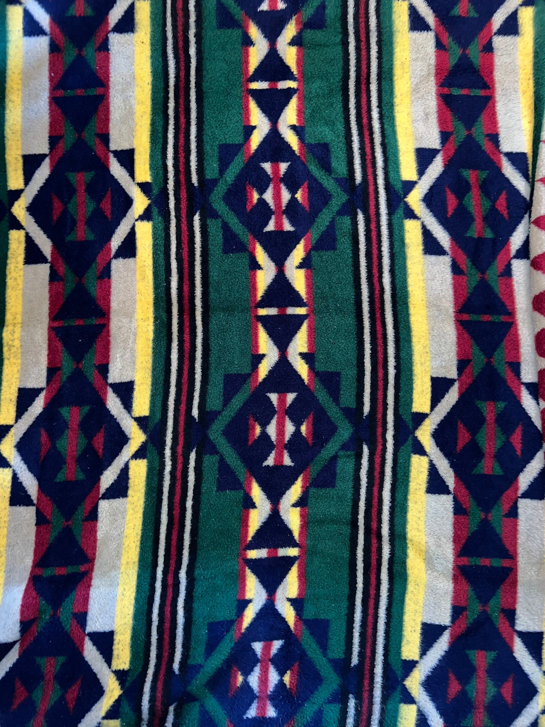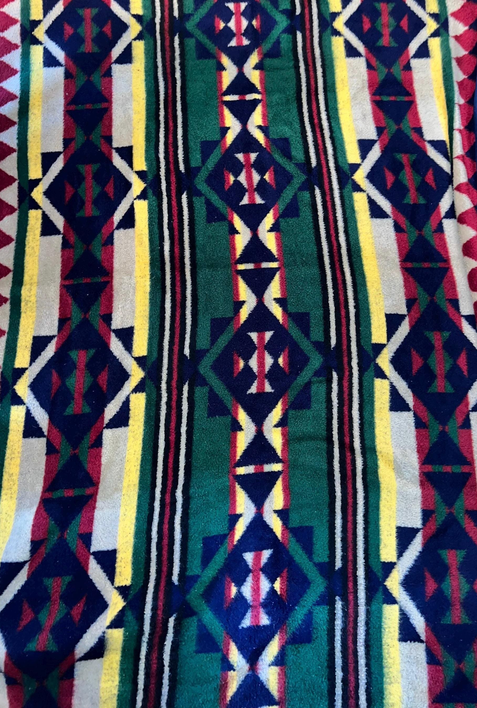 This is really great! The southwest design and gorgeous colors say “Biederlack” to me but there is no tag on this blanket. it’s in good vintage condition but does have a well loved look to it, as far as I’ve seen no, tears, or holes.