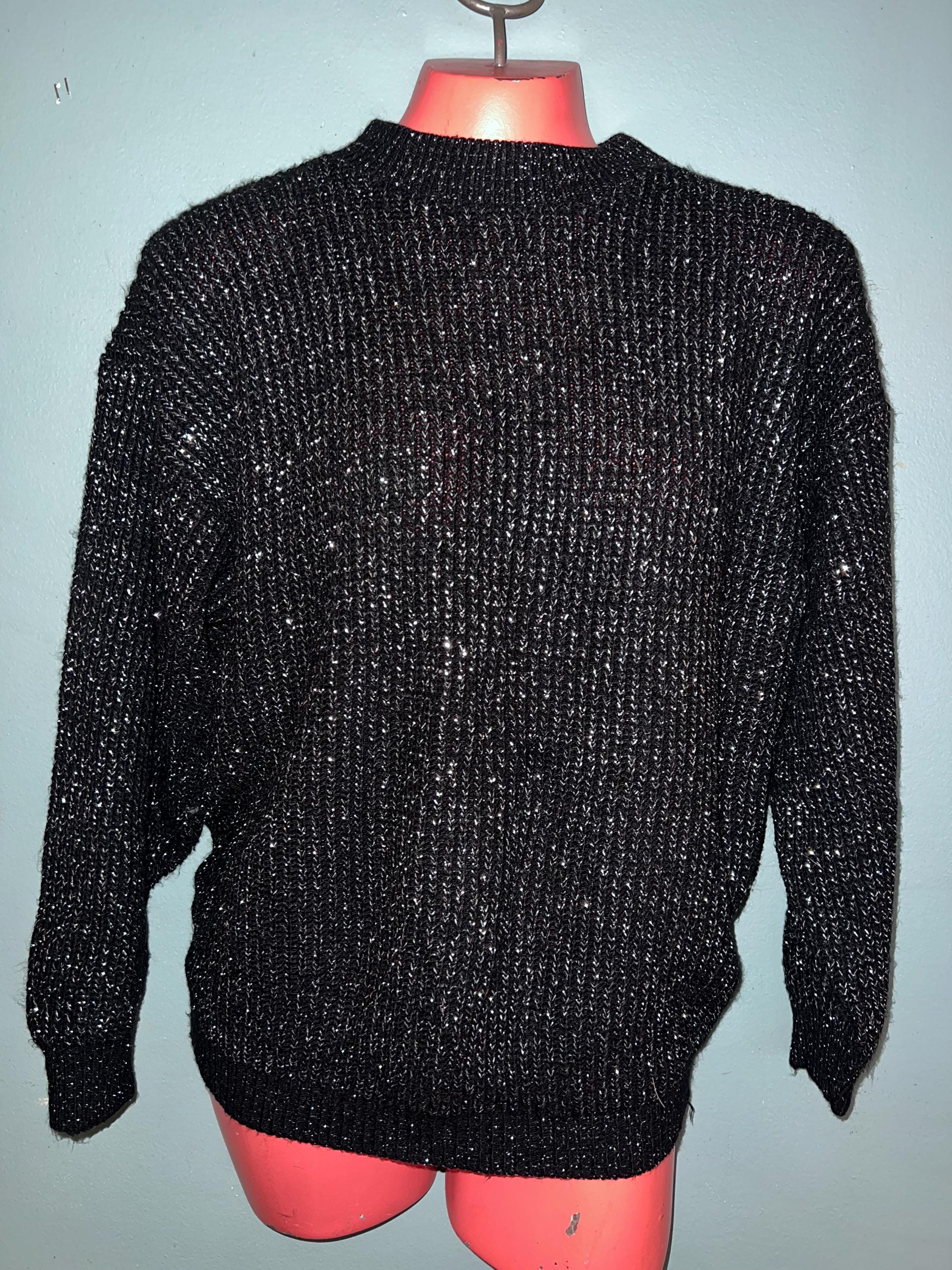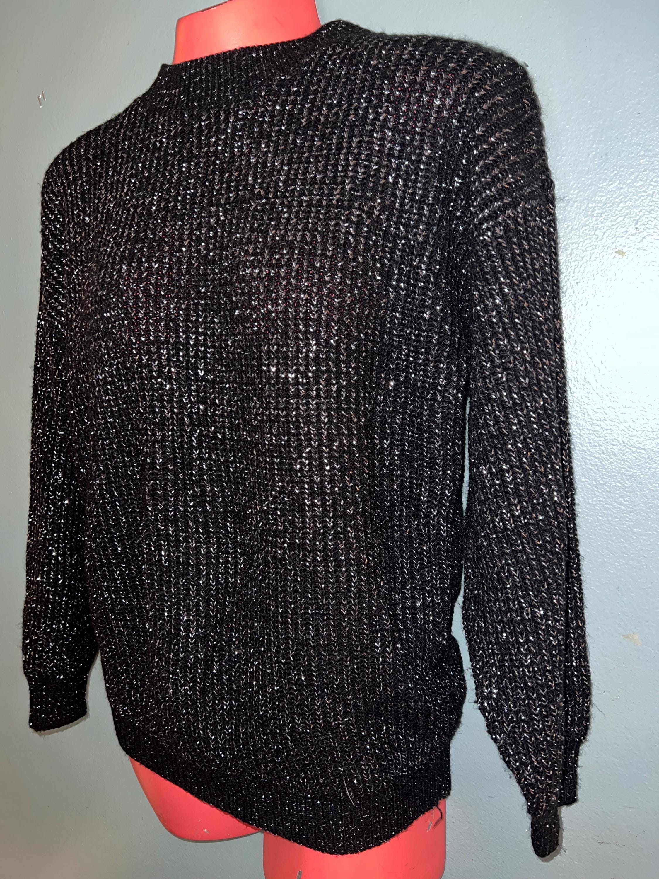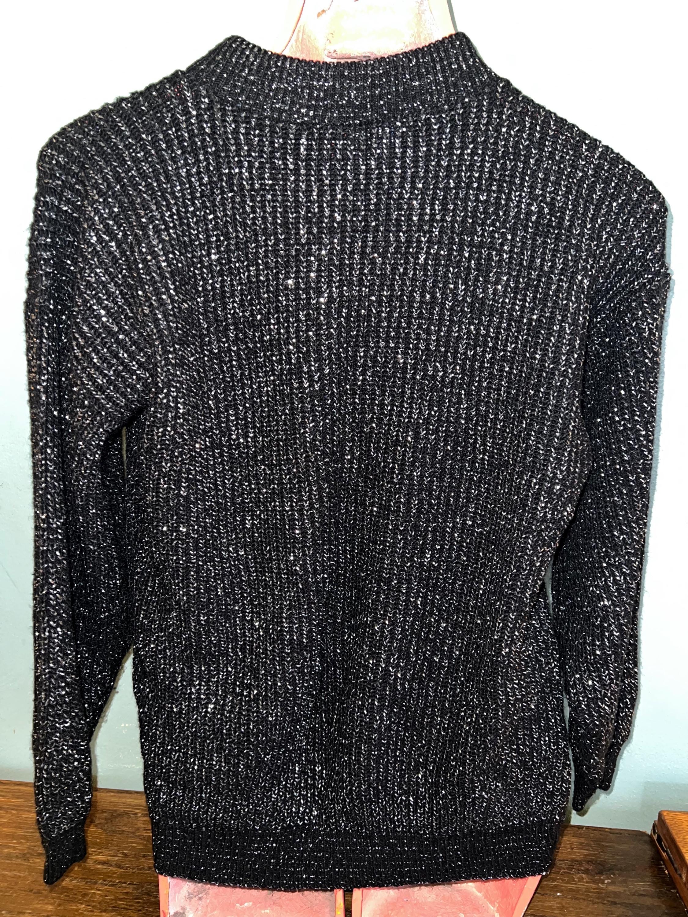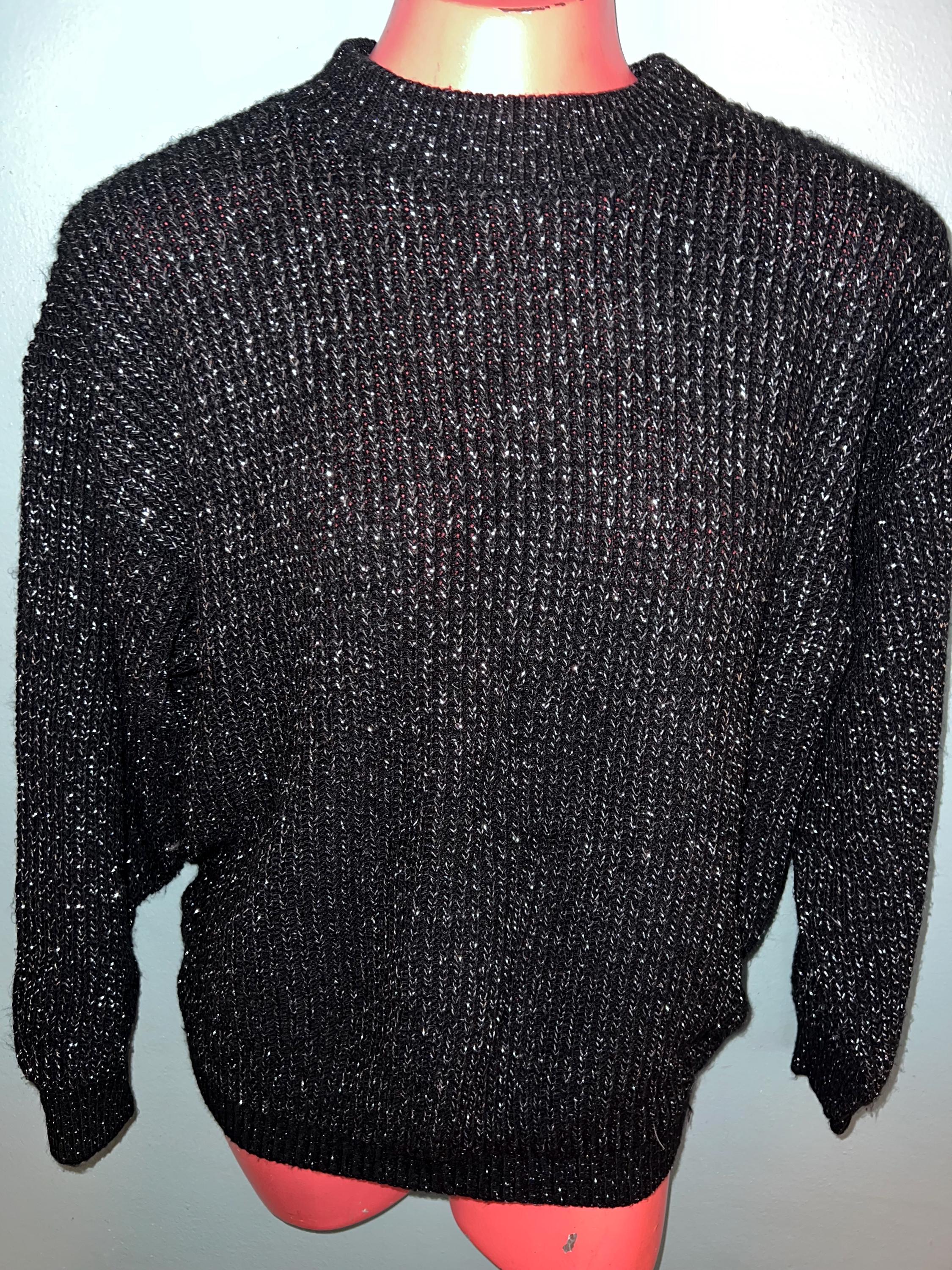Nice vintage black and silver winter sweater! It would be perfect for a casual night out this holiday season. It’s in good vintage condition.