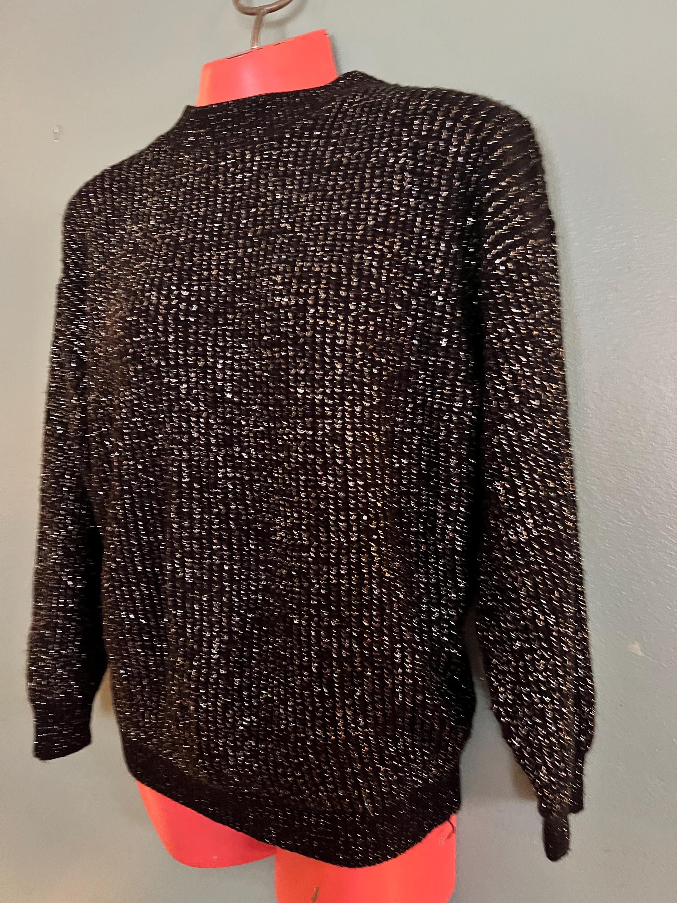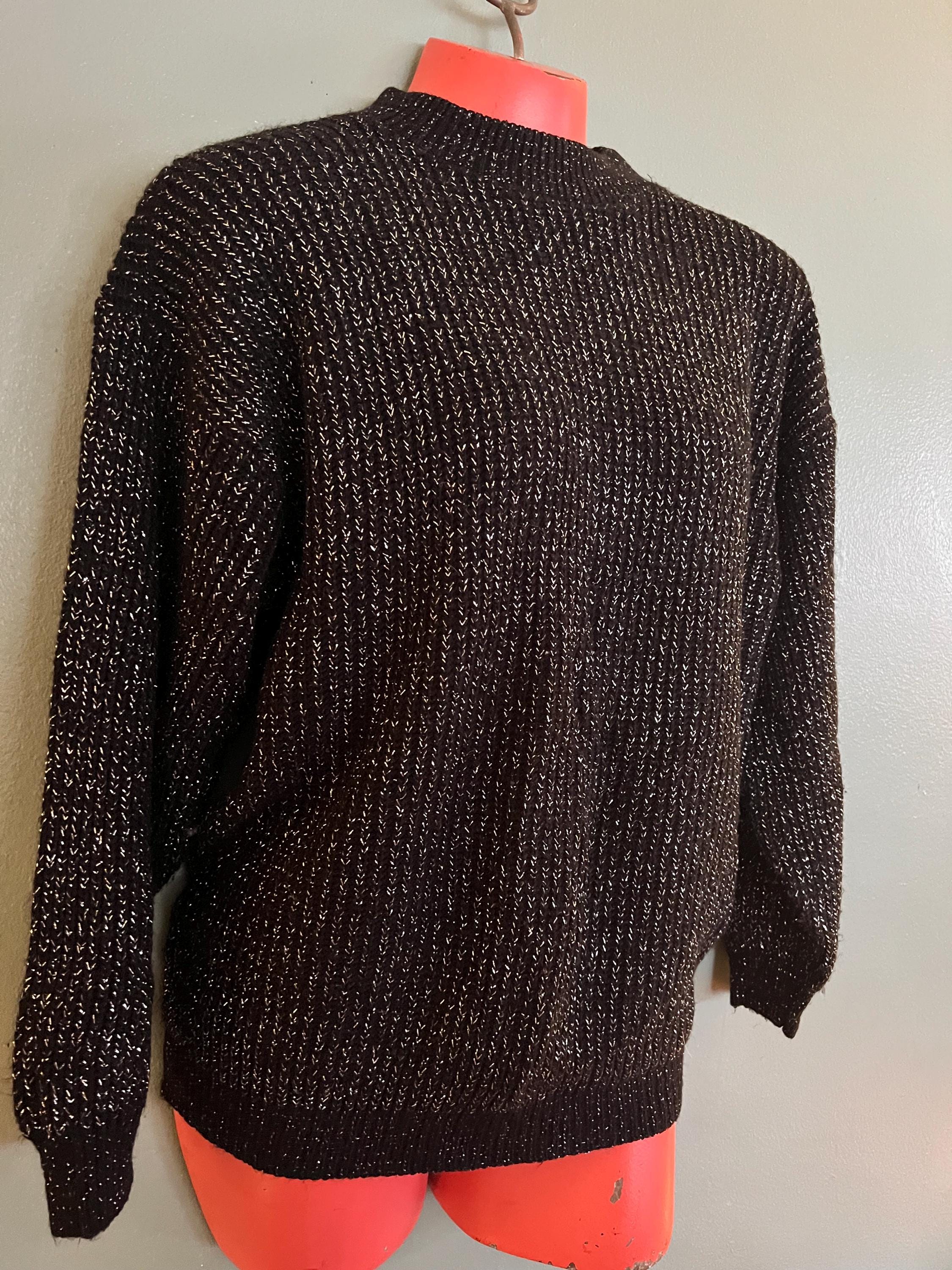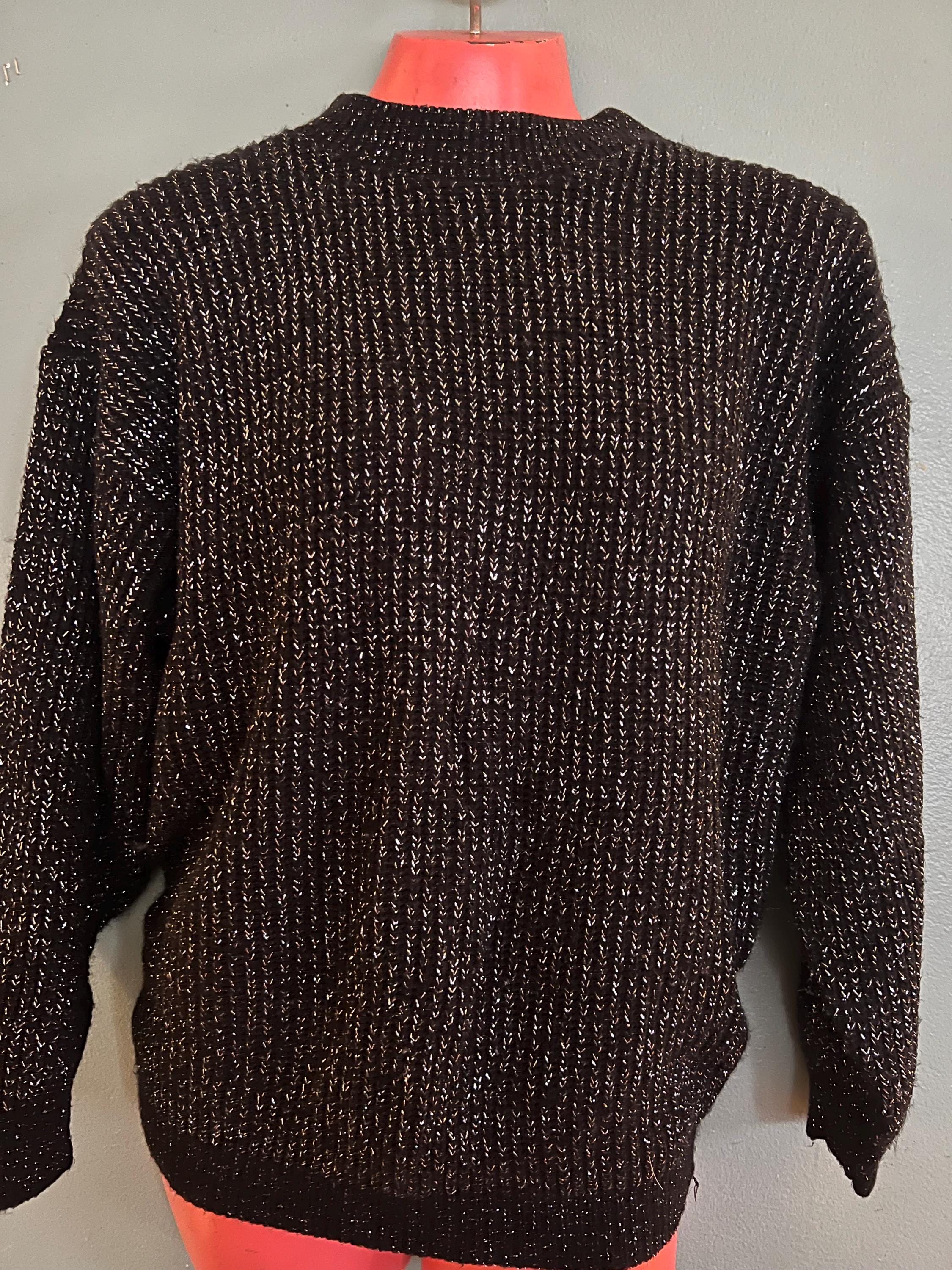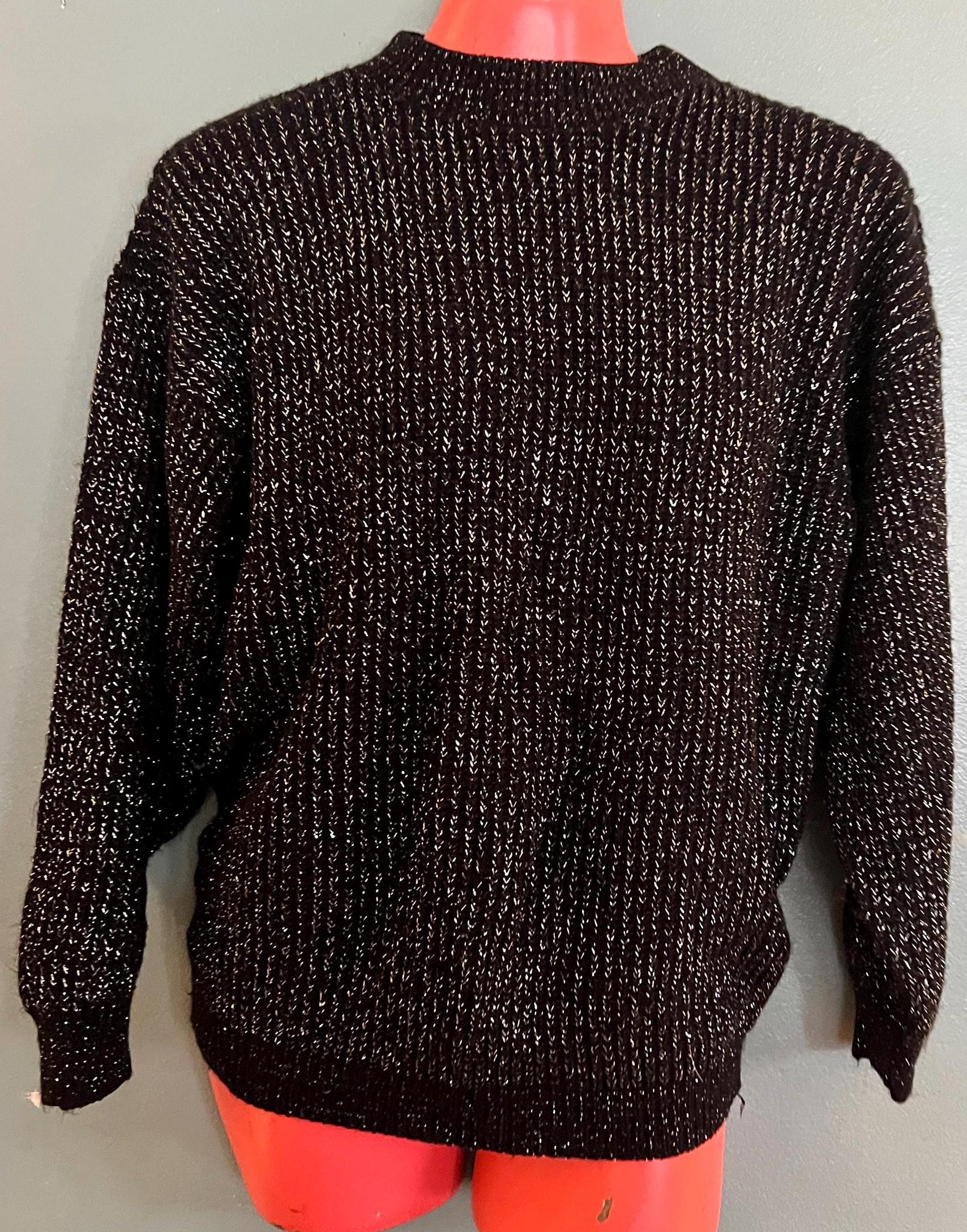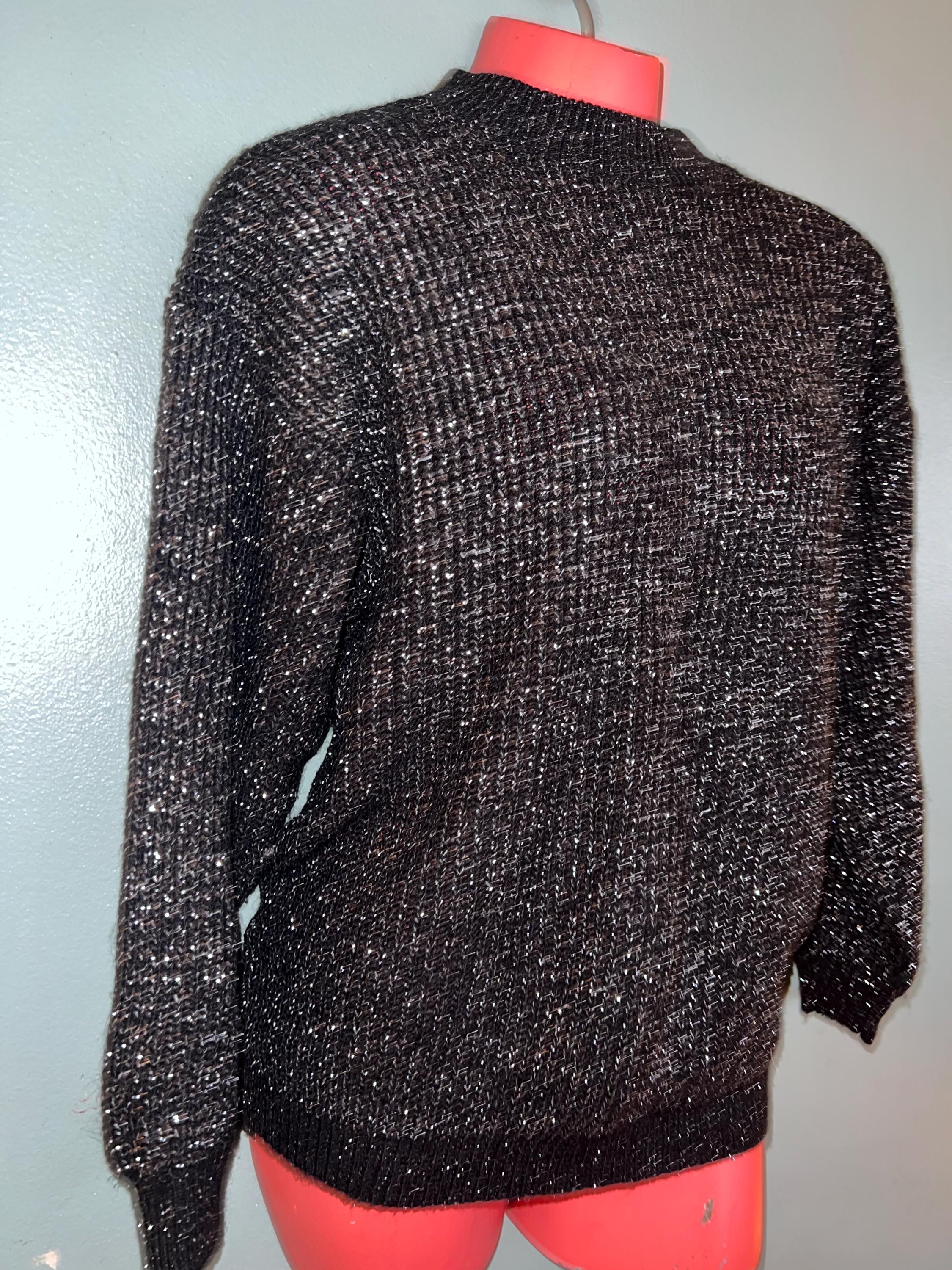 Nice vintage black and silver winter sweater! It would be perfect for a casual night out this holiday season. It’s in good vintage condition.