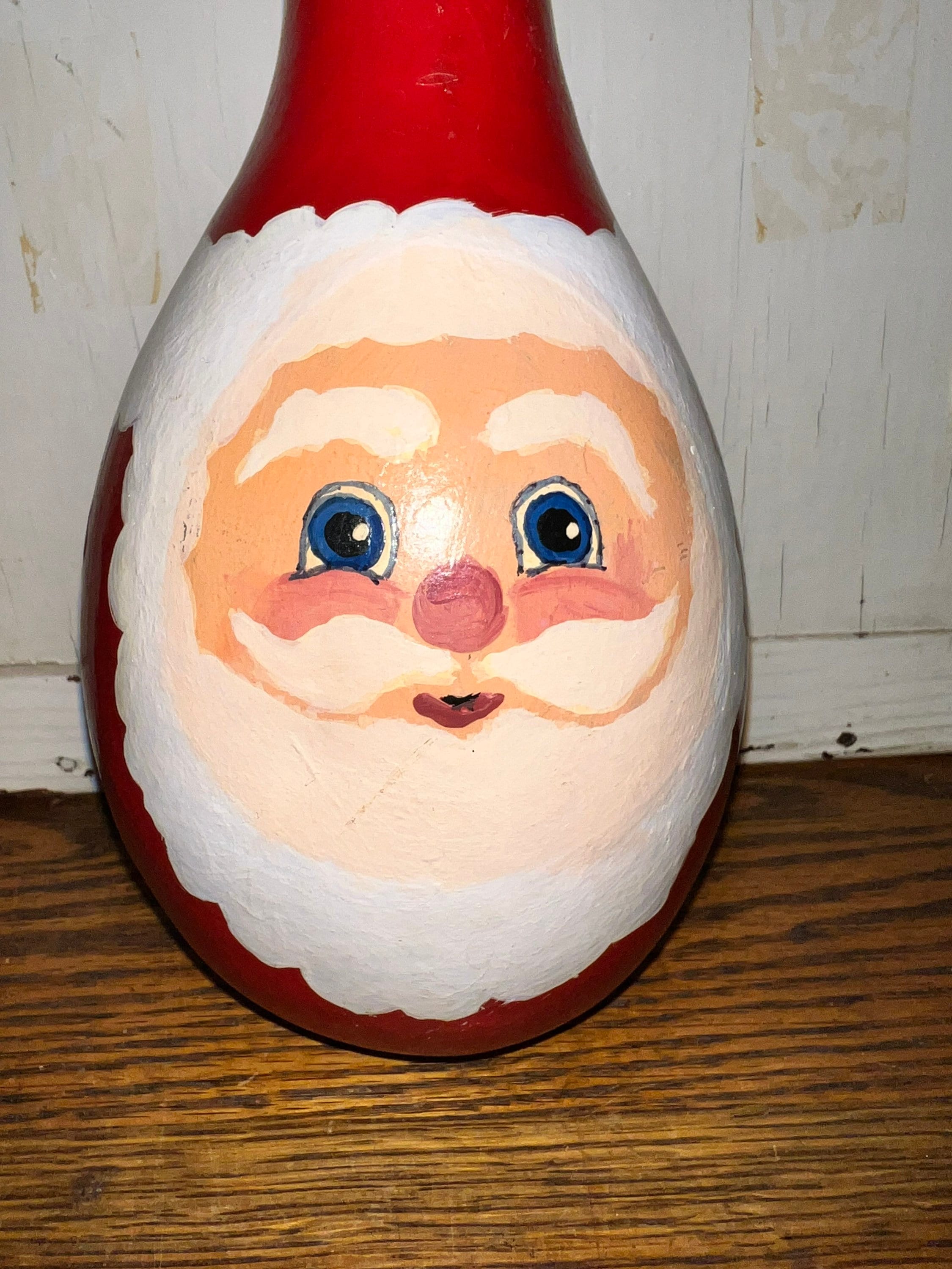 This is a super cute Santa Claus gourd. It was hand painted years ago, I believe in the late 80’s. It belonged to my nana and I know it was quite awhile ago! Anyways, it’s in good vintage condition.