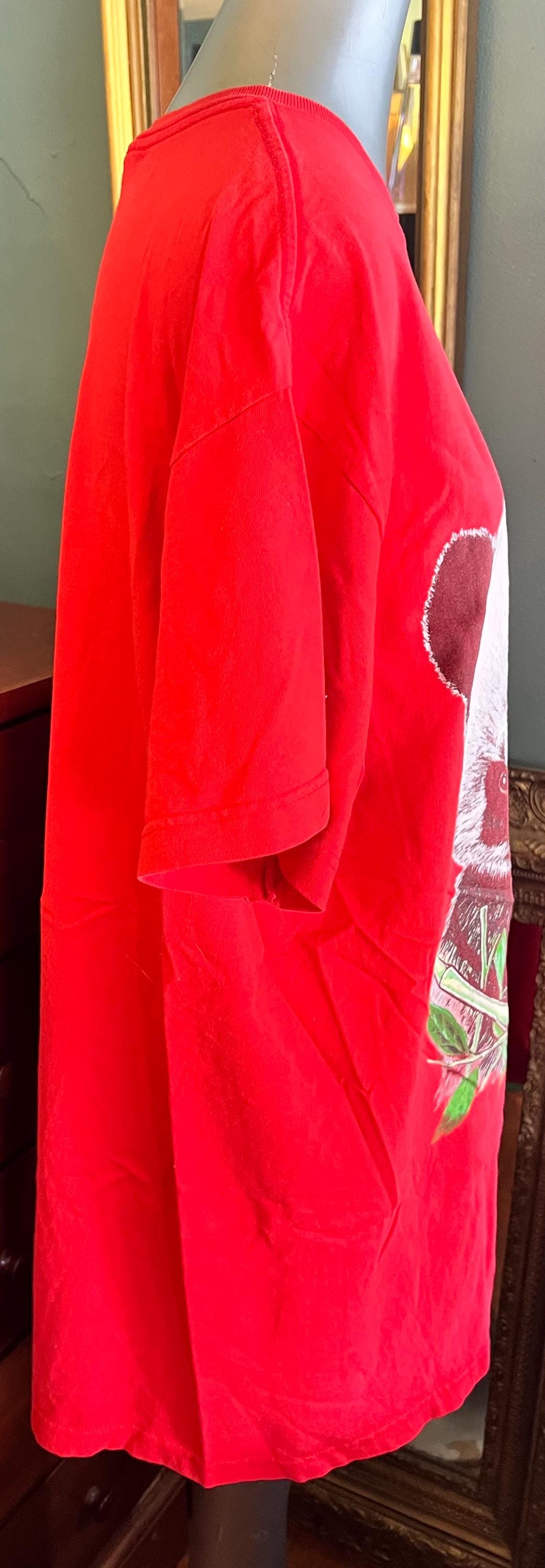 This is adorable! It’s a long red tshirt from San Diego. It could be a nightshirt or a cover-up. It’s in good vintage condition, but does show some wear.