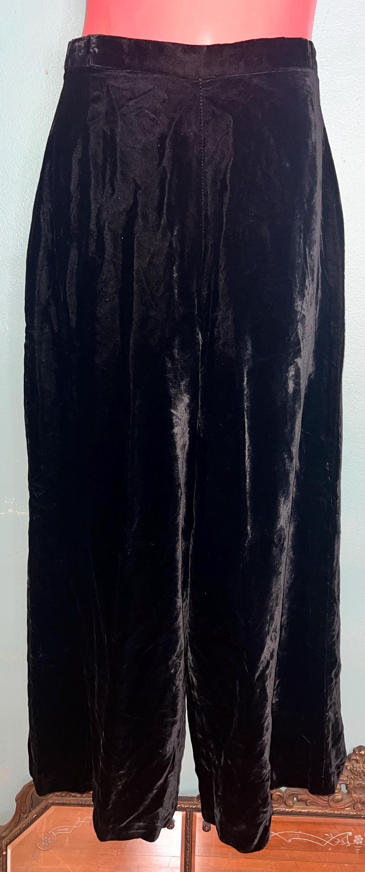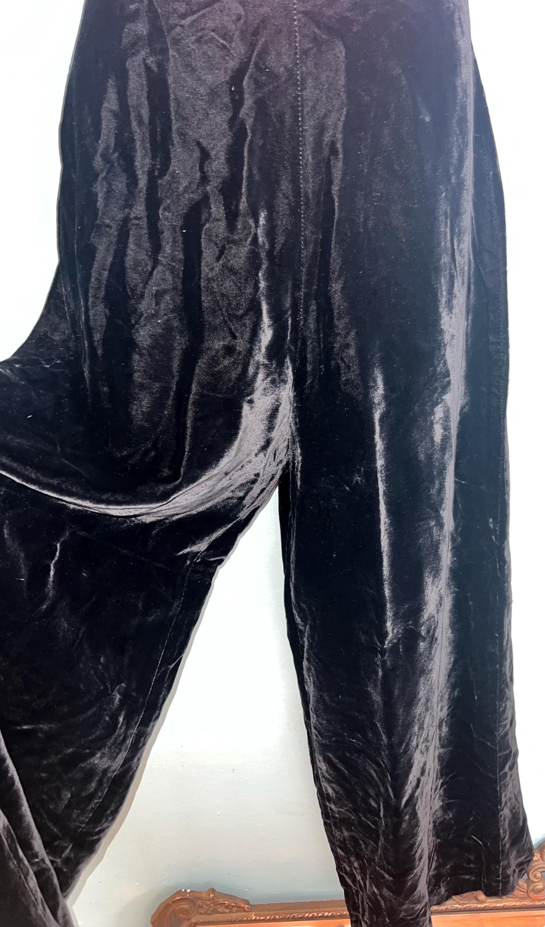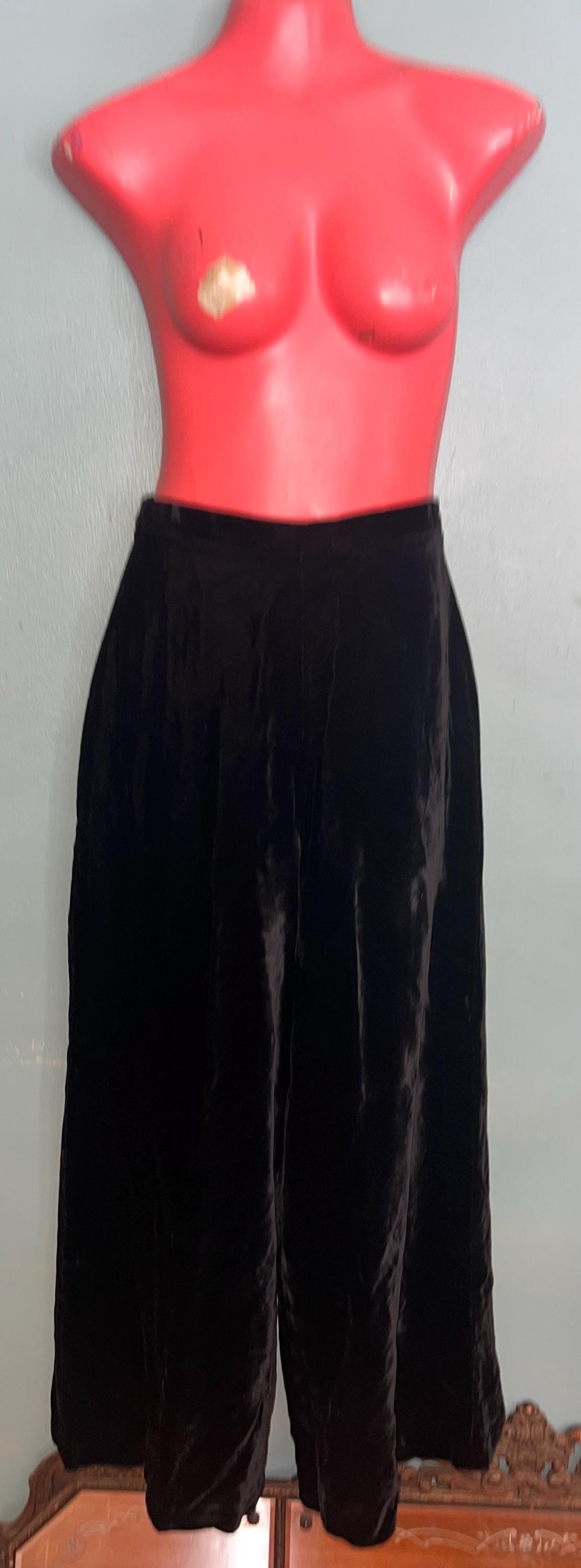 This is an excellent pair of Alex Coleman Pants from the 60’s. They are black velvet with lining, high waisted, and wide legged. No pockets. They are very pretty and in good vintage condition!