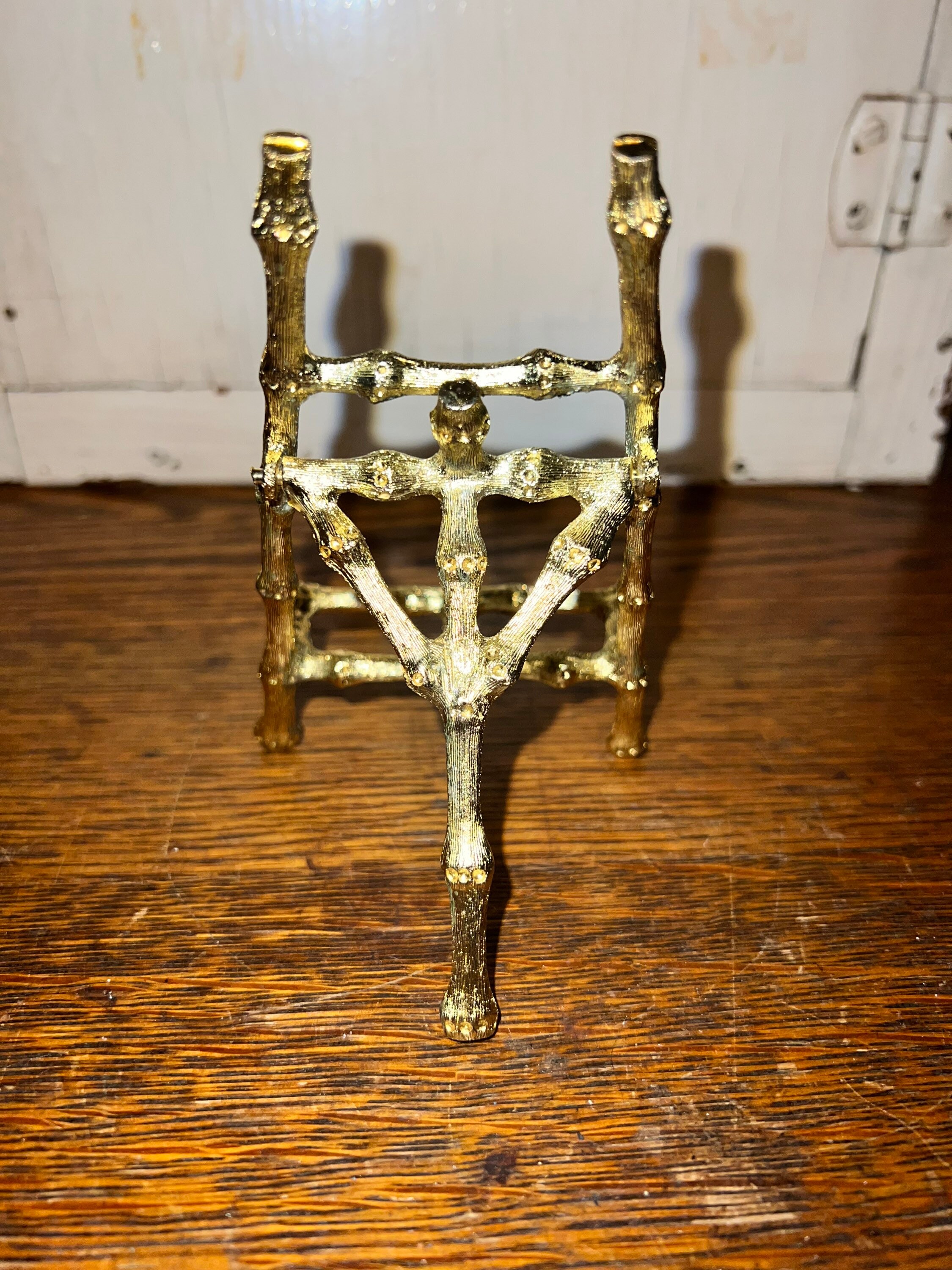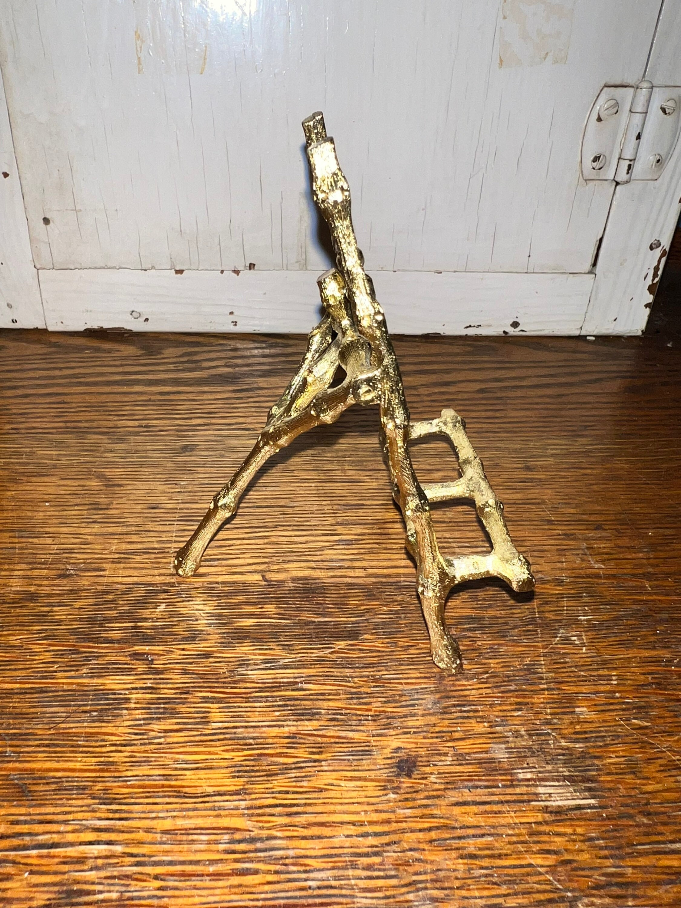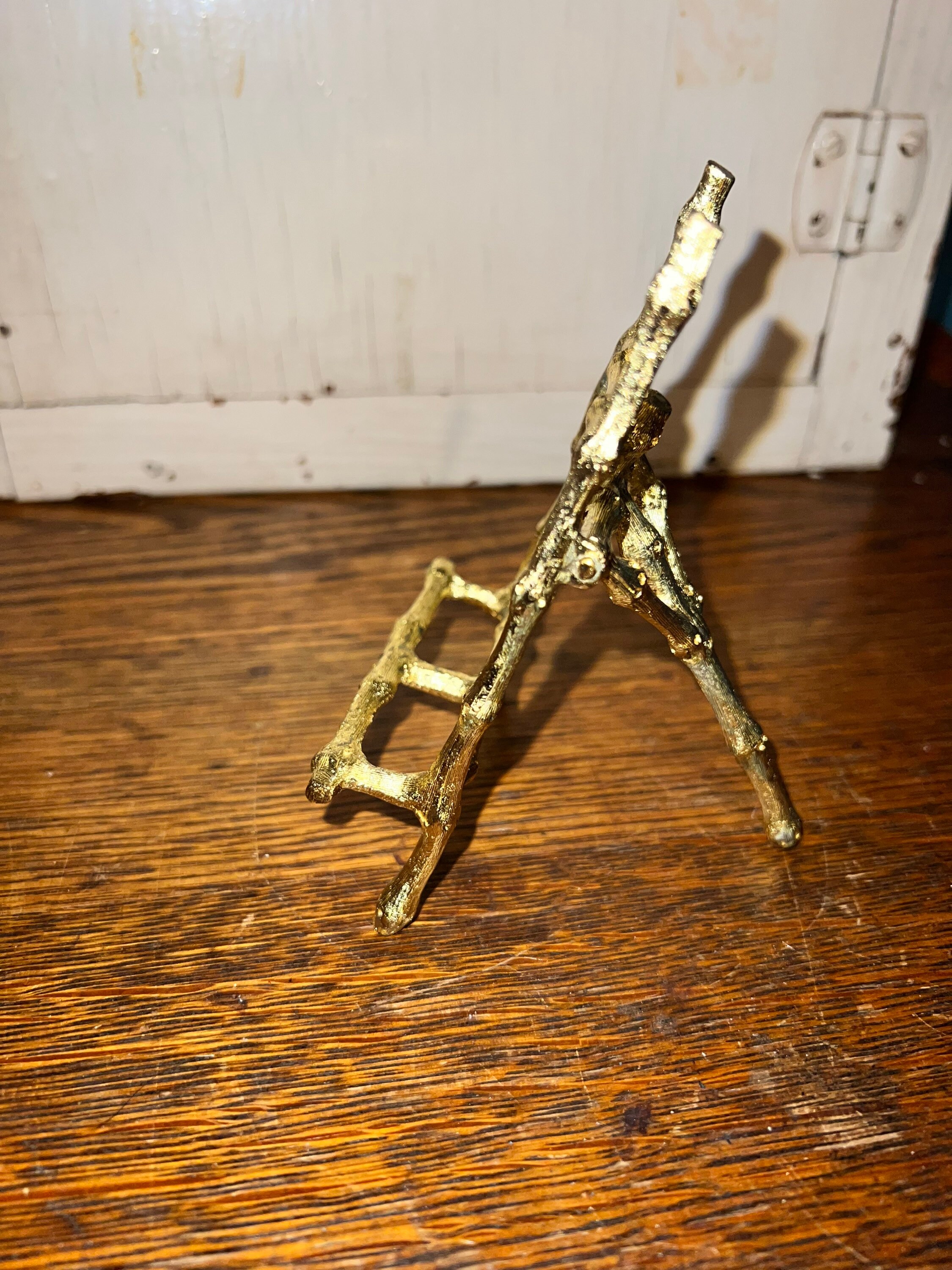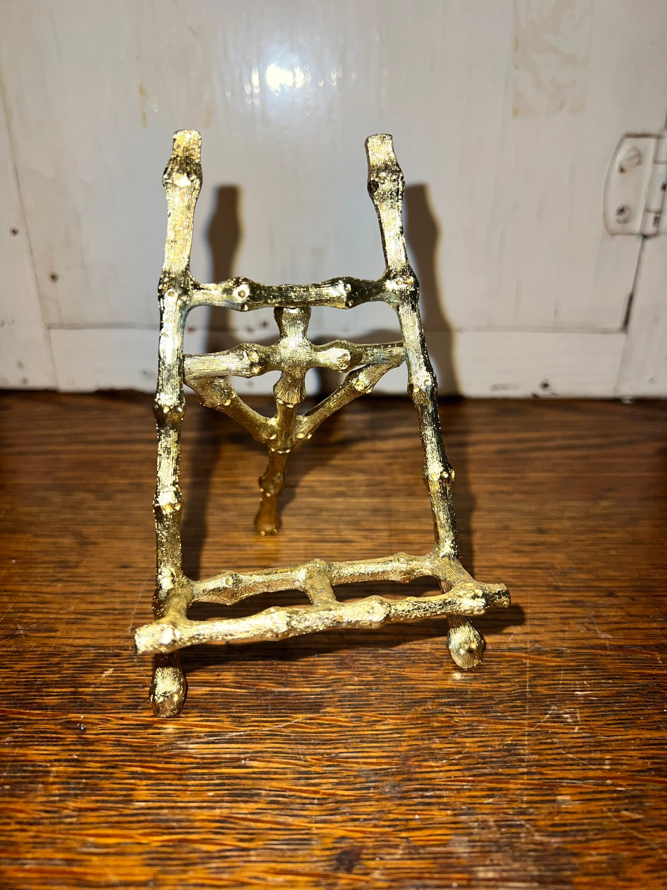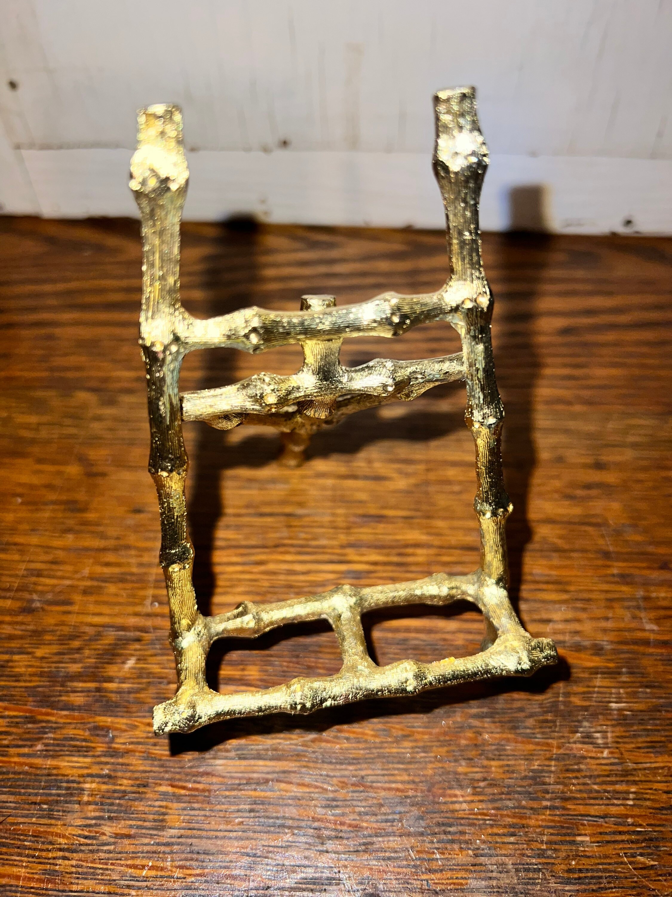 This is a really nice vintage MCM shiny gold brass, (maybe) Hollywood Regency style little tabletop faux bamboo easel. It's in good vintage condition.