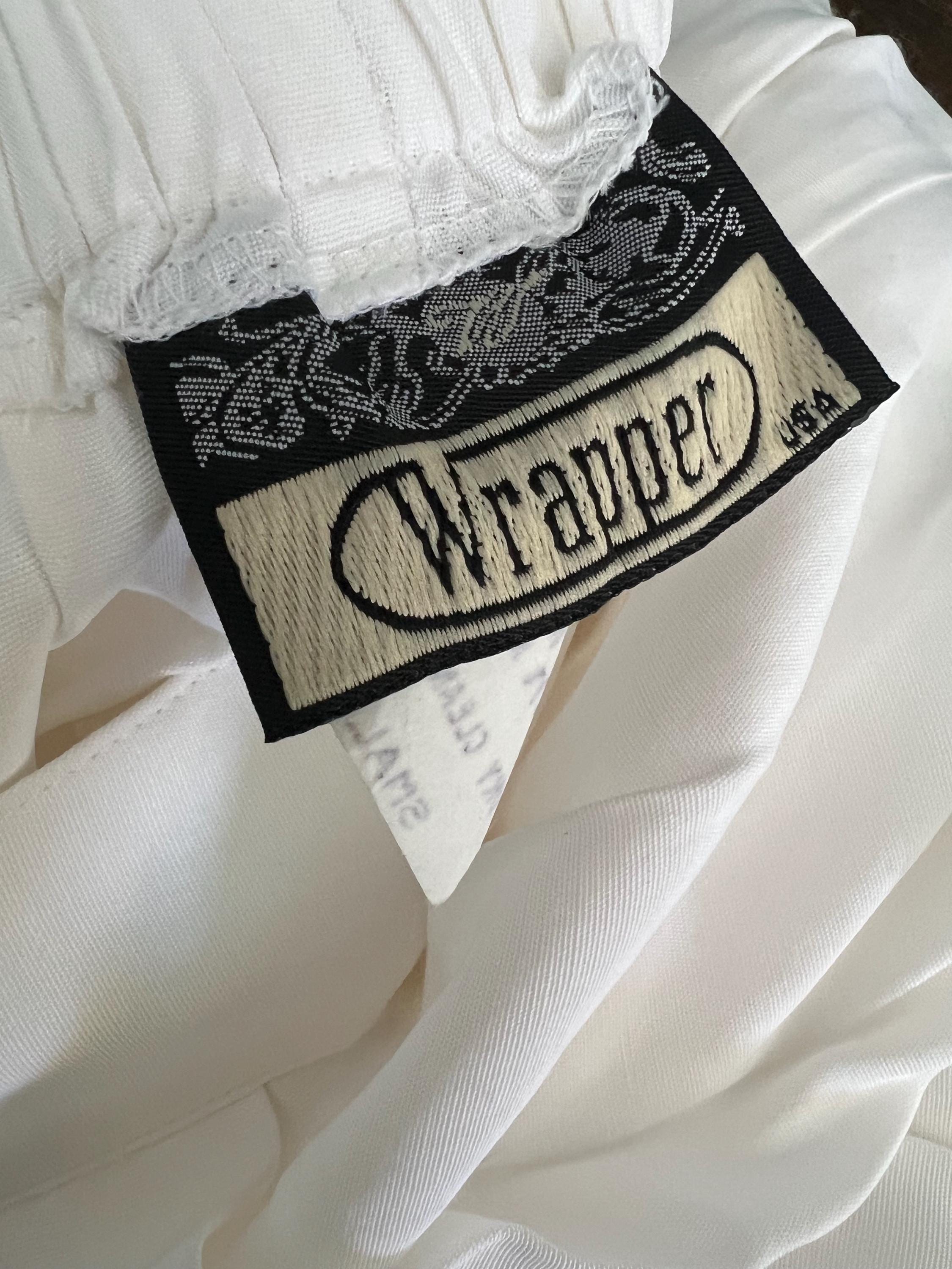 This is a lovely pair of 90s shorts. They are flowy and white wide leg shorts with a flat front waist and elastic at the back. one piece shorts outfit. They are in good vintage condition.