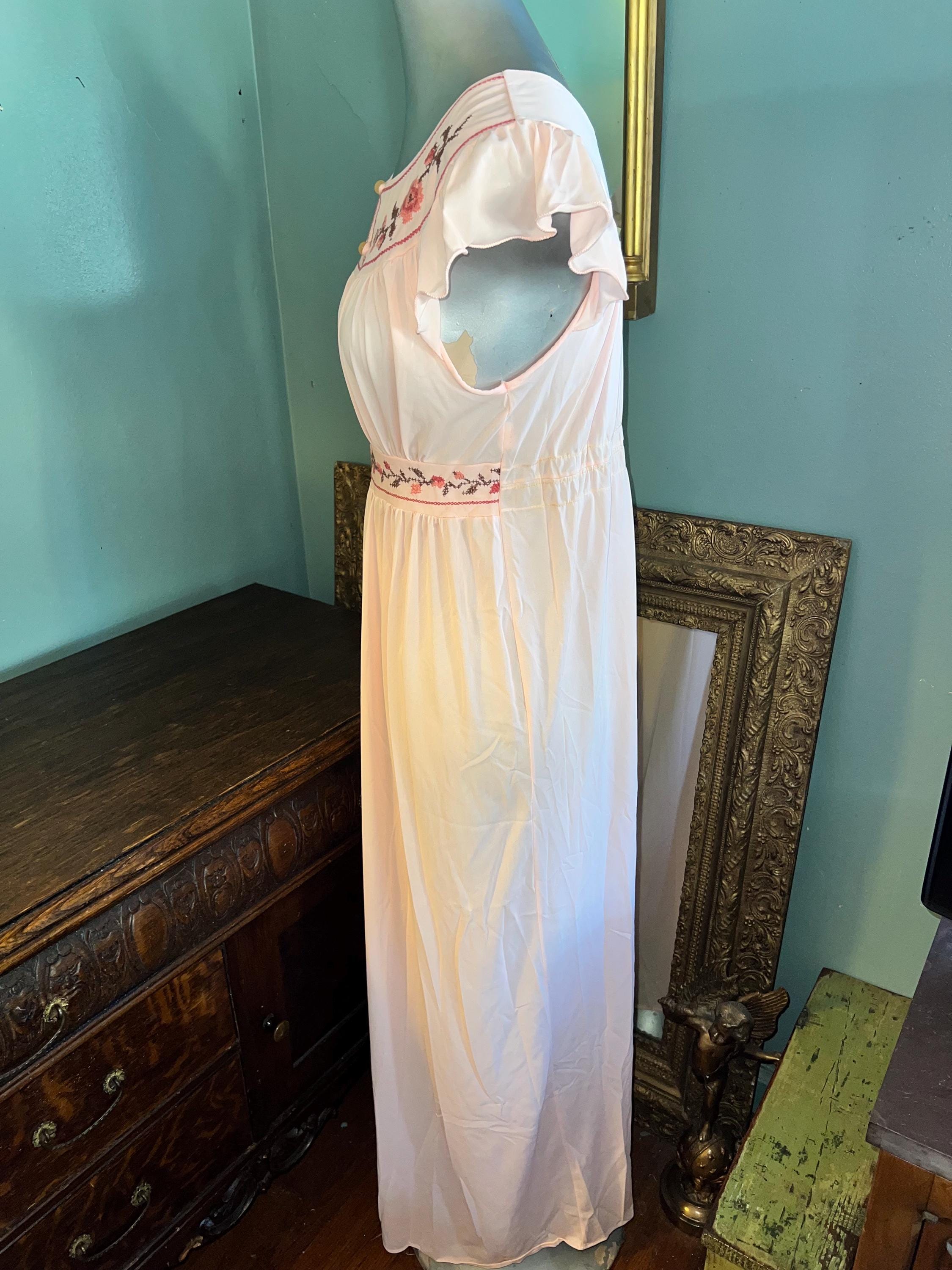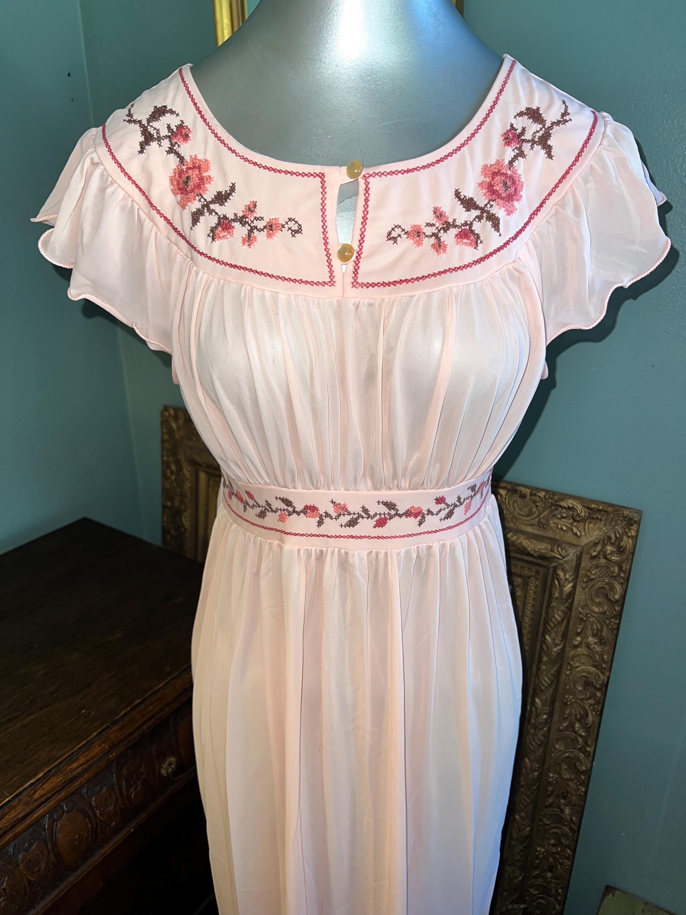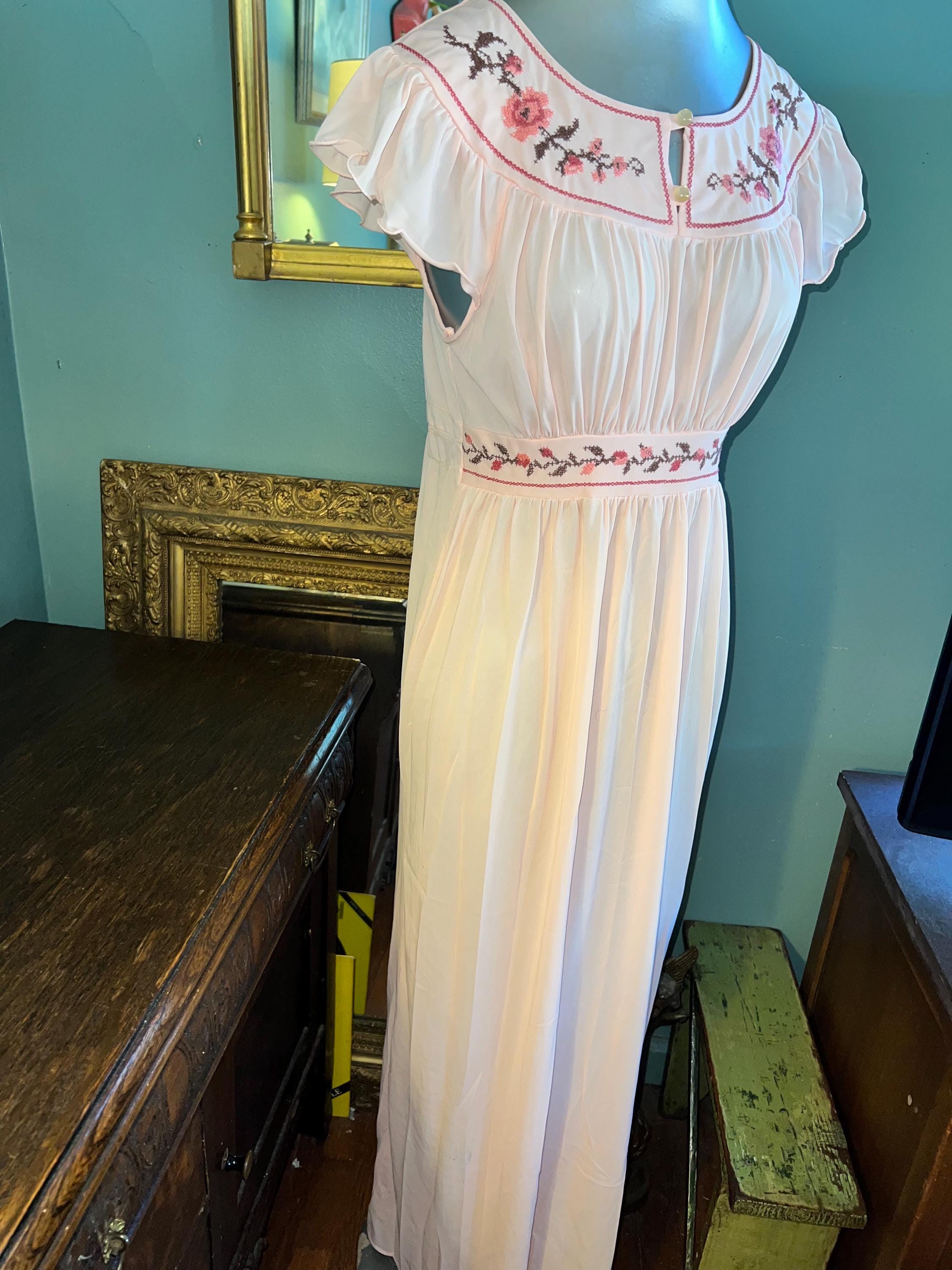 This is just adorable. I love the cut of it with the ruffle cap sleeves and the pretty embroidery on it. It’s super cute and in good vintage condition!