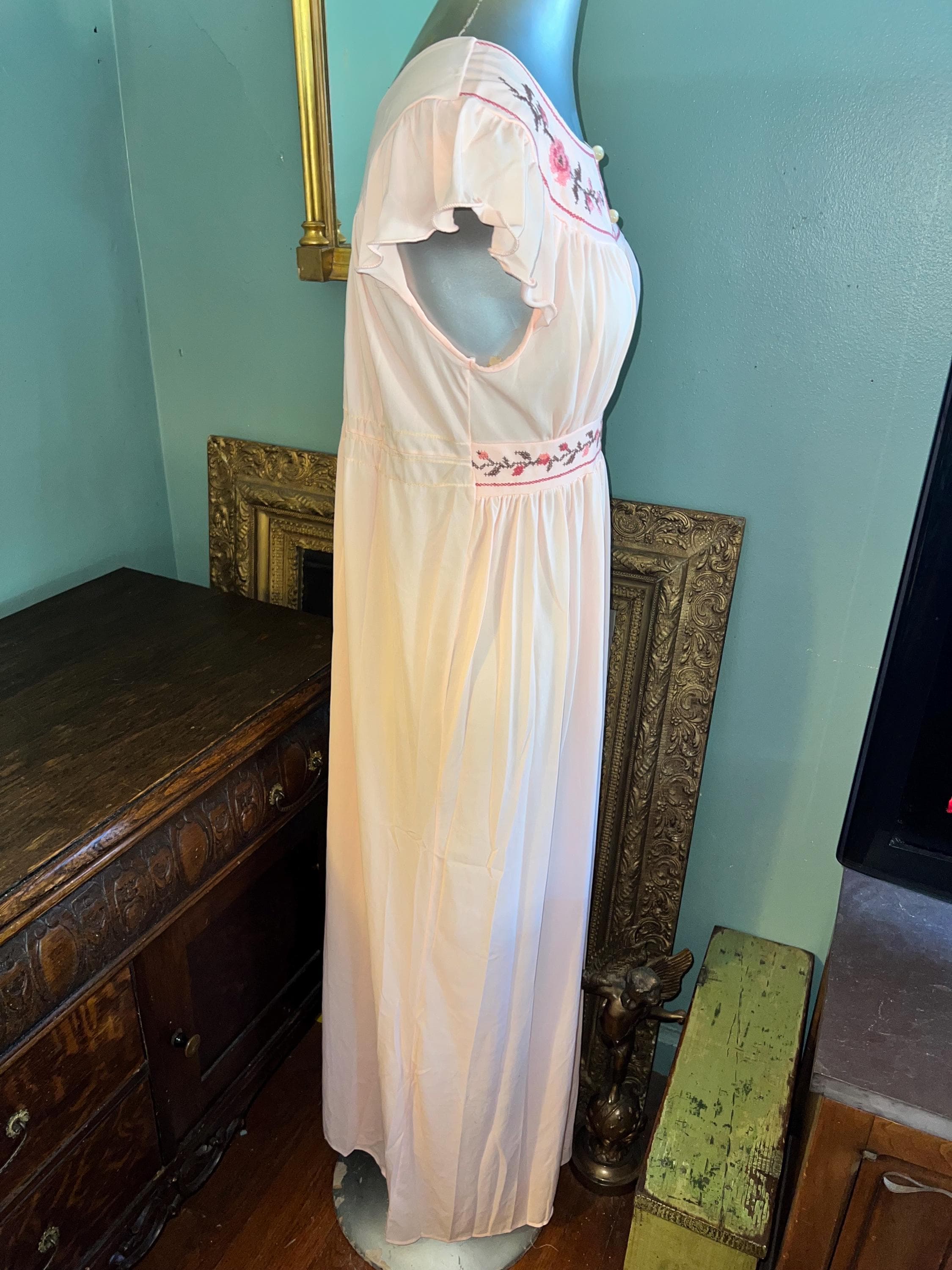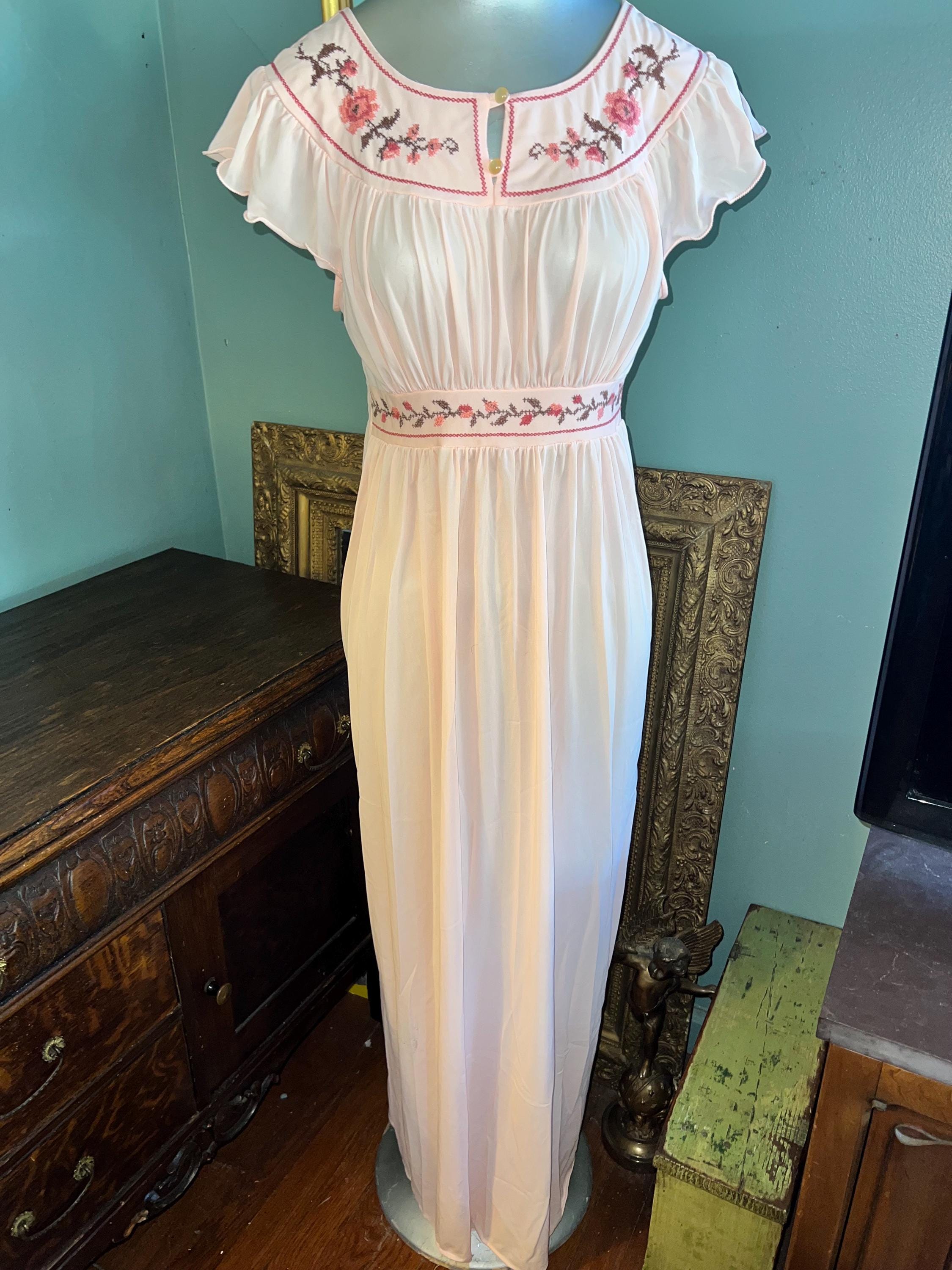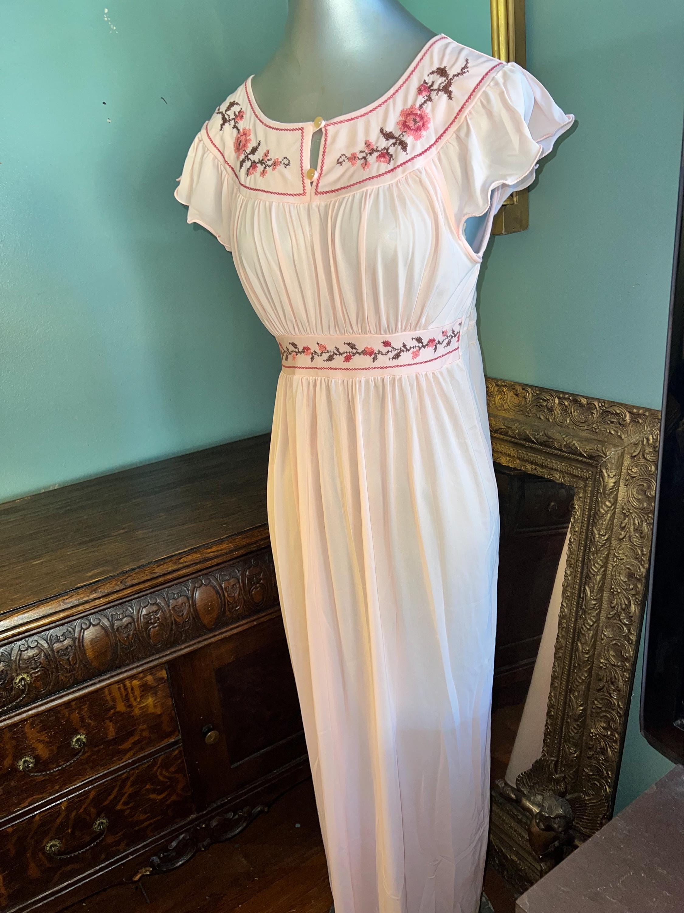 This is just adorable. I love the cut of it with the ruffle cap sleeves and the pretty embroidery on it. It’s super cute and in good vintage condition!