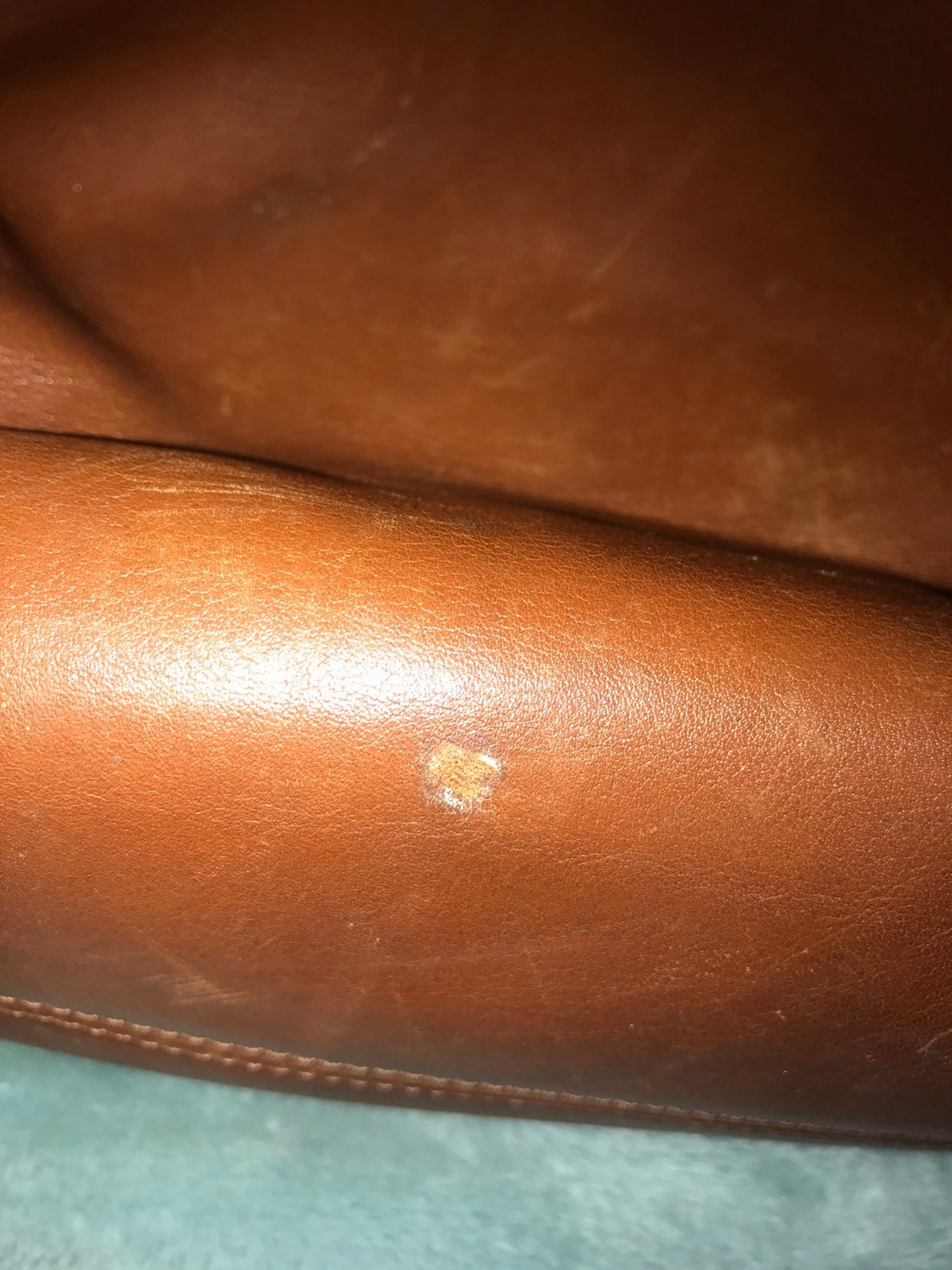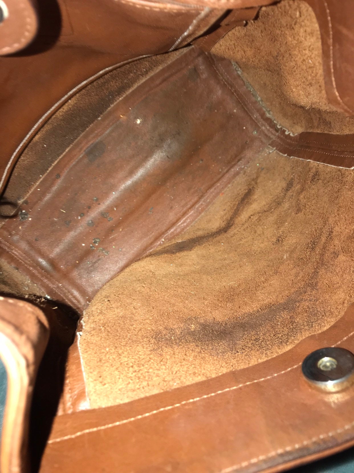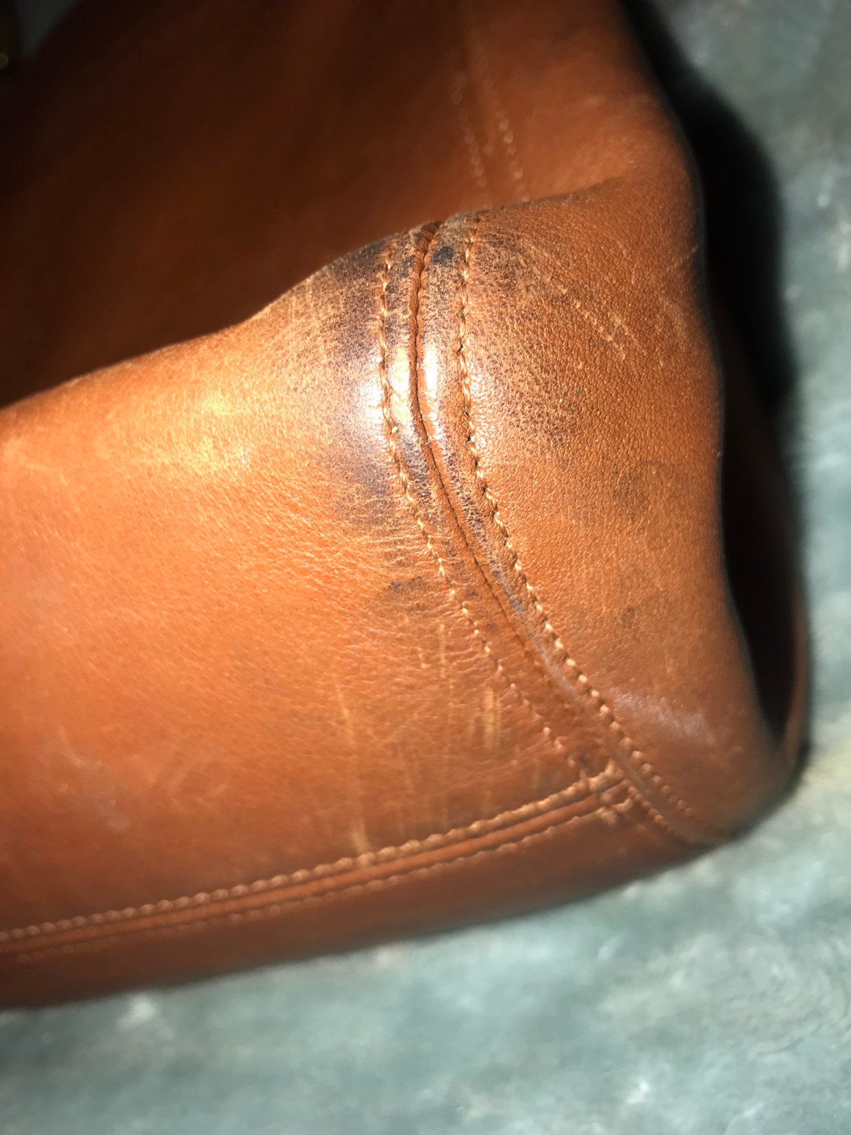 This is a lovely brown Classic Leather Coach Purse. It is a shoulder bag or hand carry. The leather is in great condition but does have a few spots and a little darkening of the leather on one corner of the bottom. It has the original hang tag and nice brass hardware. It’s super cute and simple.