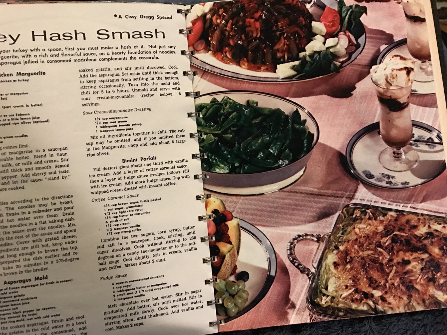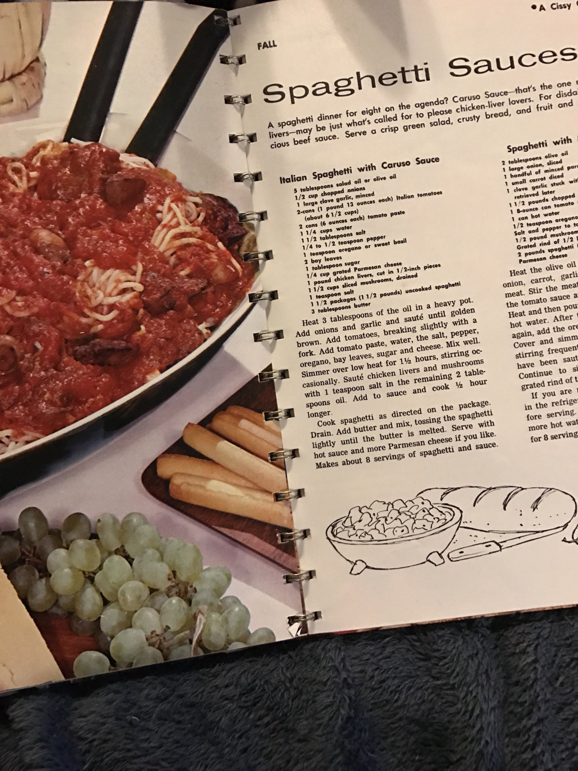 These cookbooks are too cool with the vintage photos and colors. This one was published by "Courier-Journal & Times" by Lillian Marshall Including 91 Favorite Cissy Gregg Recipes and don't forget 61 Photographs in Full Color! It's in good vintage condition.
