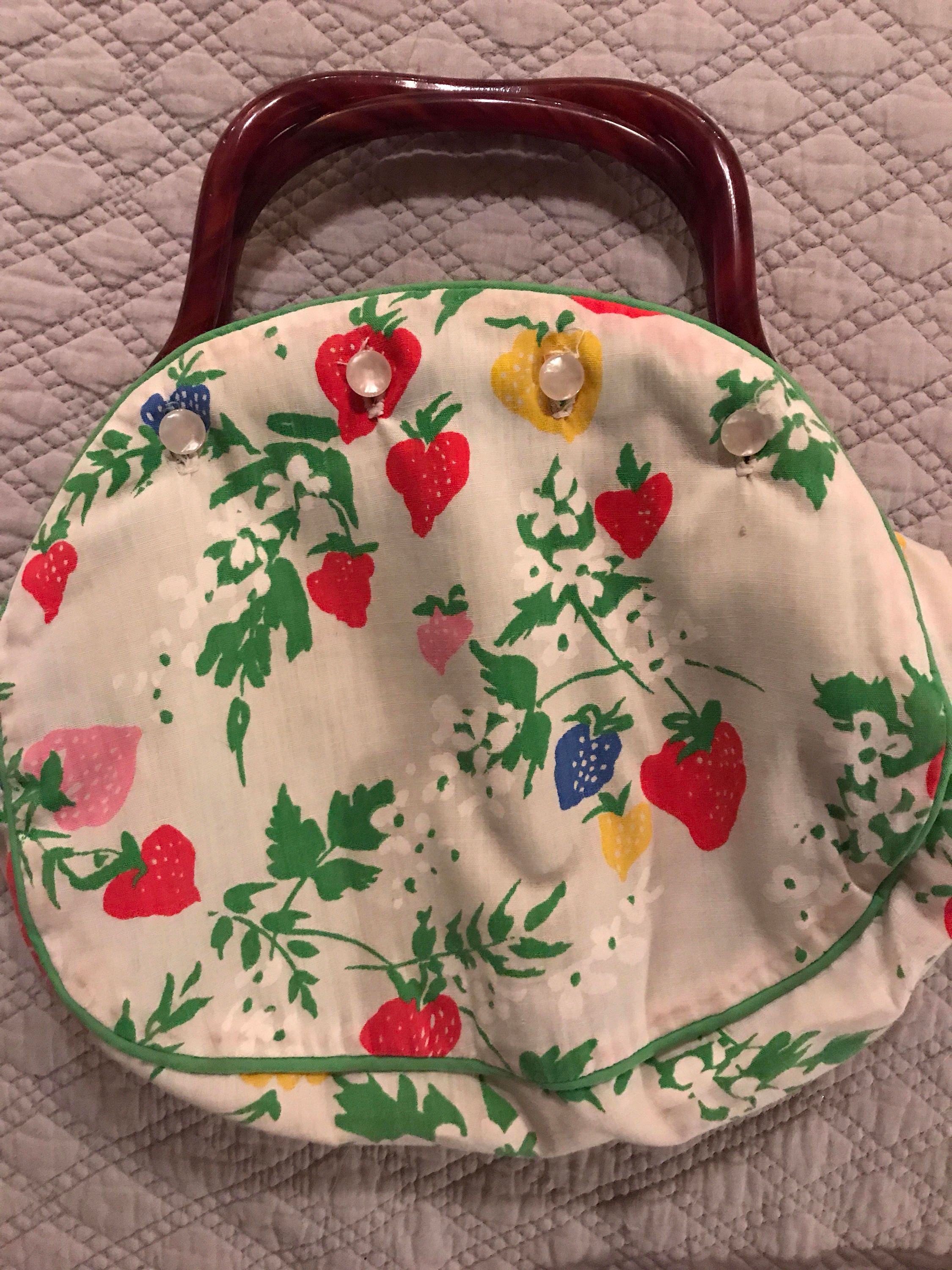 This is such a cute little Delanthe Bermuda bag with gorgeous swirly brown lucite handle. This purse comes with 4 different covers! So many styles to choose from! It’s in good vintage condition.