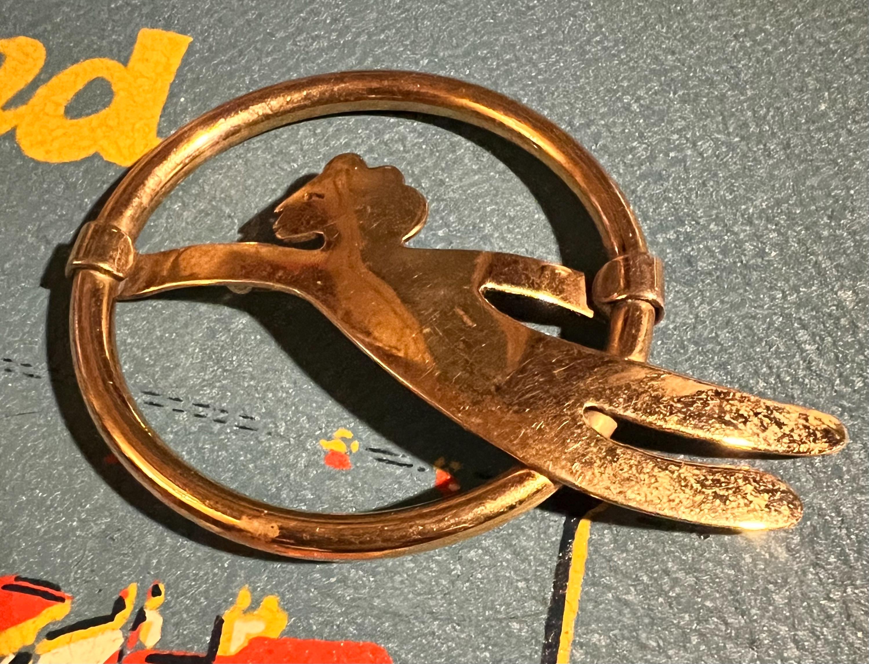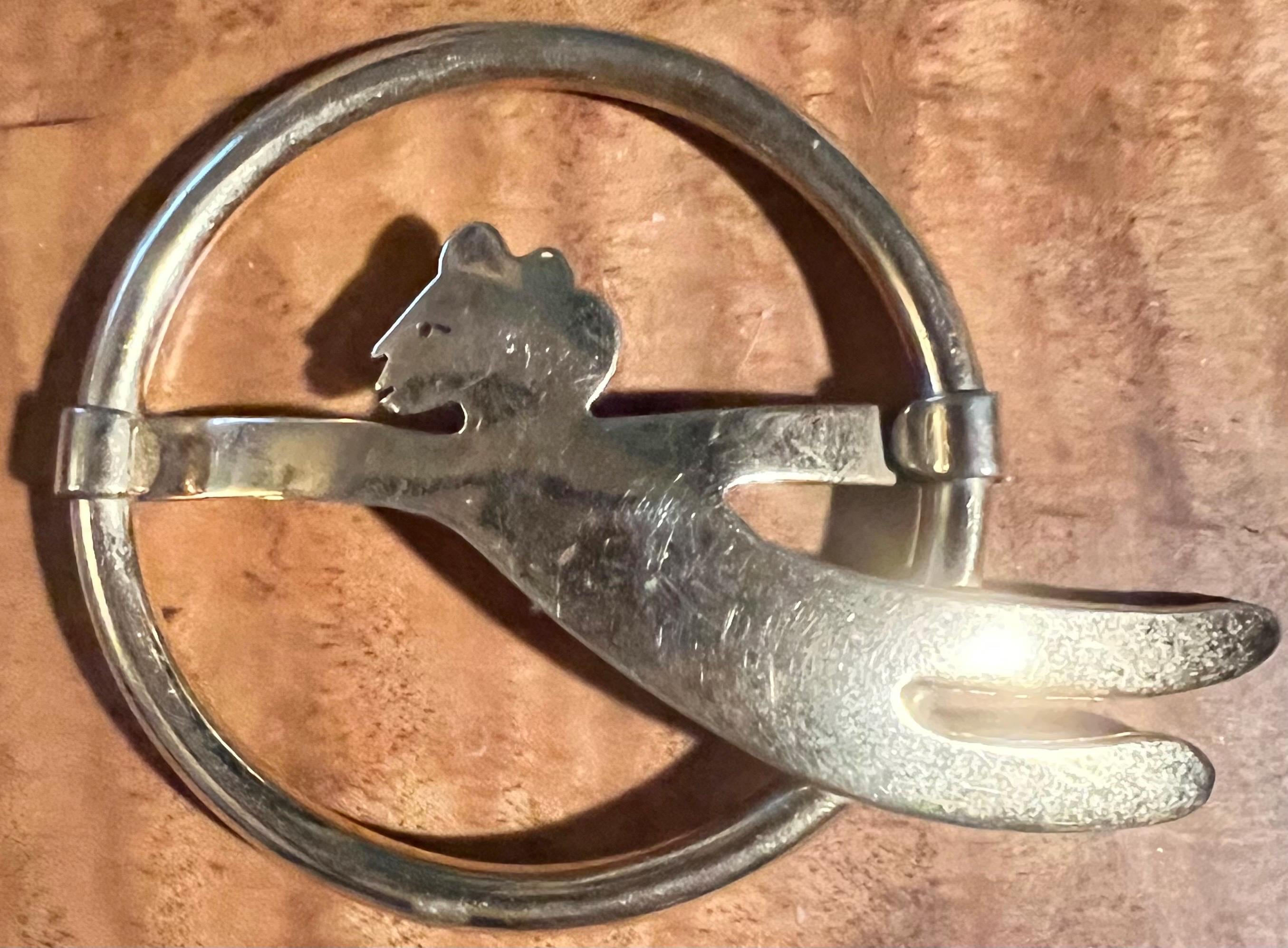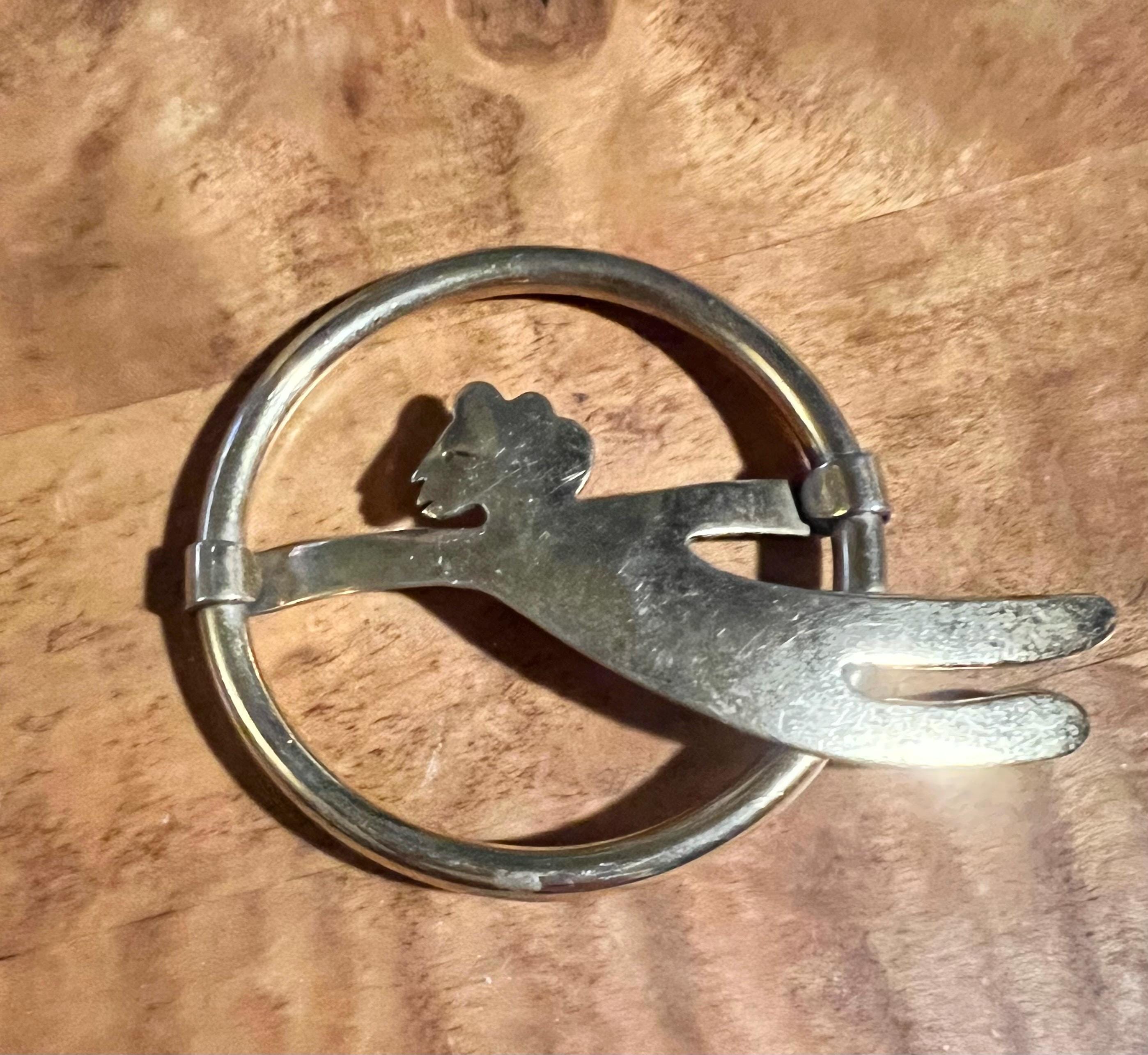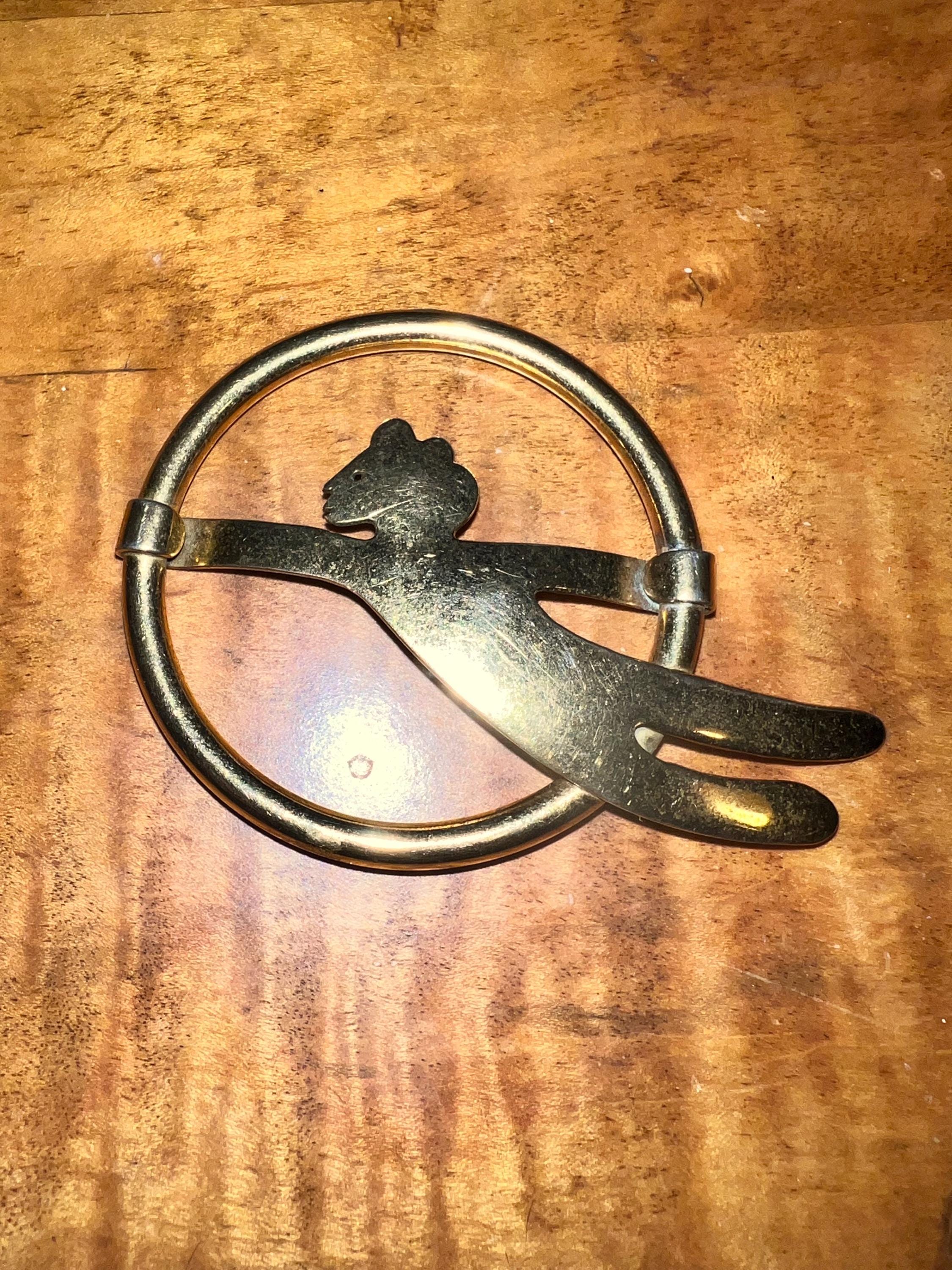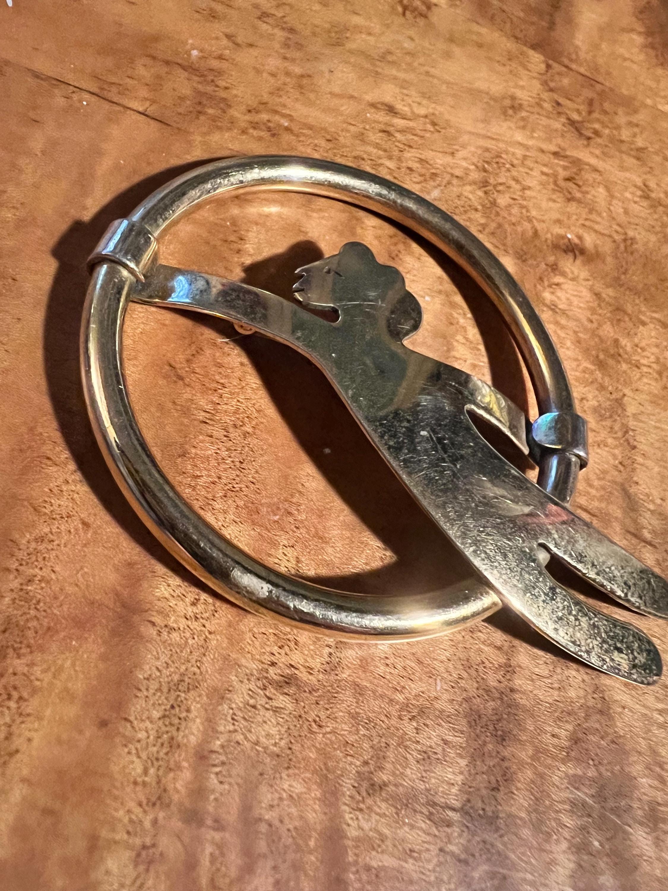 This is a really nicely made artisan brooch, it’s signed with S.H. 92’ on the back. It is very cool and definitely would make a really unique gift! It’s in good vintage condition, but as you can see in the photos there is some surface scratches.