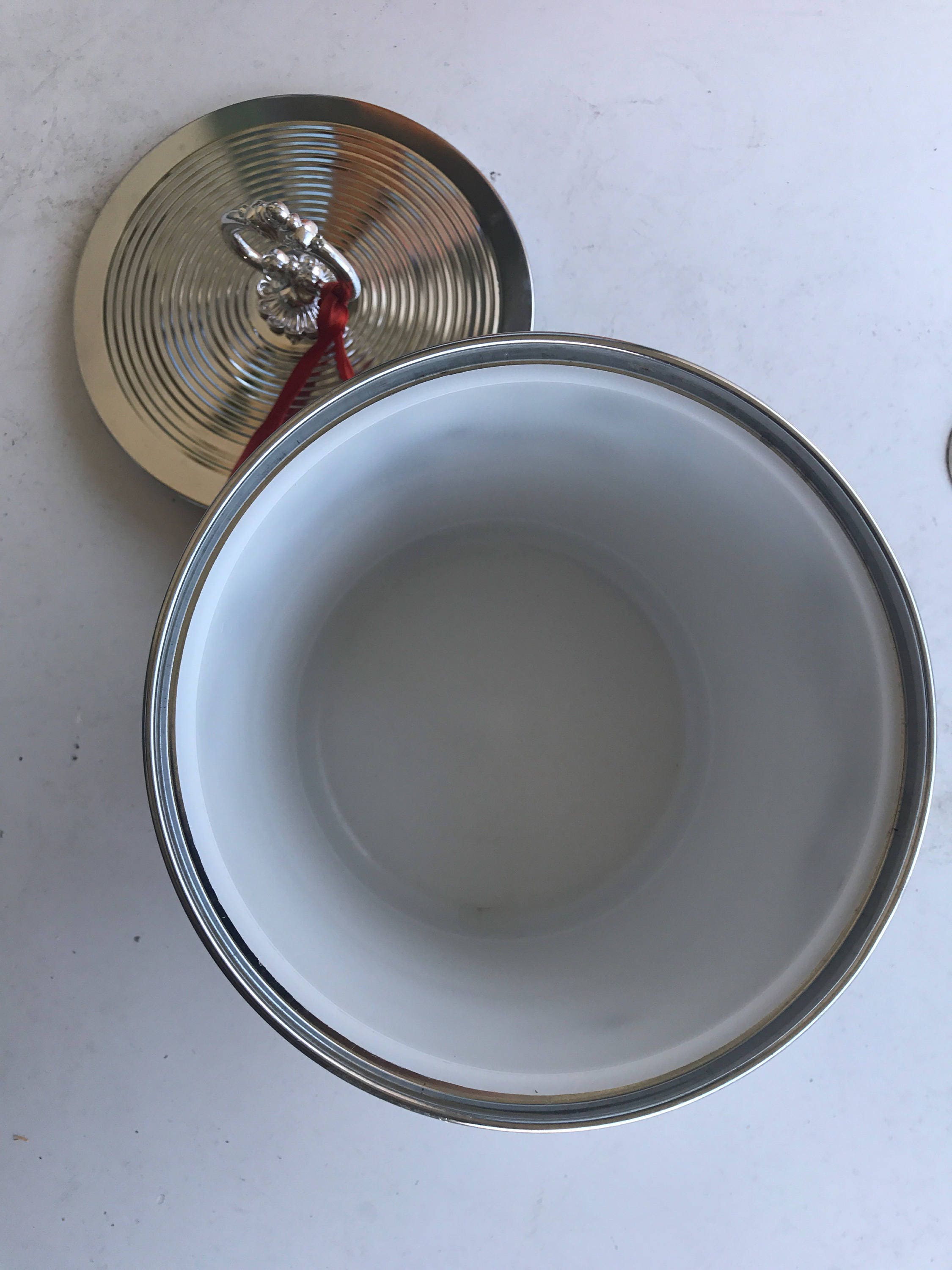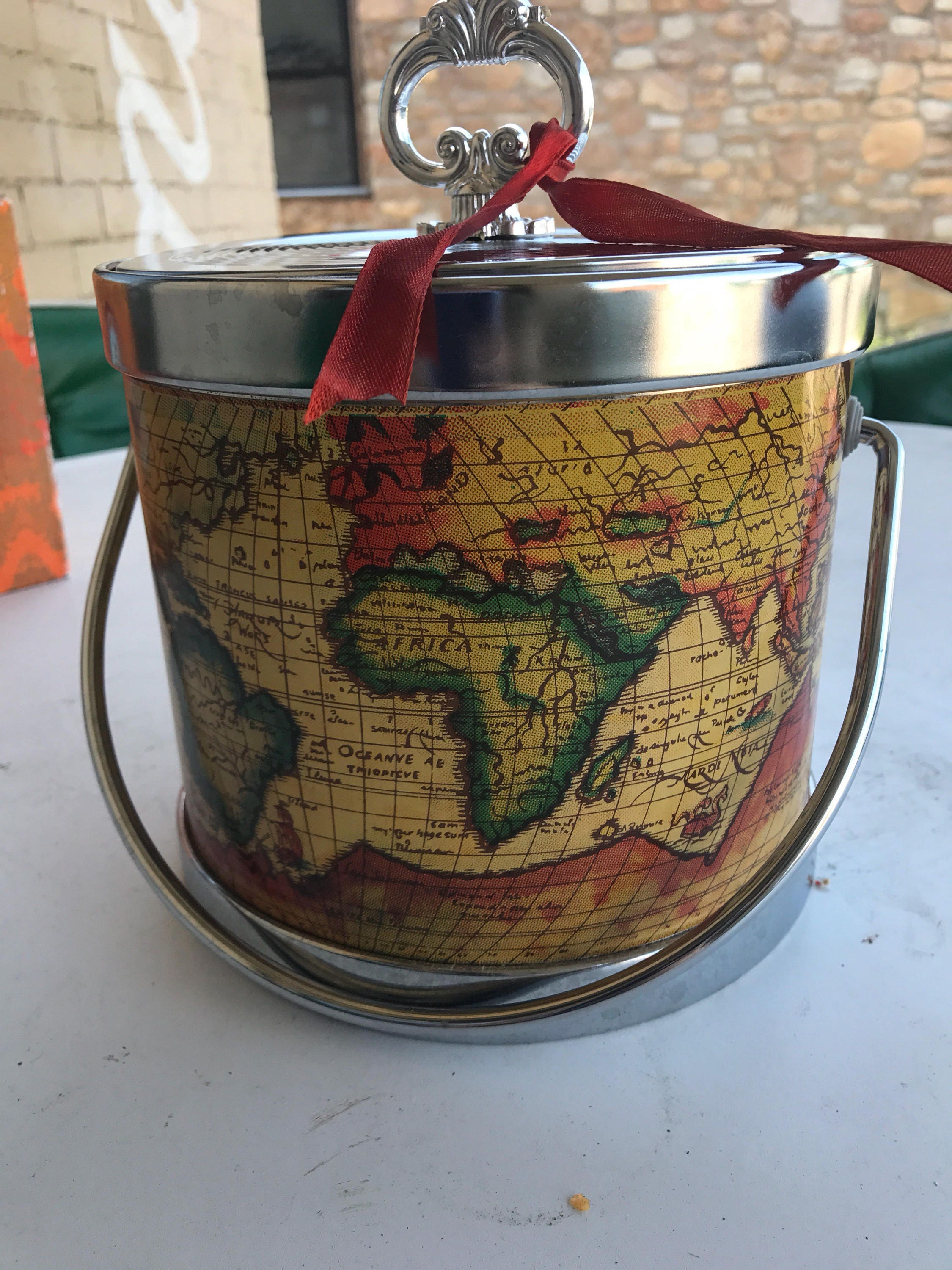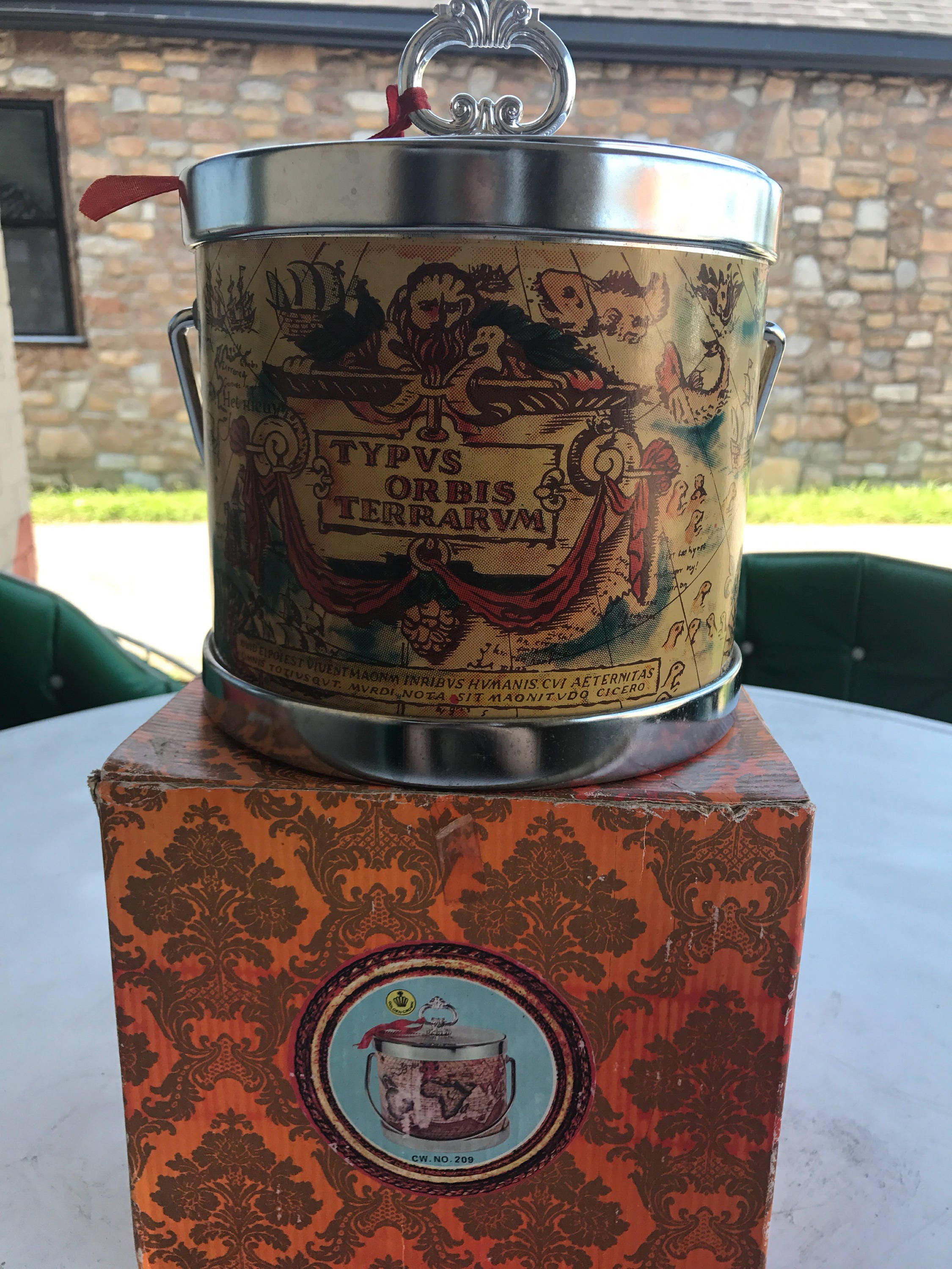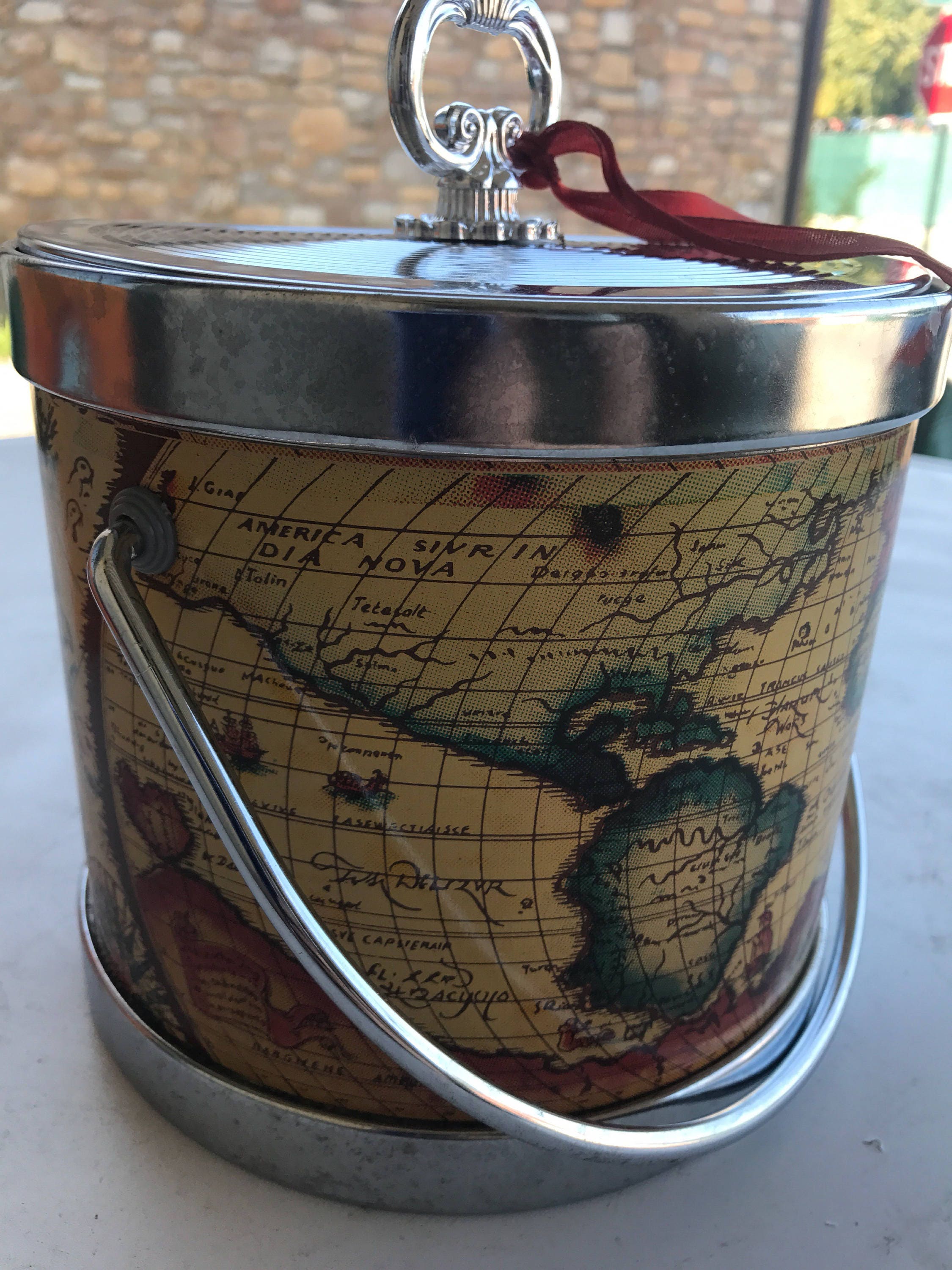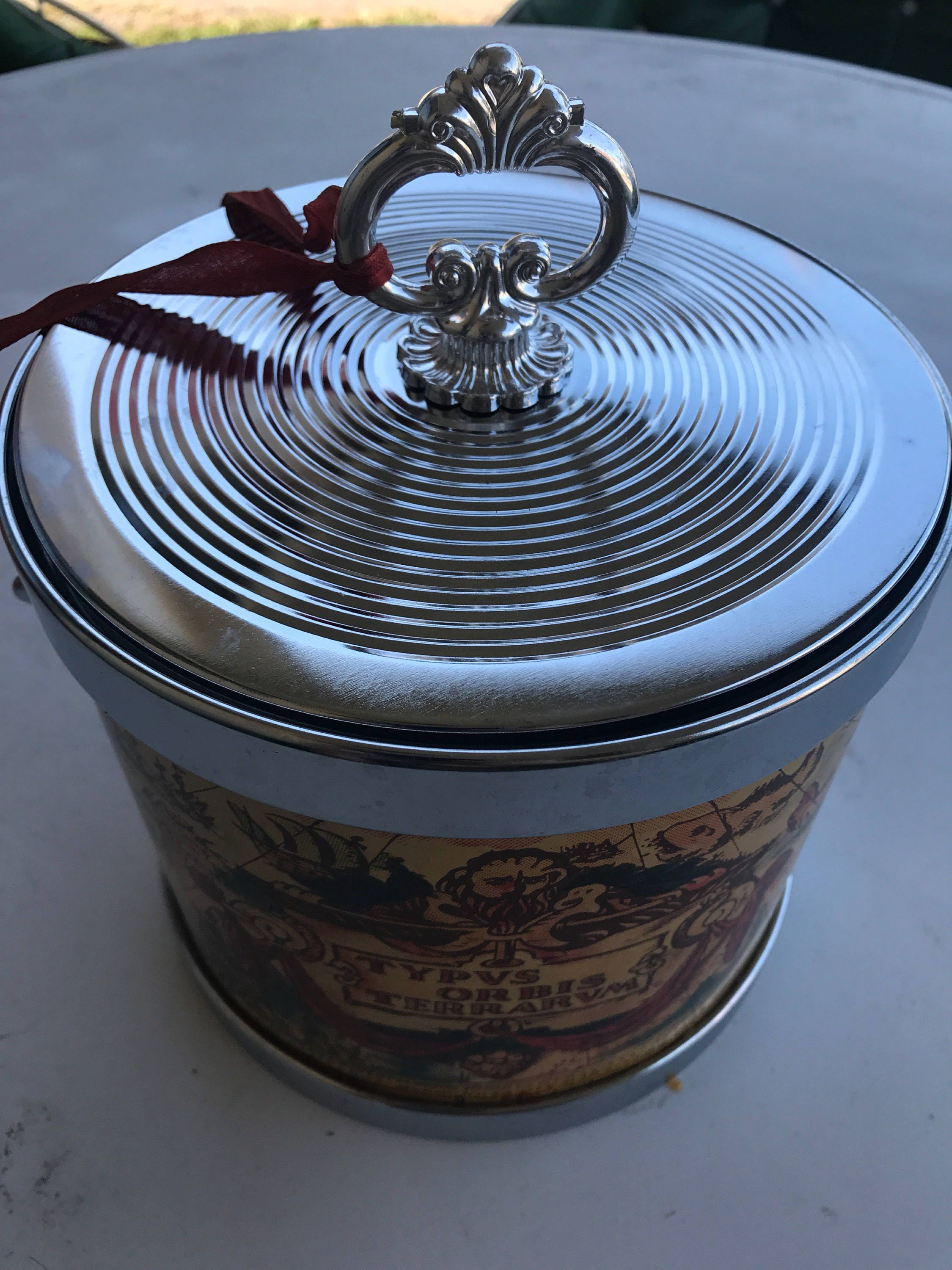 Lovely little Golden Crown Ice bucket from the 60's. It's in excellent like new condition, as it's been stored in the original box for years. It's such a wonderful drain on it!