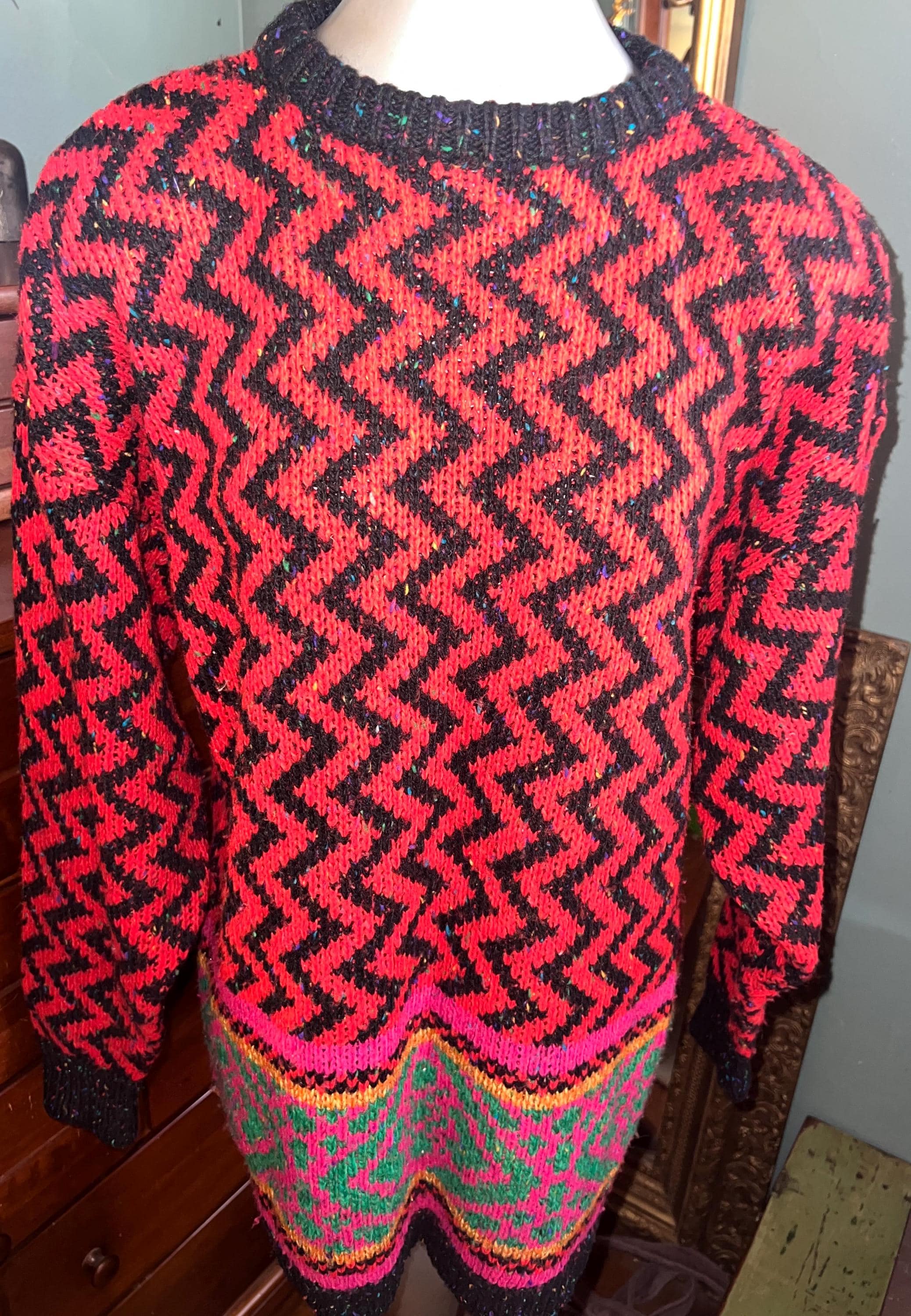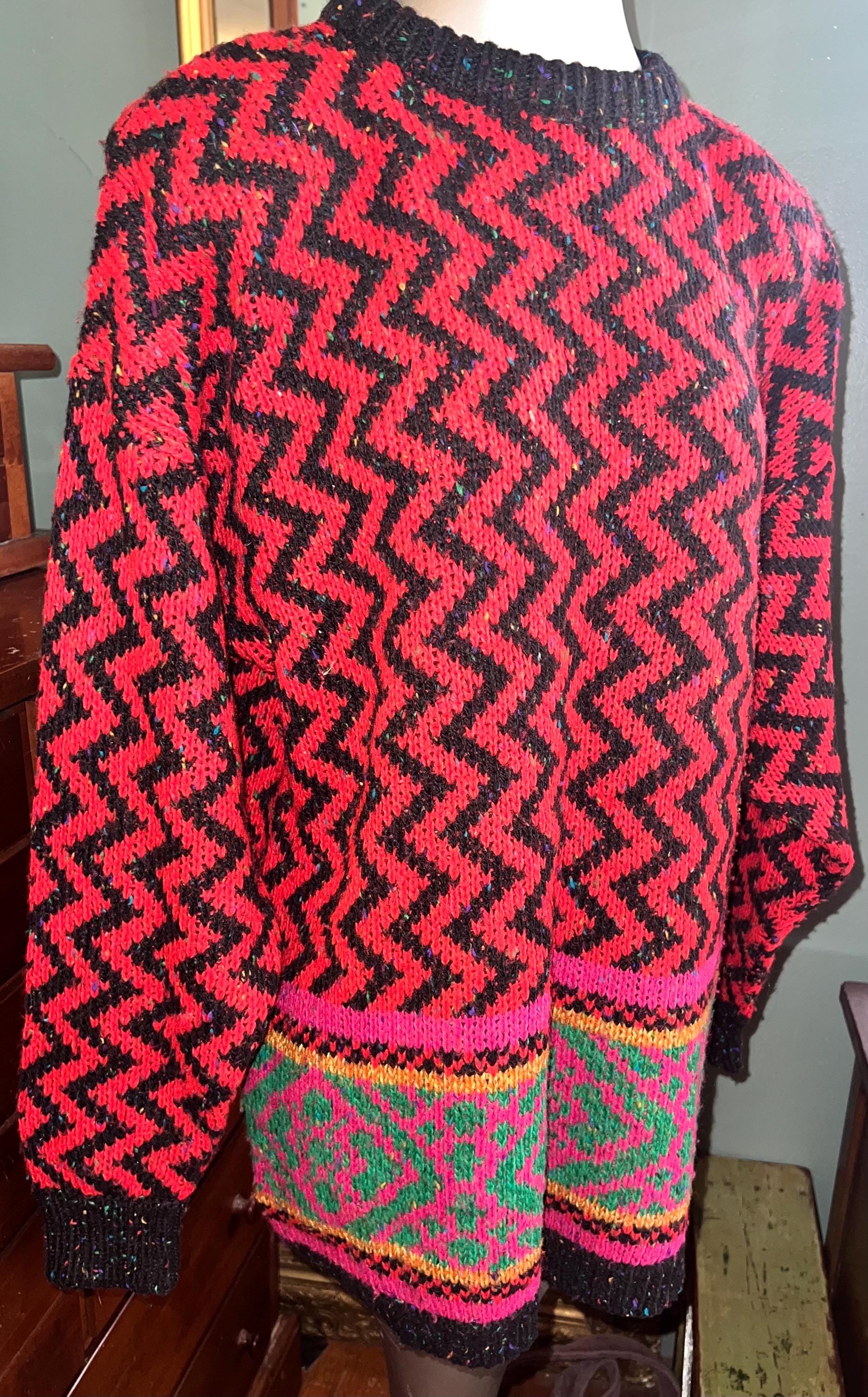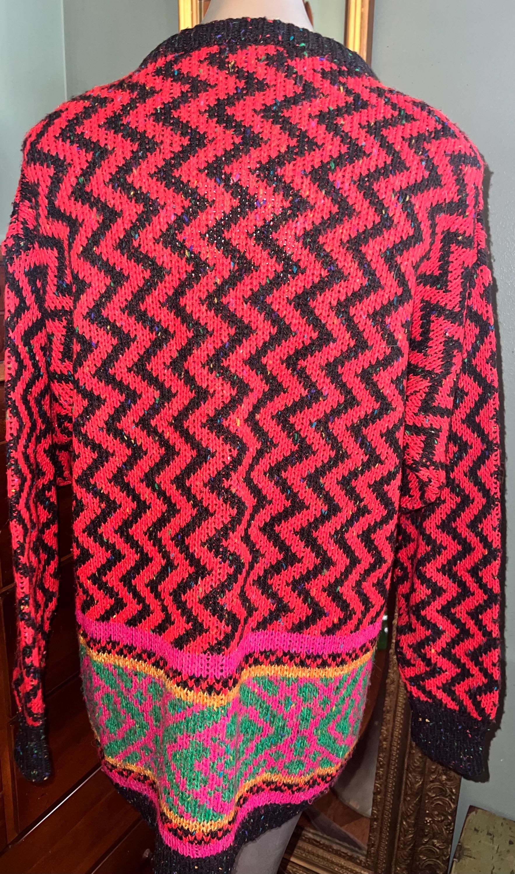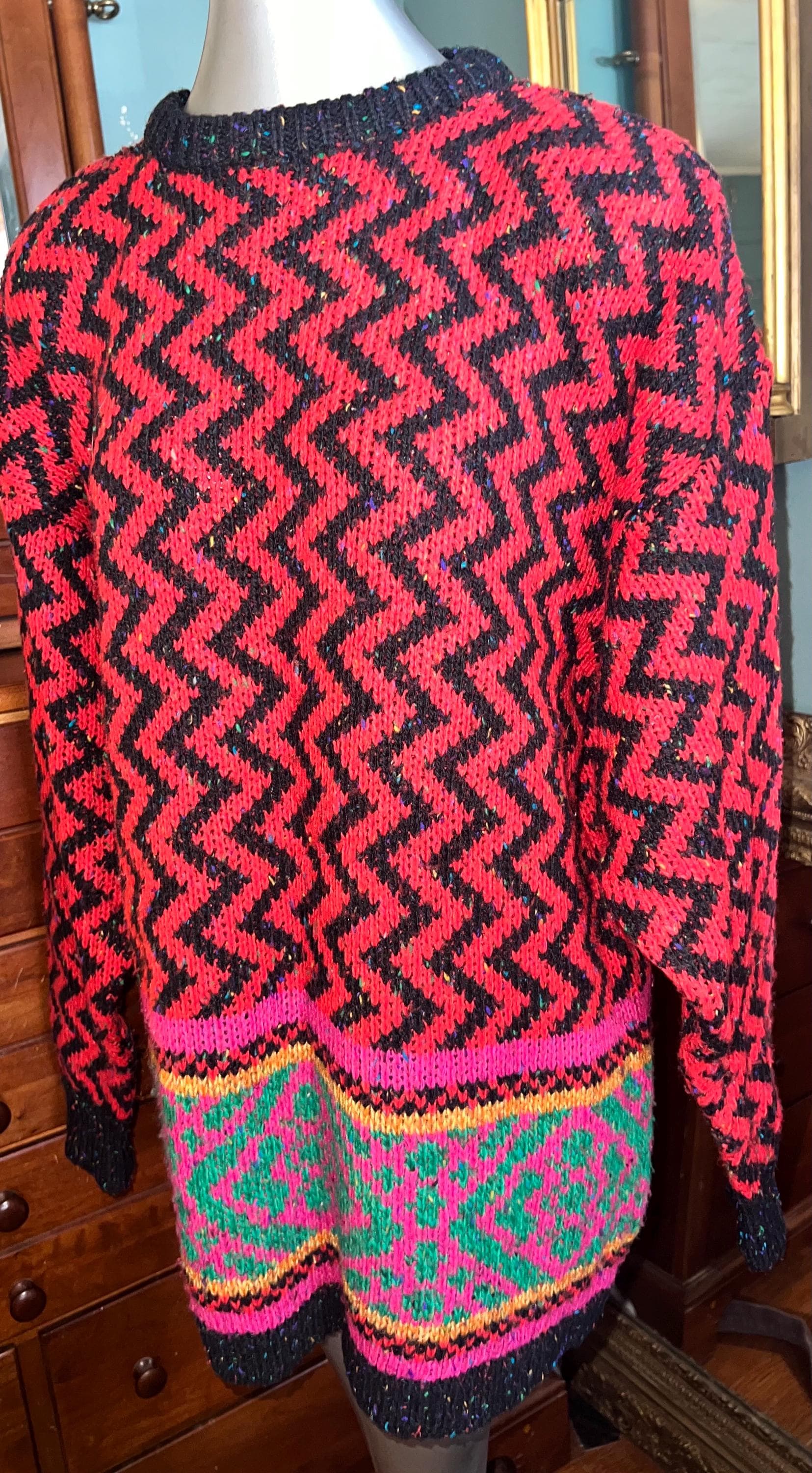I love this bold 80’s sweater by Liz Claiborne! Its got these great colorful spots all thruout and It has shoulder pads which could easily be removed. It’s in good vintage condition.