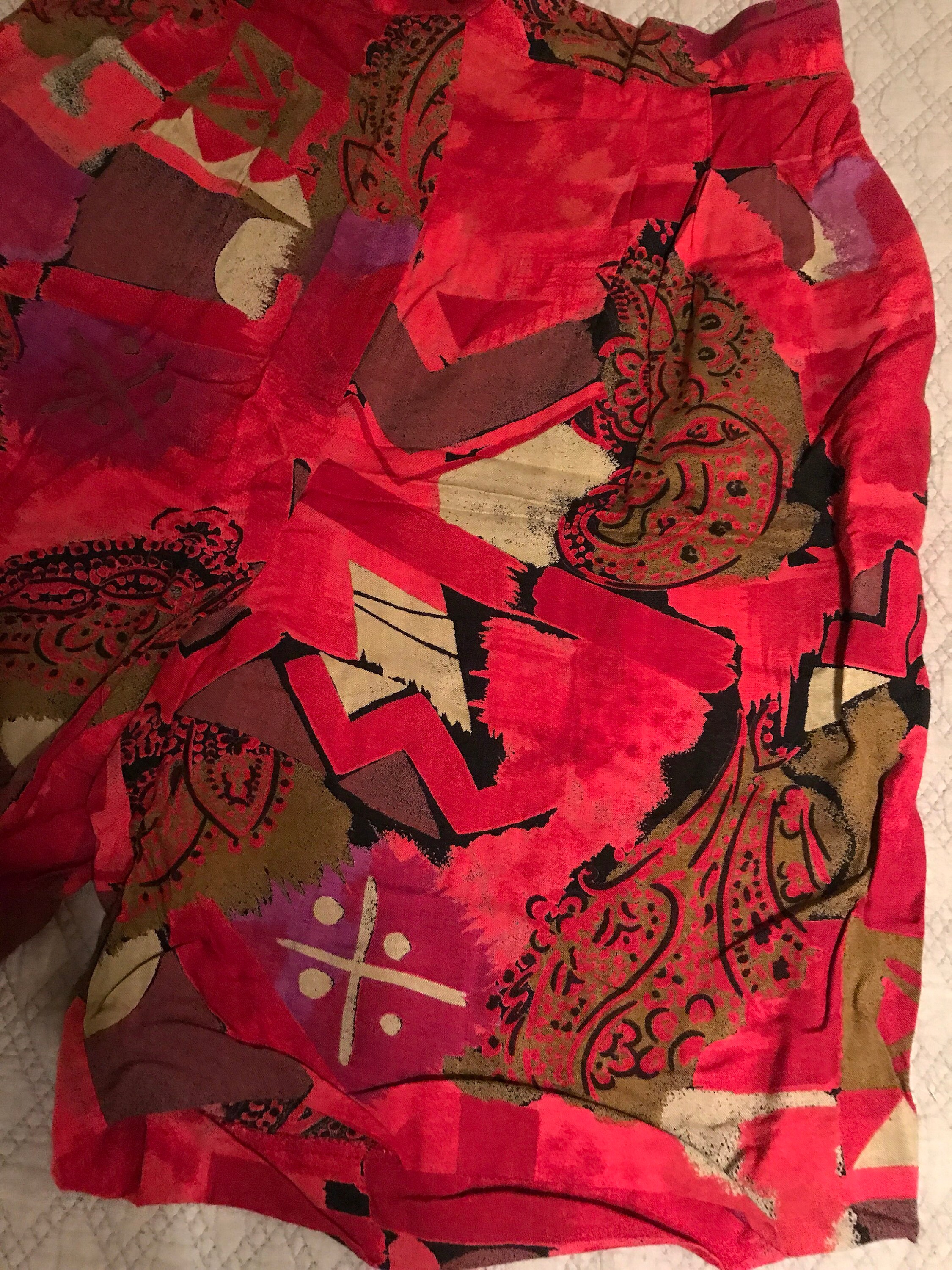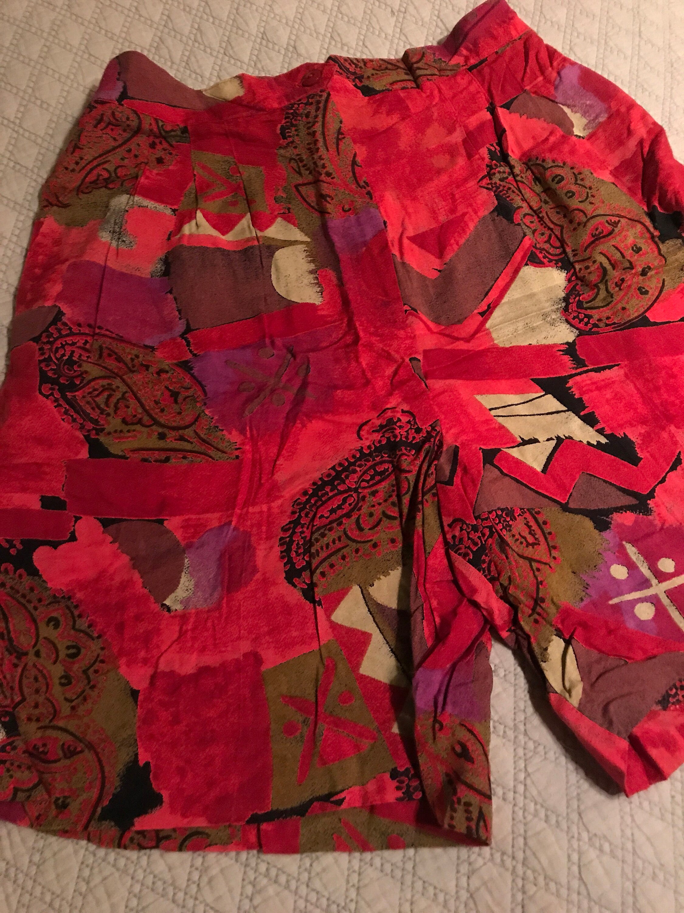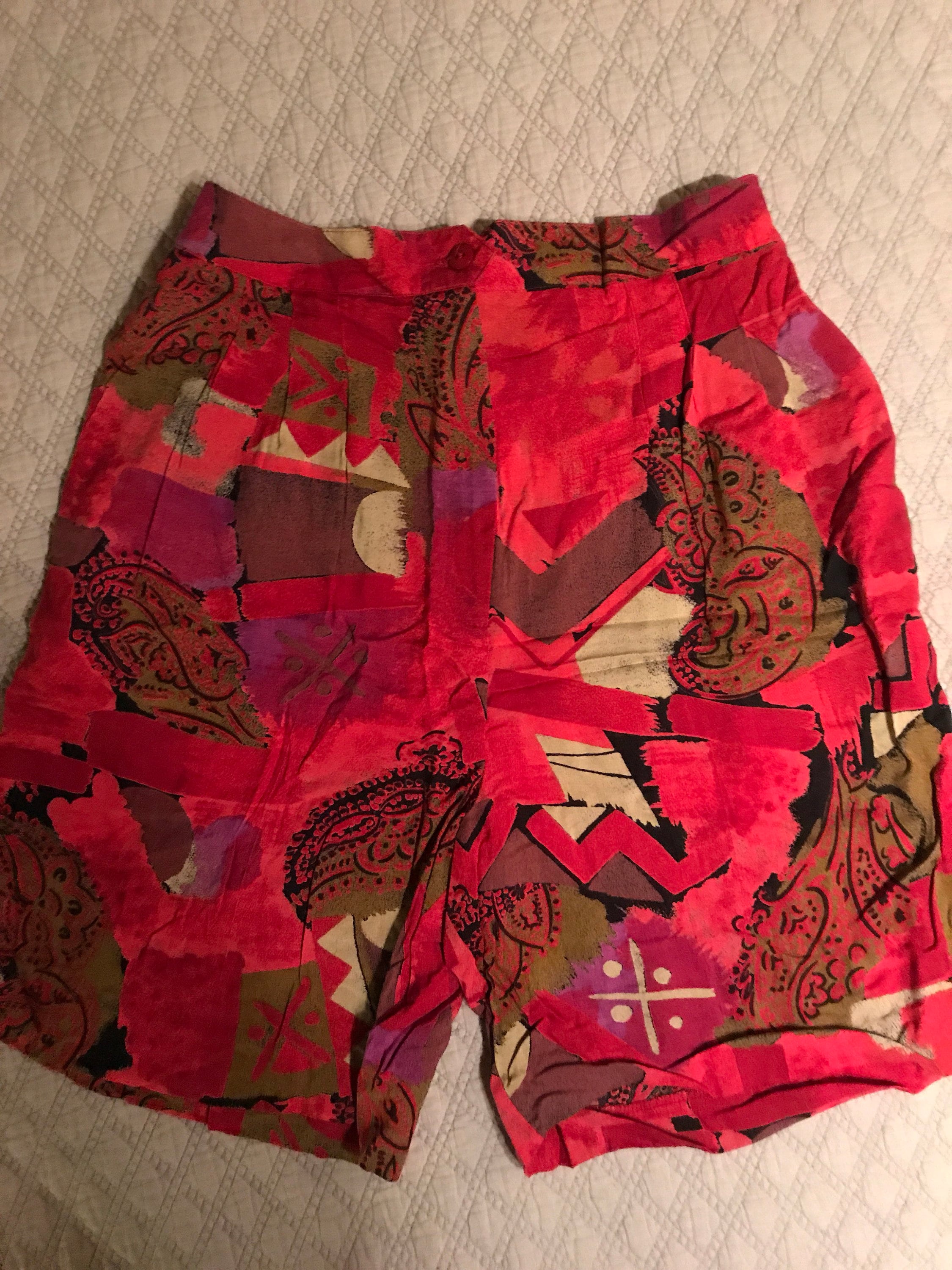 These are adorable little 80’s shorts. I love the awesome pattern on them. They have pockets and button and zip at the front. They are in good vintage condition!