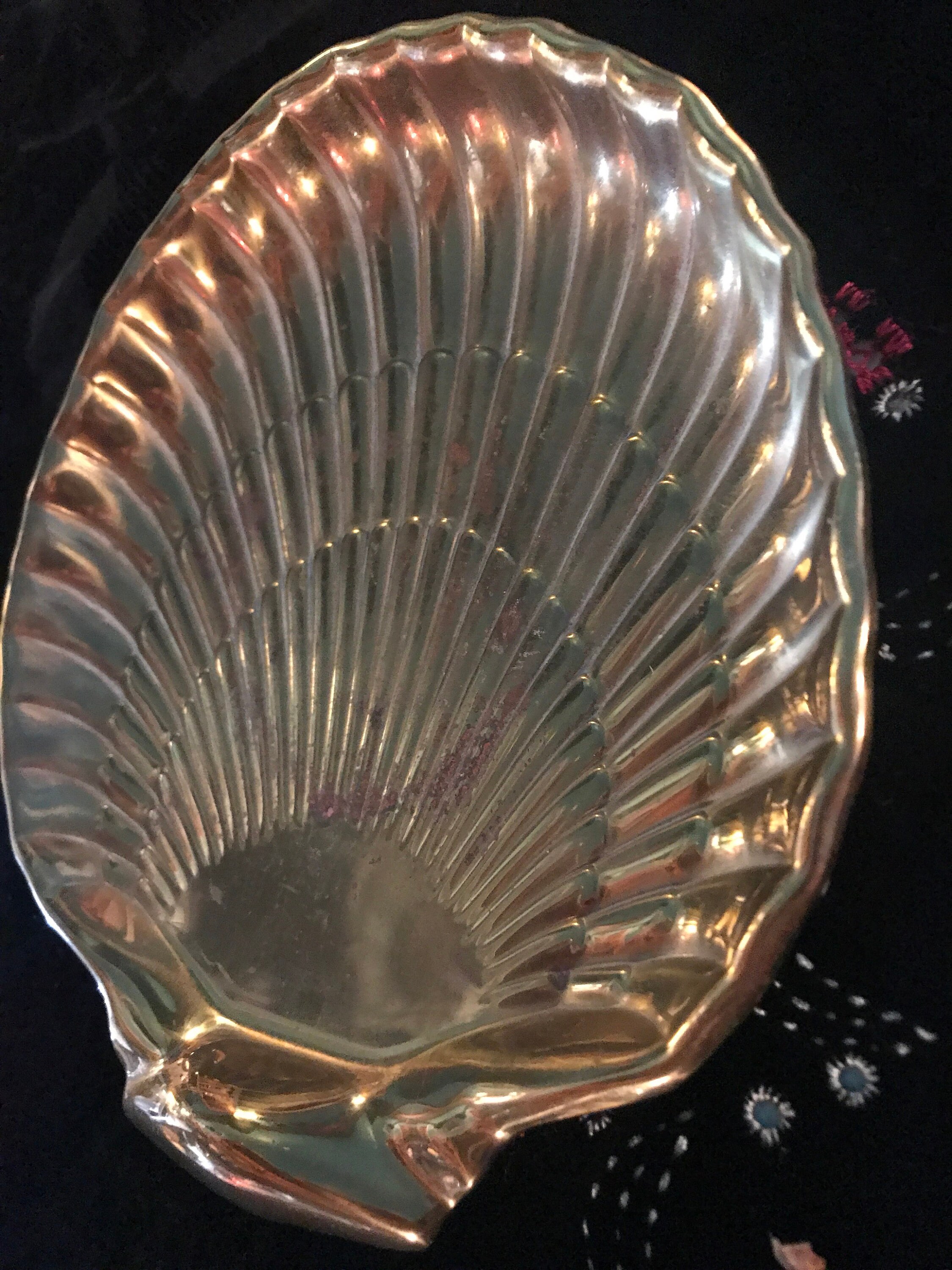This is a nice little solid brass coin/key holder. I love the look of it, the Shell is classy. I tend to like brass dull but it would shine up gorgeously. It’s in good vintage condition but does have some surface scratches.