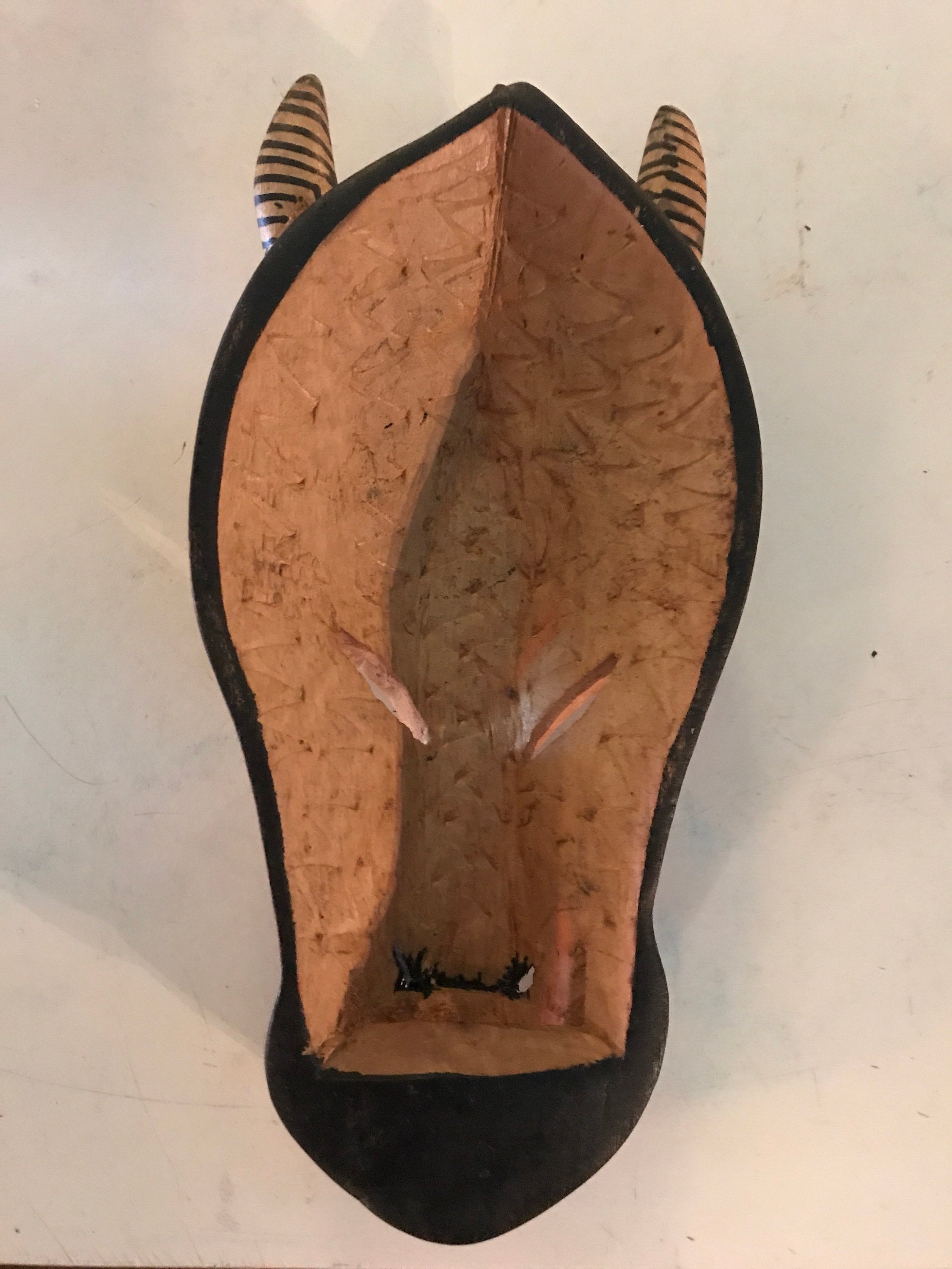 This is cool! It’s a handmade wooden Zebra mask. It’s made to be a wall hanging but it does not have a hook on it, that’s easy enough to remedy. It’s handmade, I assume in Africa but I don’t know for sure. It’s in good vintage condition.