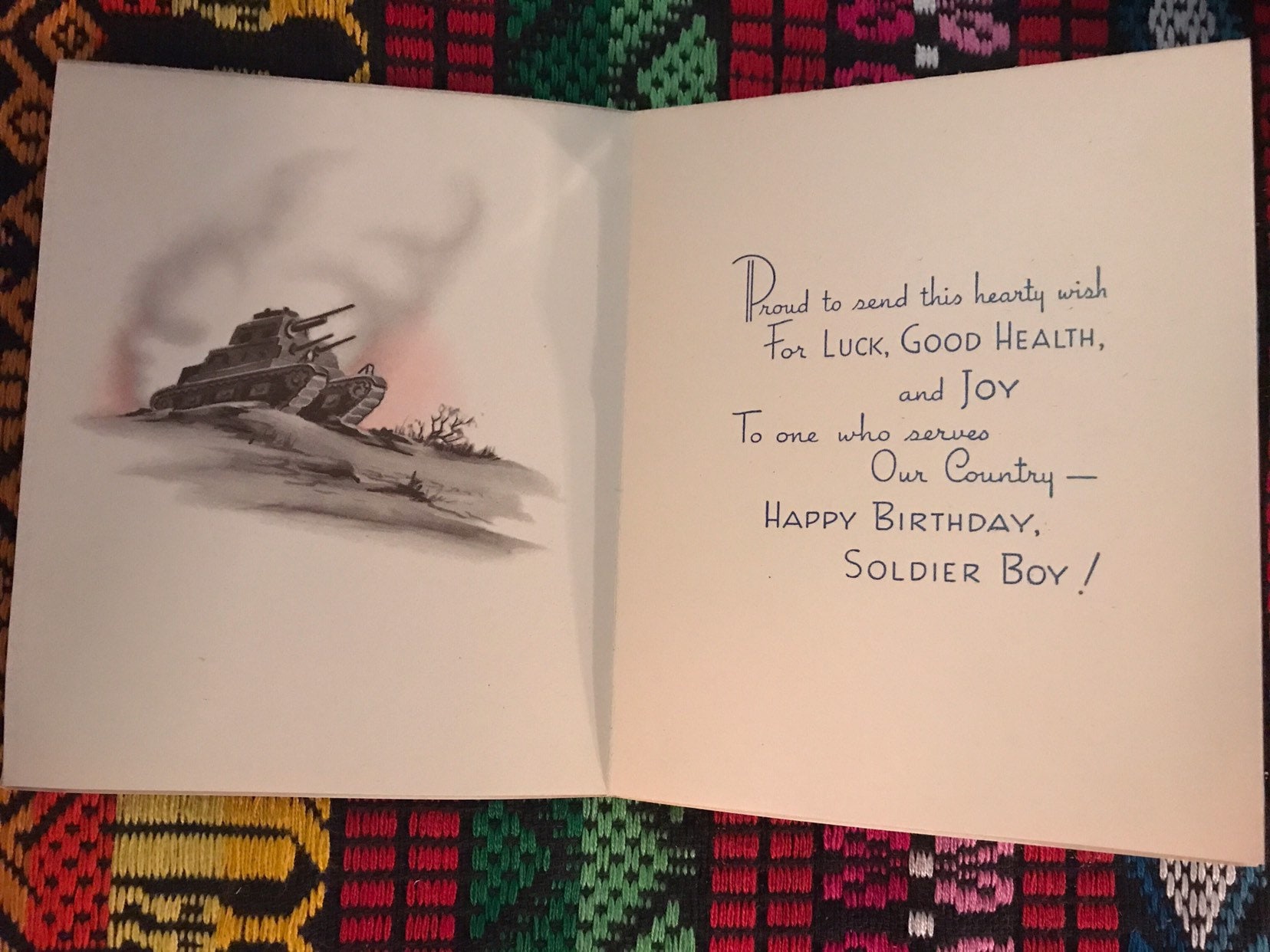 Very cool 130’s-40’s new birthday card for the United States soldier! It has never been signed and is in good vintage condition, does not come with envelope.
