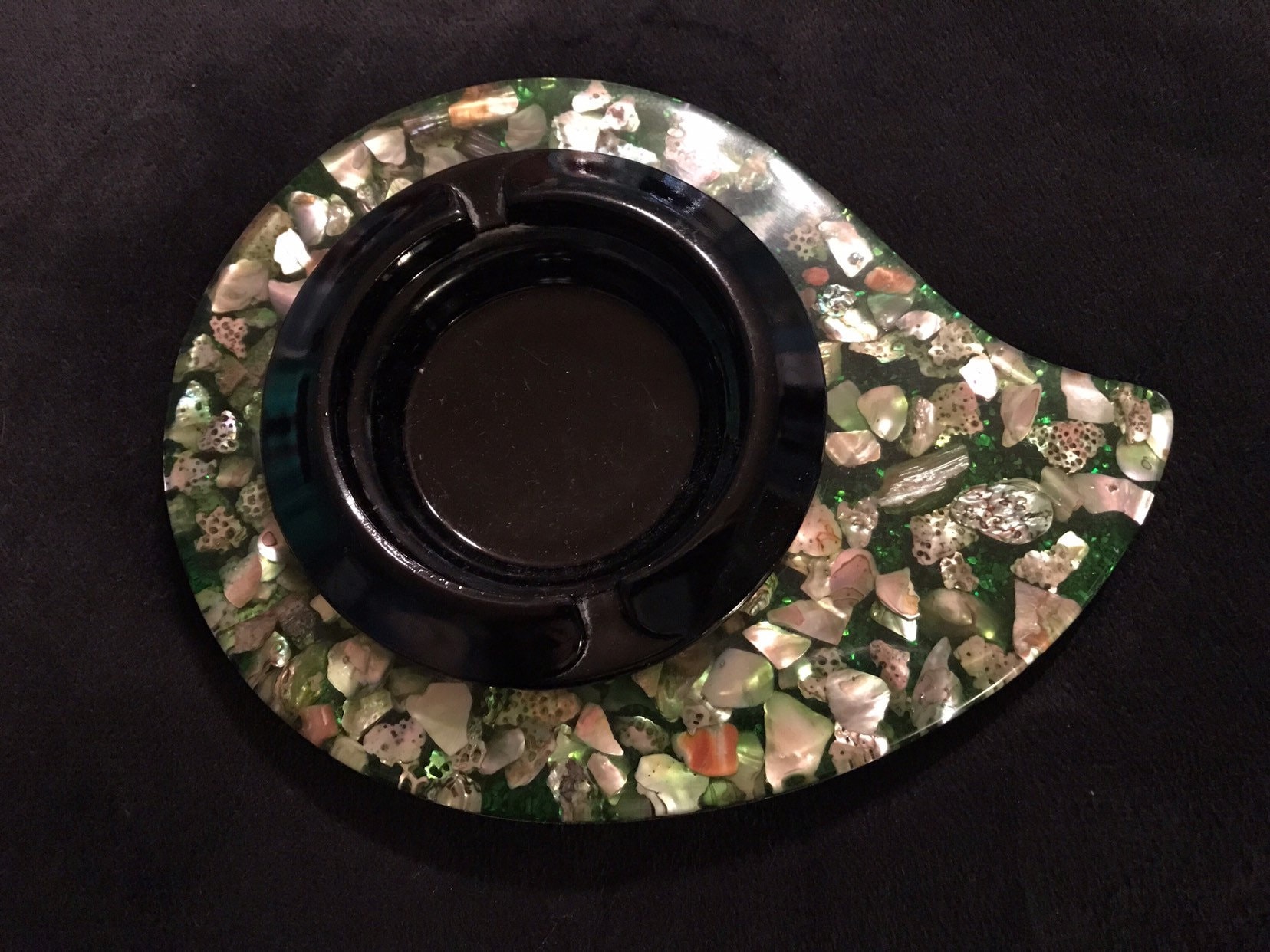 This is a very cool lucite ashtray! If there’s still any smokers out there, this is a nice sleek and blingy wonderful MCM ashtray! It’s in good vintage condition.