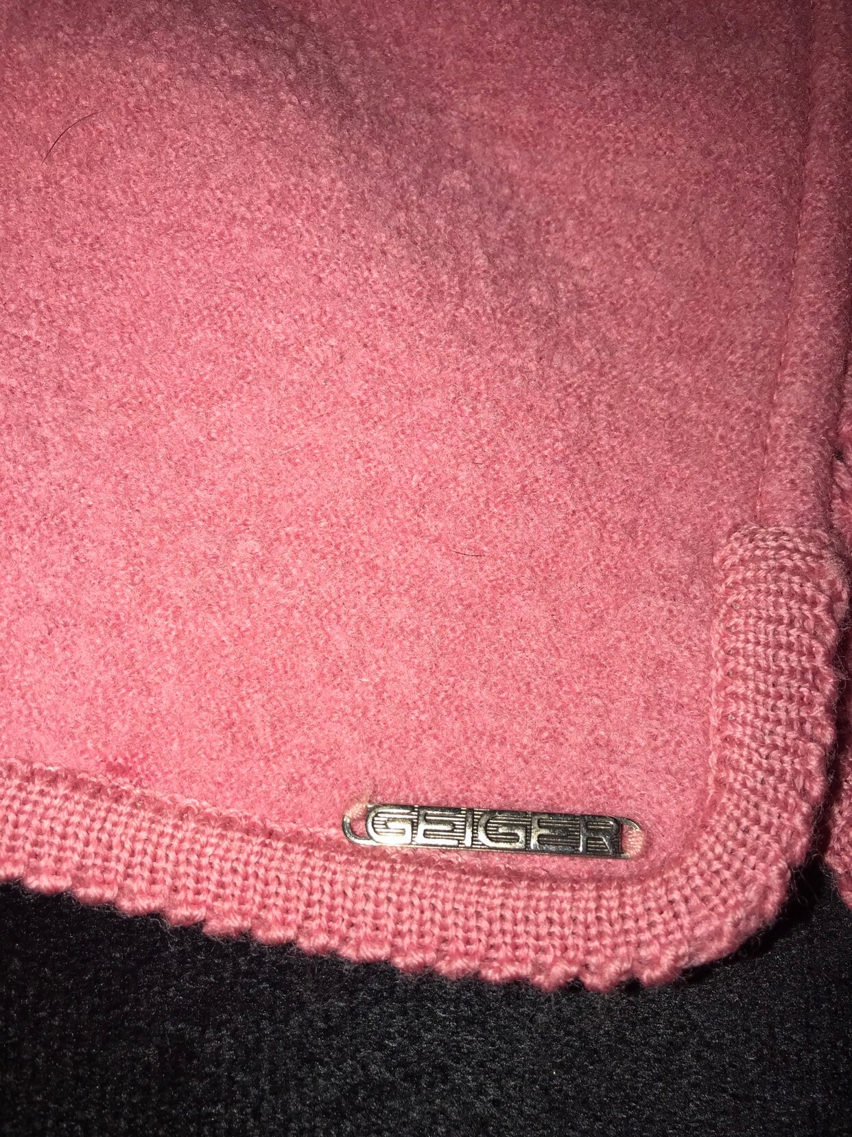Very nice, like new Geiger wool sweater from the 1970’s in a deep rose pink color. It’s in great vintage condition, it does have one tiny mark on the wool, (see last photo)!