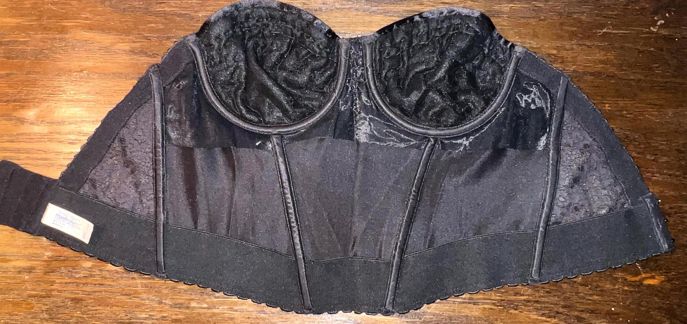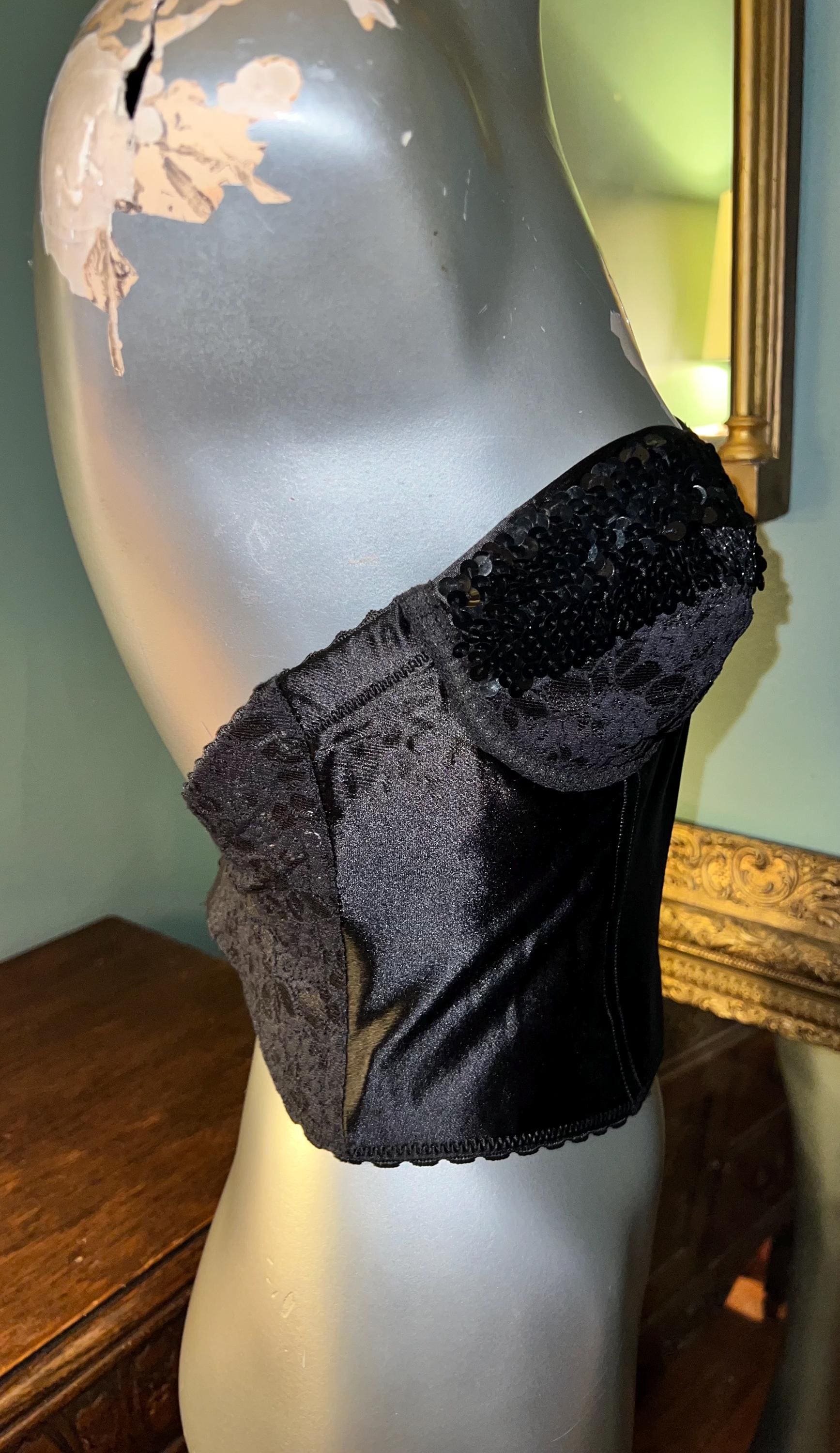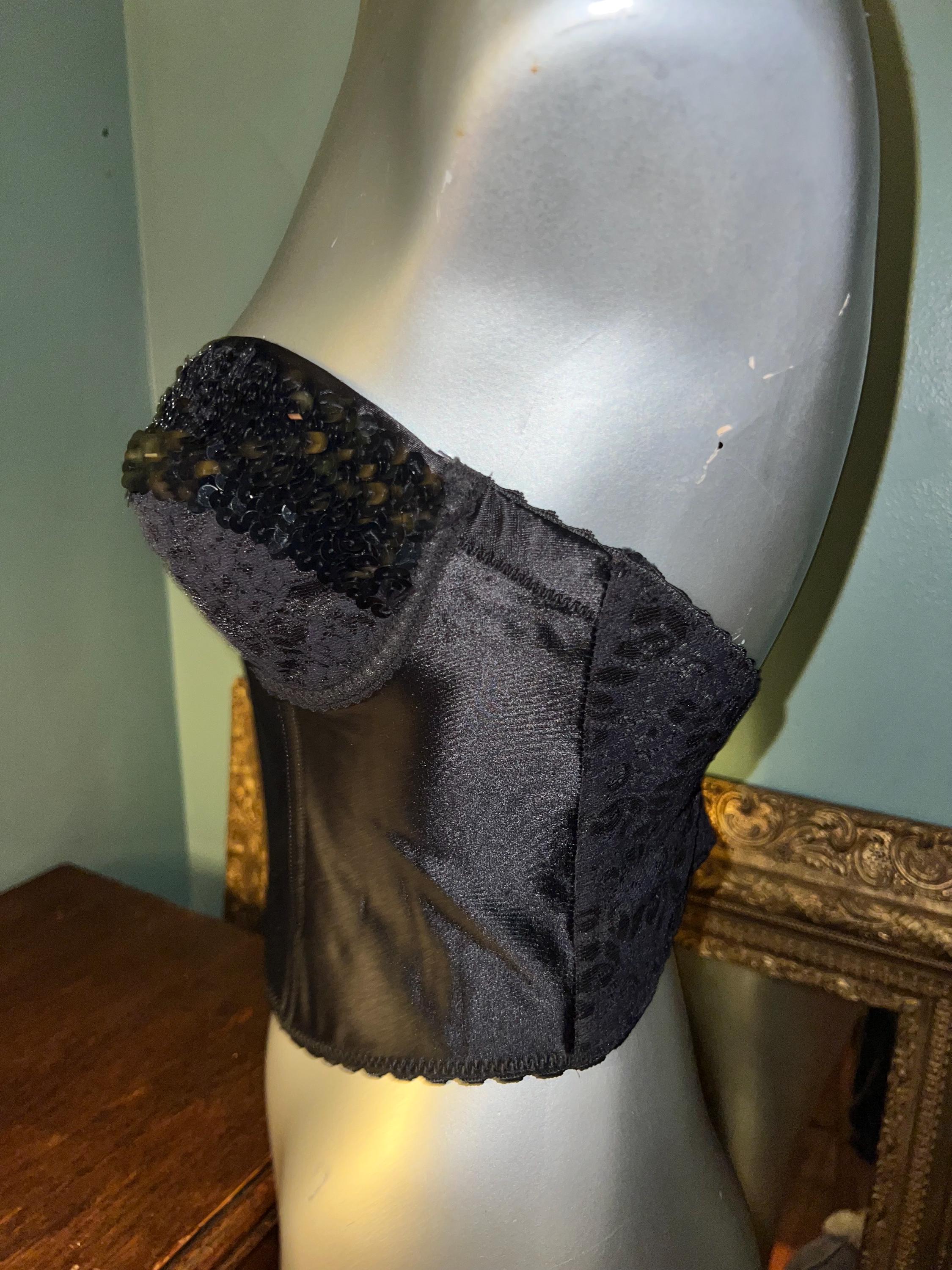 This is a gorgeous corset bra by MaidenForm in the 90’s. It is black with lace and sequins. I love the line of black sequins! It's in good vintage condition.